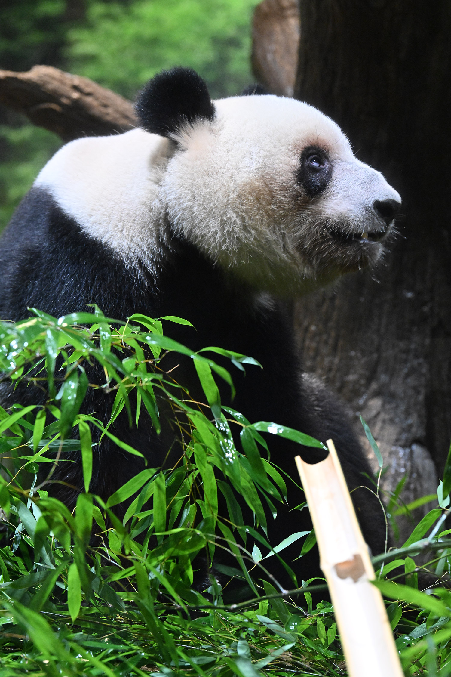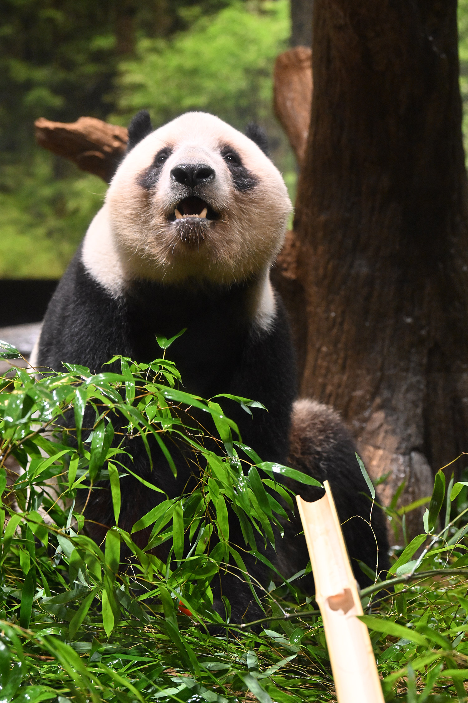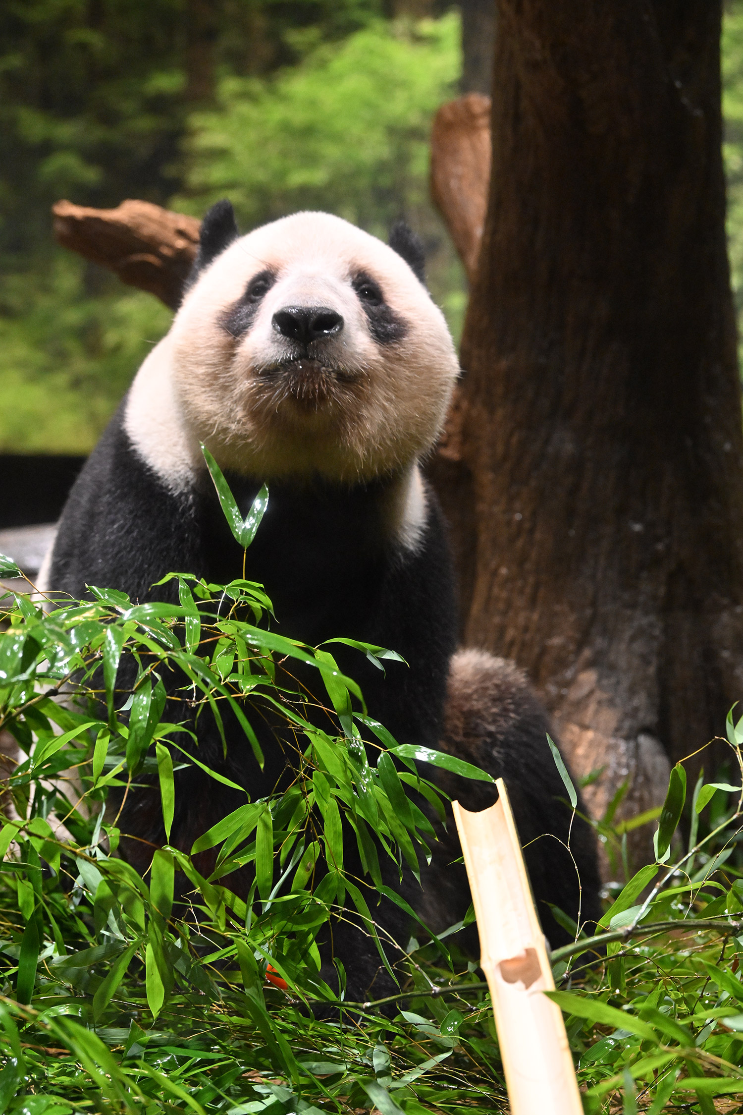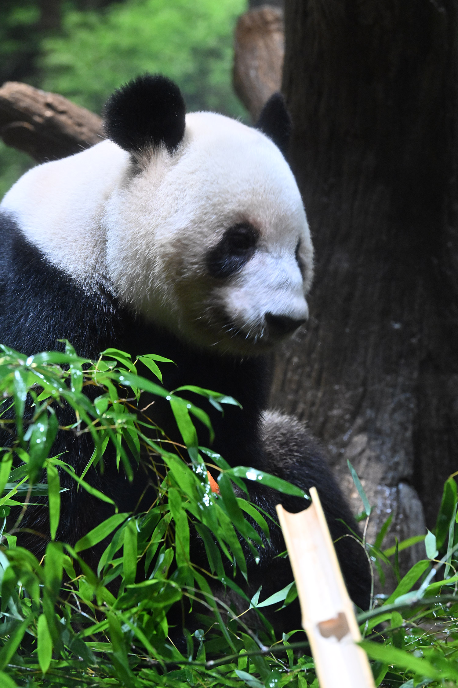 パンダ氏🐼様 皆様こんばんは レイちゃんのアップ~💓 耳と頬のふくらみのお写真 たまらんです そして 特別な飾りも 色彩もない本当に白と黒なのに なんでこんなにも愛おしく 人間を魅了してやまない パンダさんってすごいなぁ・・・室内で擬木の所で立っている姿 人間みたいですね ♬ レイちゃんって色々な表情があって 面白いです チロ目🤣 この柿は甘かったのかな・・・たけのこ この時期にめずらしいですね そしてシャオ!!このご主人様を 待ちわびて玄関で座っているワンちゃんみたいな姿!うれしそうな姿 いったいシャオと氏様の間に流れる 電磁波はどうなっているのか もう私の中で ハシビロコウにつぐ 上野の謎です😊こうして パンダズのお写真を堪能させていただける事 心から感謝申し上げます