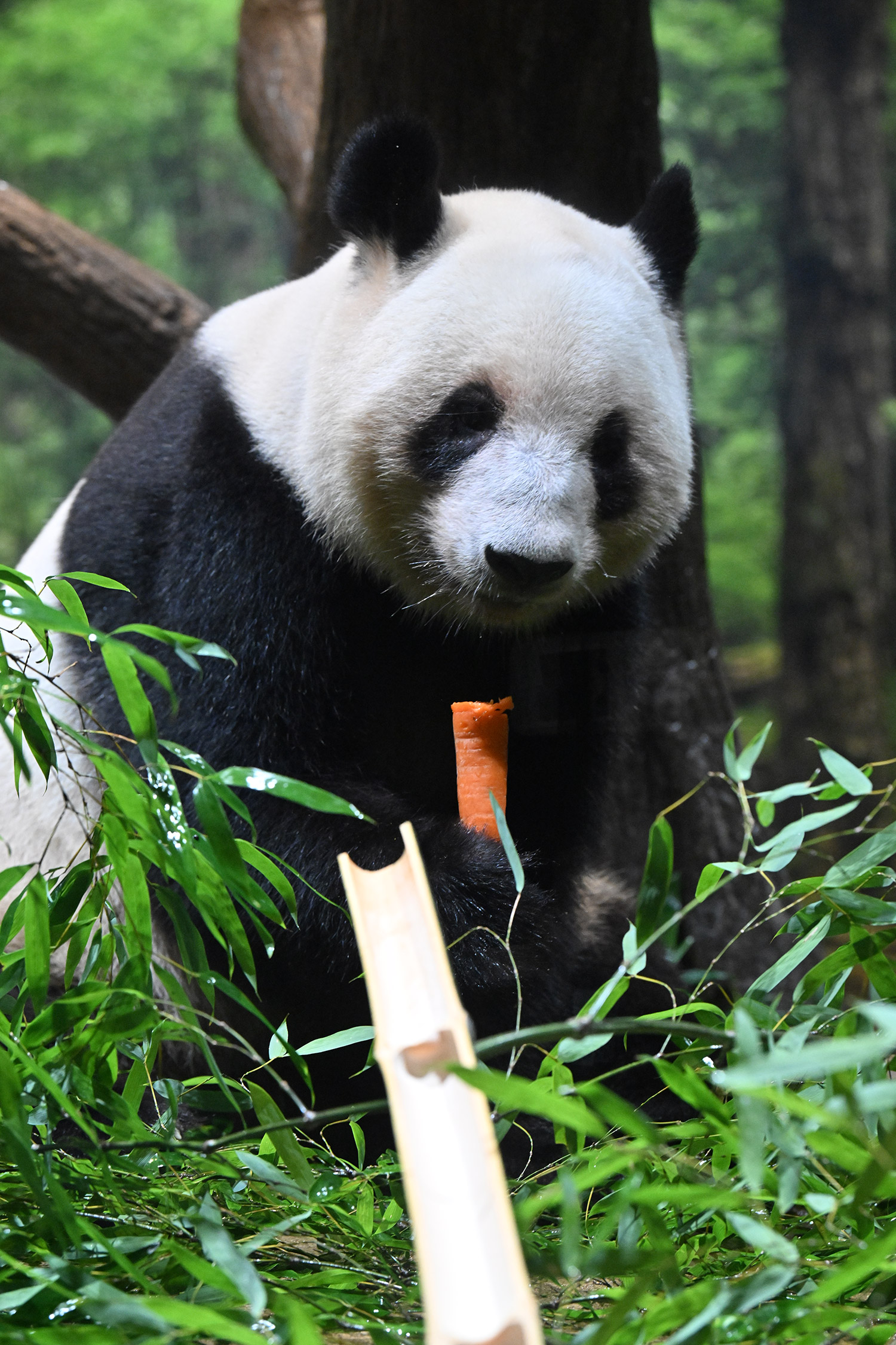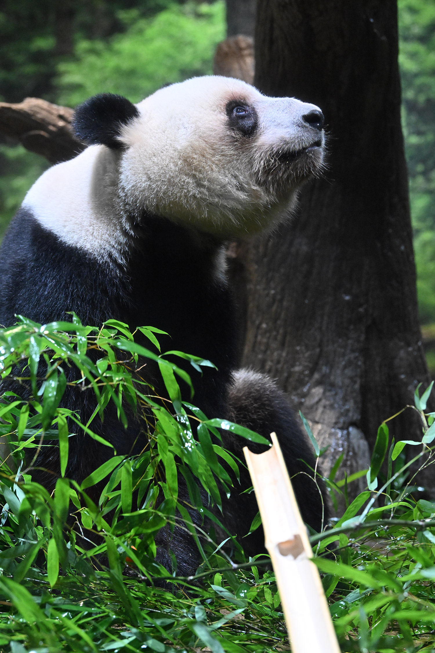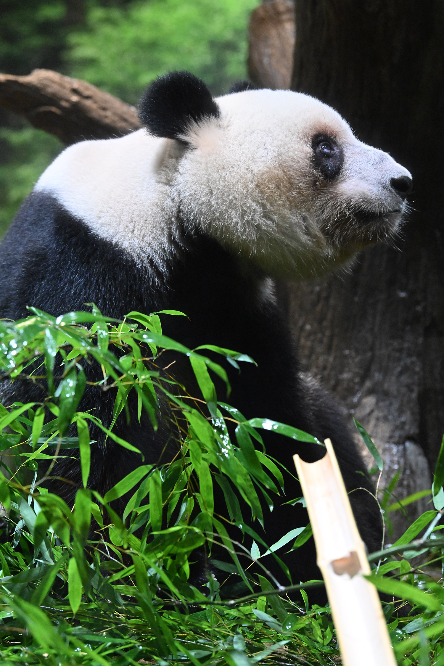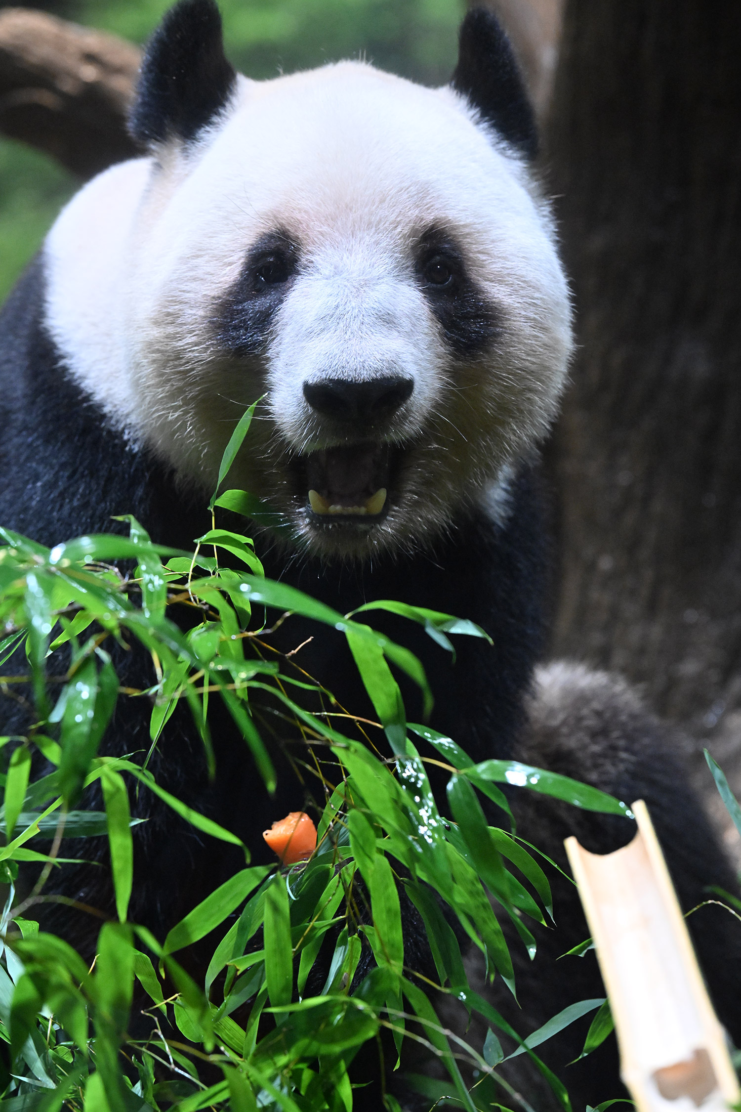 パンダ氏🐼様 皆様こんばんは レイちゃんのアップ~💓 耳と頬のふくらみのお写真 たまらんです そして 特別な飾りも 色彩もない本当に白と黒なのに なんでこんなにも愛おしく 人間を魅了してやまない パンダさんってすごいなぁ・・・室内で擬木の所で立っている姿 人間みたいですね ♬ レイちゃんって色々な表情があって 面白いです チロ目🤣 この柿は甘かったのかな・・・たけのこ この時期にめずらしいですね そしてシャオ!!このご主人様を 待ちわびて玄関で座っているワンちゃんみたいな姿!うれしそうな姿 いったいシャオと氏様の間に流れる 電磁波はどうなっているのか もう私の中で ハシビロコウにつぐ 上野の謎です😊こうして パンダズのお写真を堪能させていただける事 心から感謝申し上げます