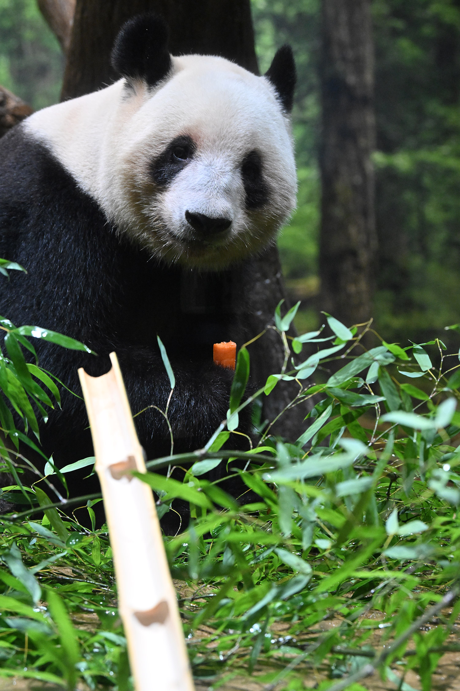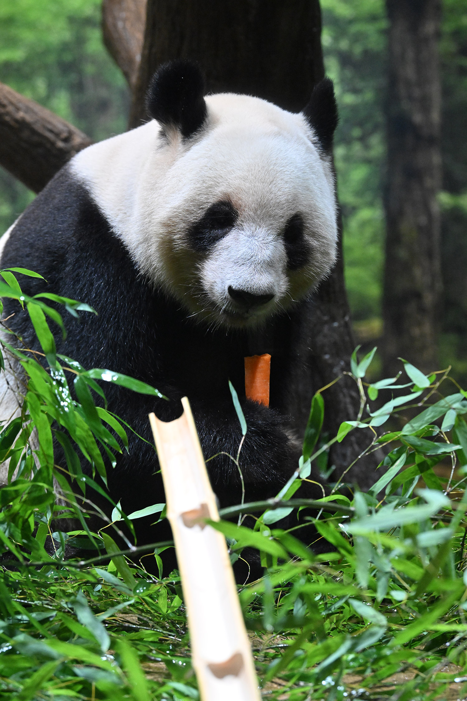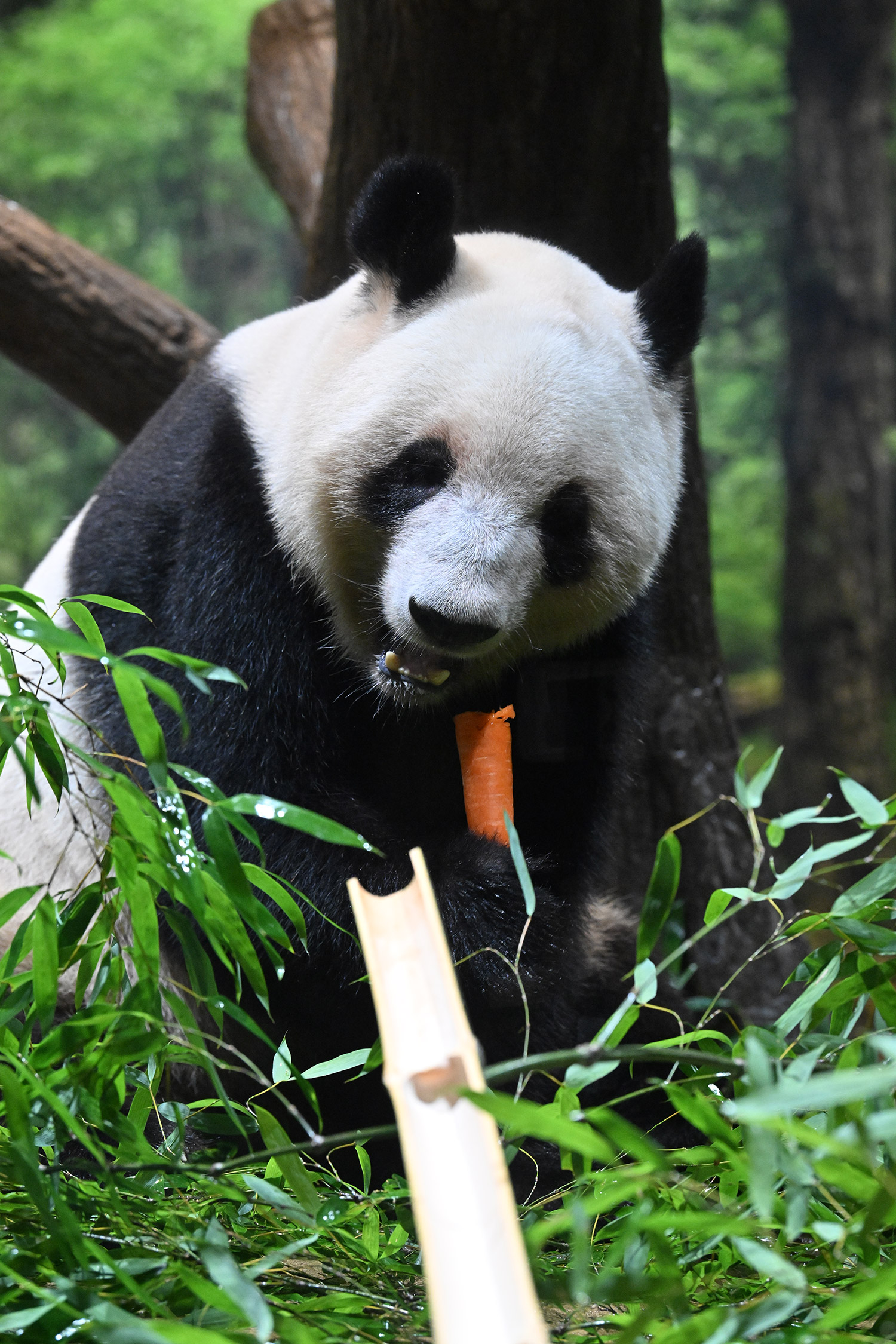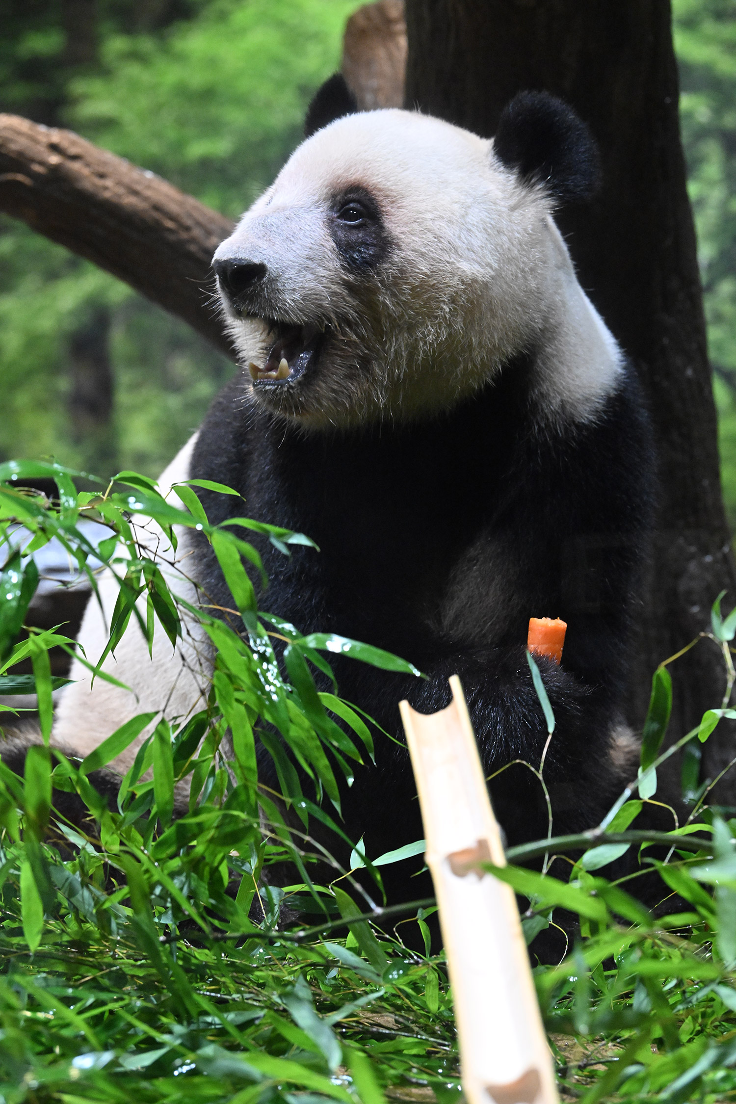 パンダ氏🐼様 皆様こんばんは レイちゃんのアップ~💓 耳と頬のふくらみのお写真 たまらんです そして 特別な飾りも 色彩もない本当に白と黒なのに なんでこんなにも愛おしく 人間を魅了してやまない パンダさんってすごいなぁ・・・室内で擬木の所で立っている姿 人間みたいですね ♬ レイちゃんって色々な表情があって 面白いです チロ目🤣 この柿は甘かったのかな・・・たけのこ この時期にめずらしいですね そしてシャオ!!このご主人様を 待ちわびて玄関で座っているワンちゃんみたいな姿!うれしそうな姿 いったいシャオと氏様の間に流れる 電磁波はどうなっているのか もう私の中で ハシビロコウにつぐ 上野の謎です😊こうして パンダズのお写真を堪能させていただける事 心から感謝申し上げます