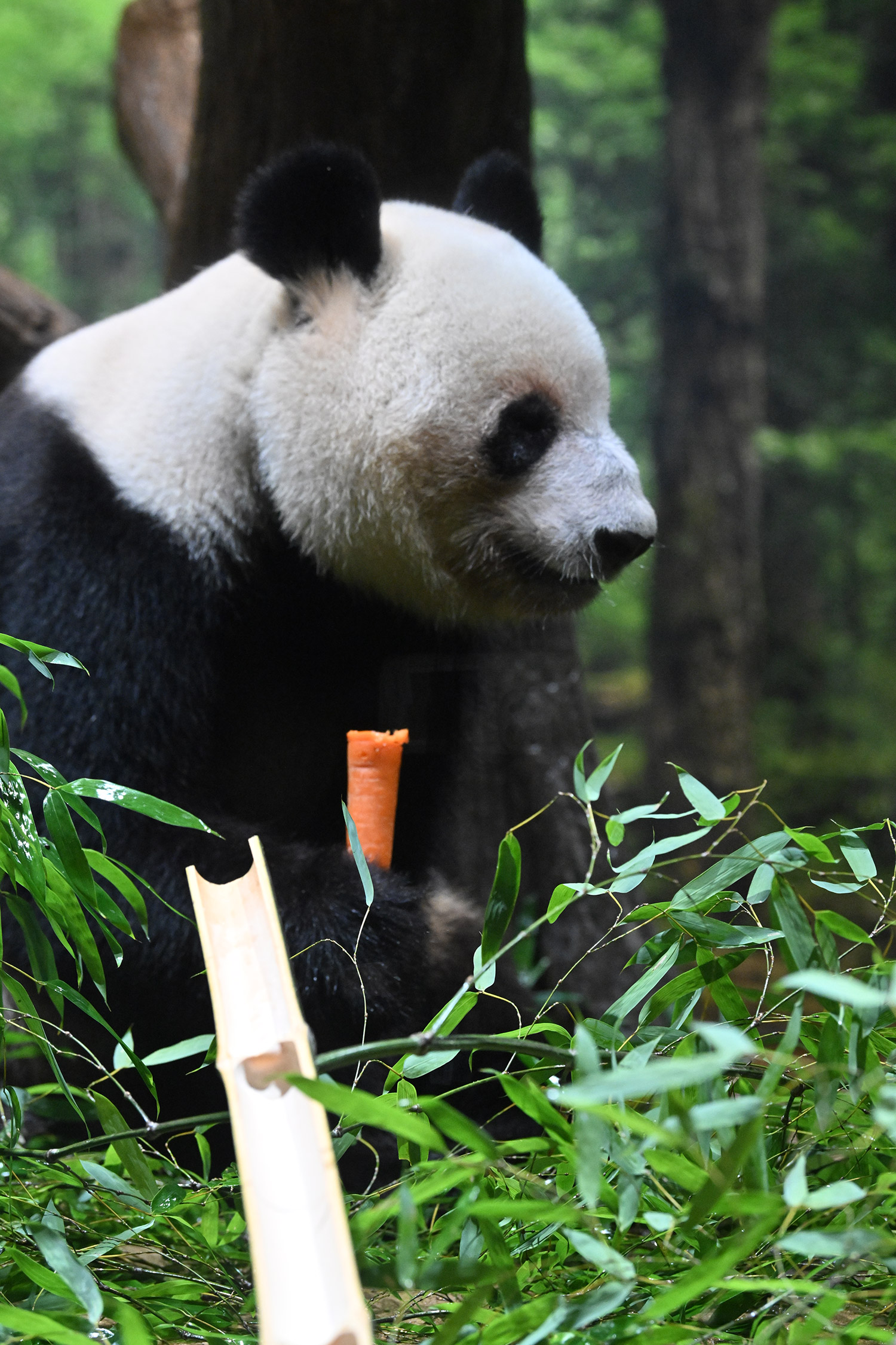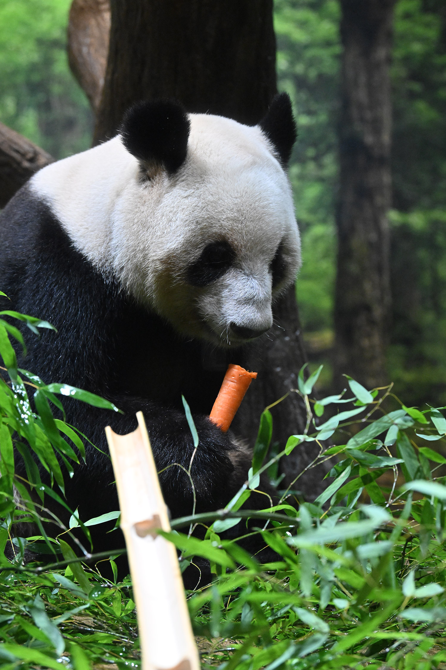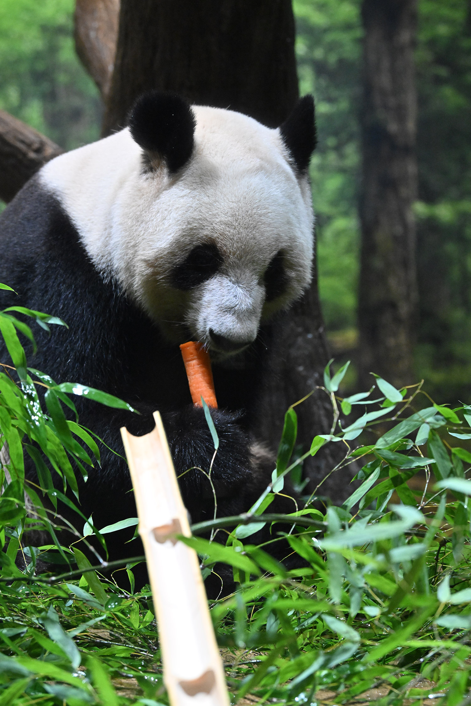 タケノコは茹でてあるもの?昔、里子を南京に訪ねて行った時、里子がタケノコが大好きだけれど南京では季節によってはないので、冷凍にしたタケノコを与えたけれど食べてくれなかったと飼育員さんがとても残念そうにお話されていました。中国でも四川にいるパンダさんは幸せですね!
