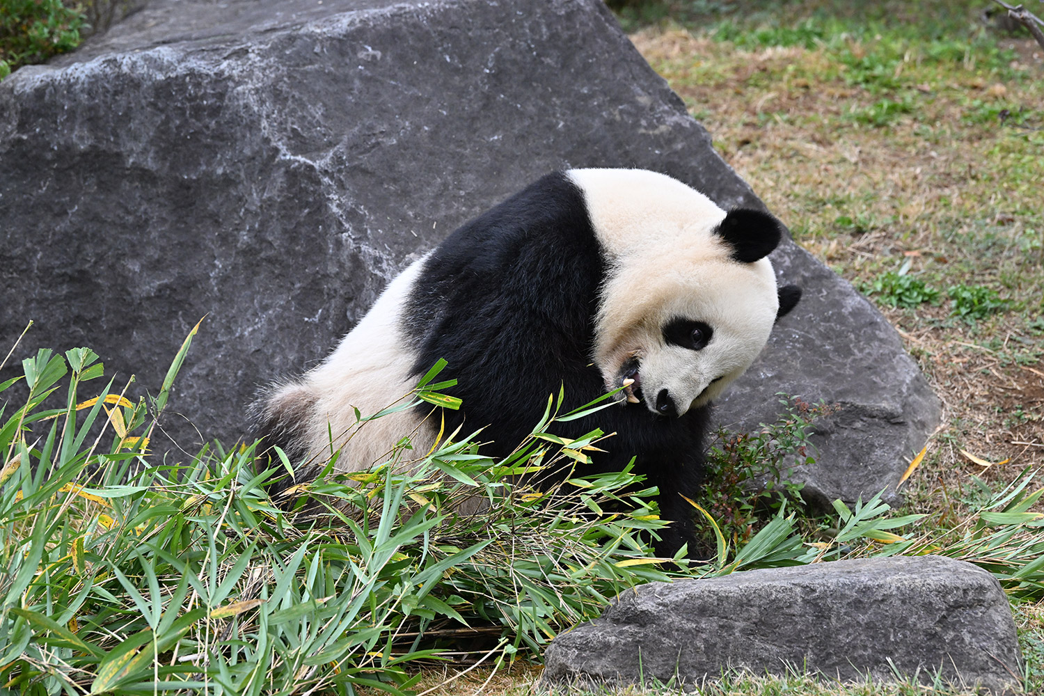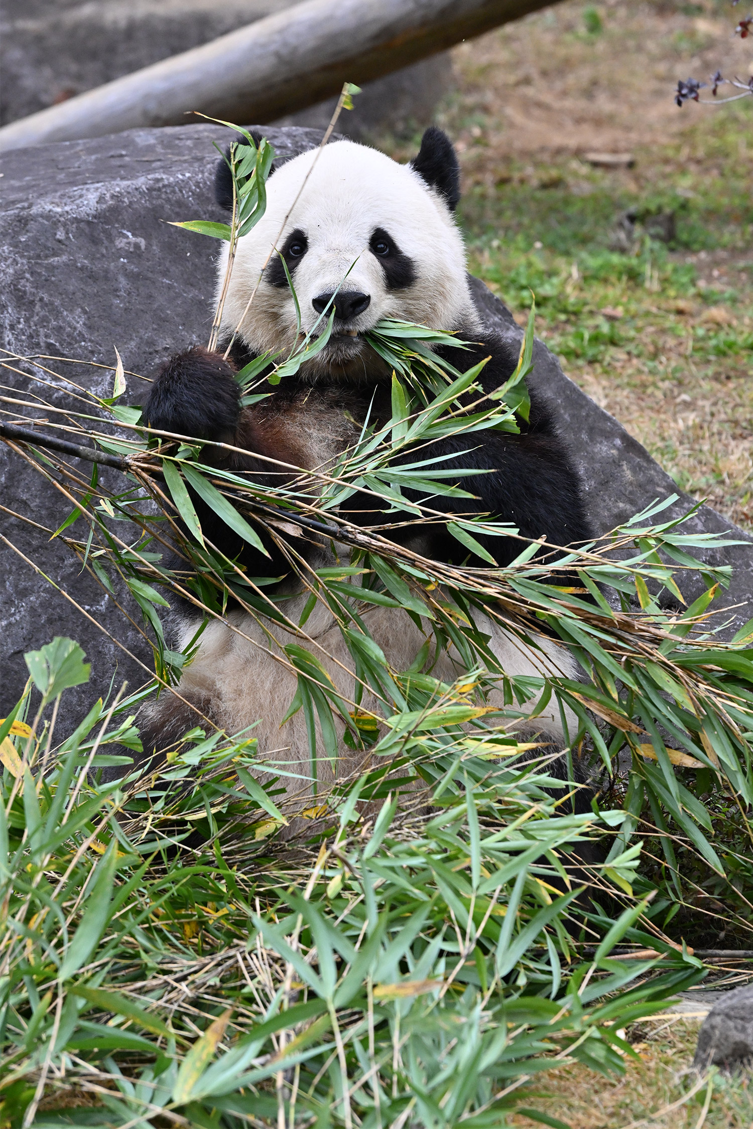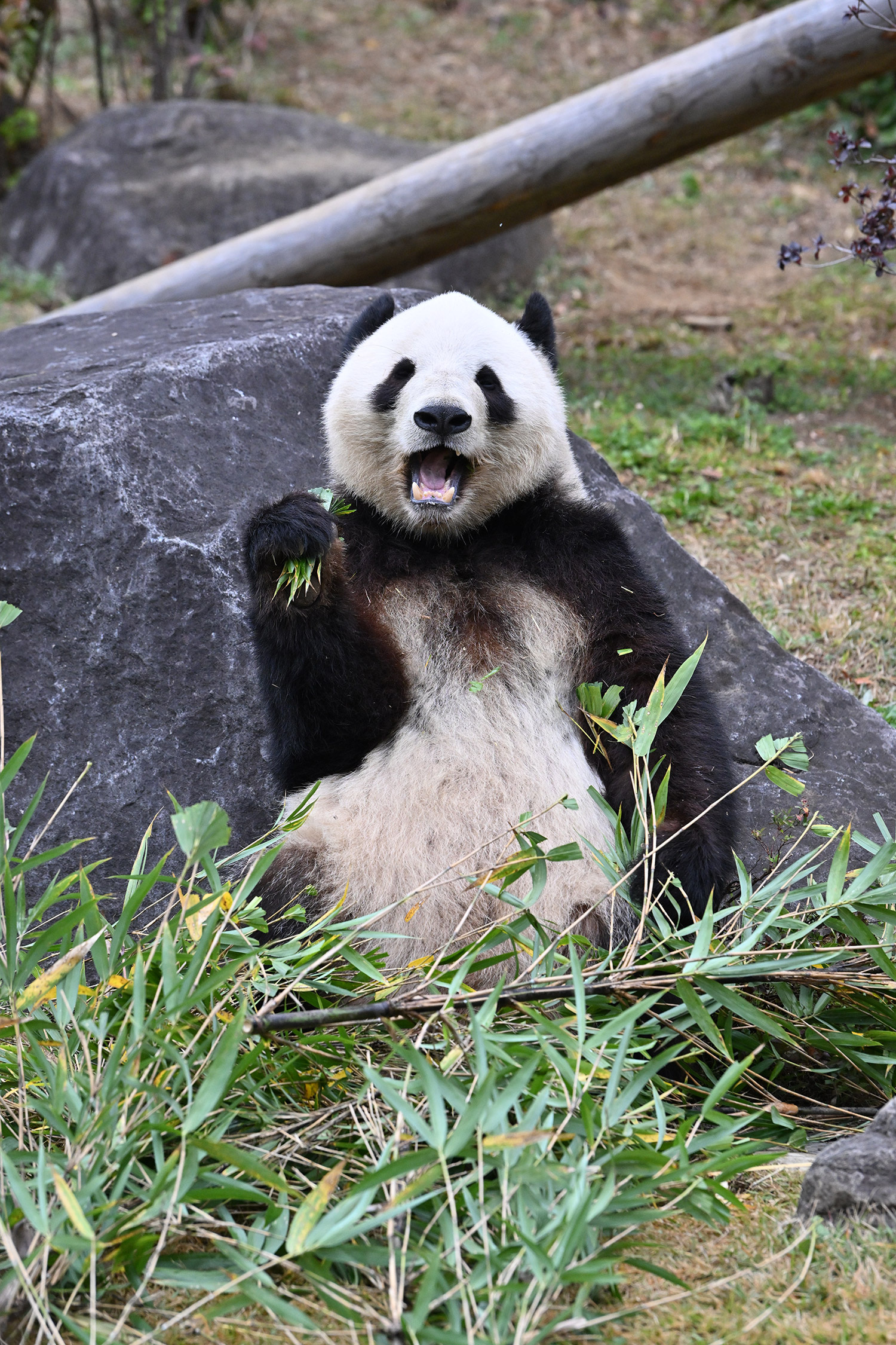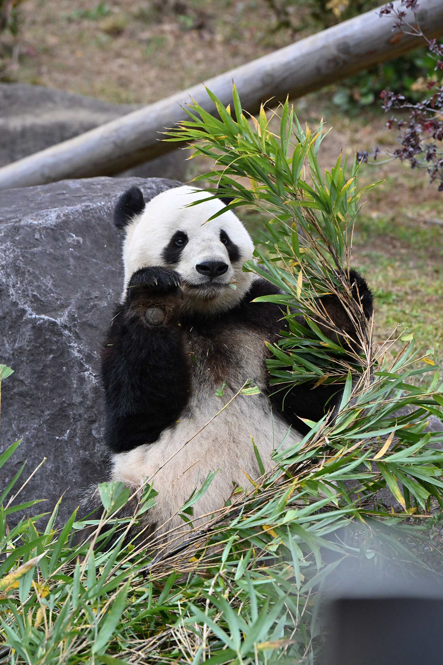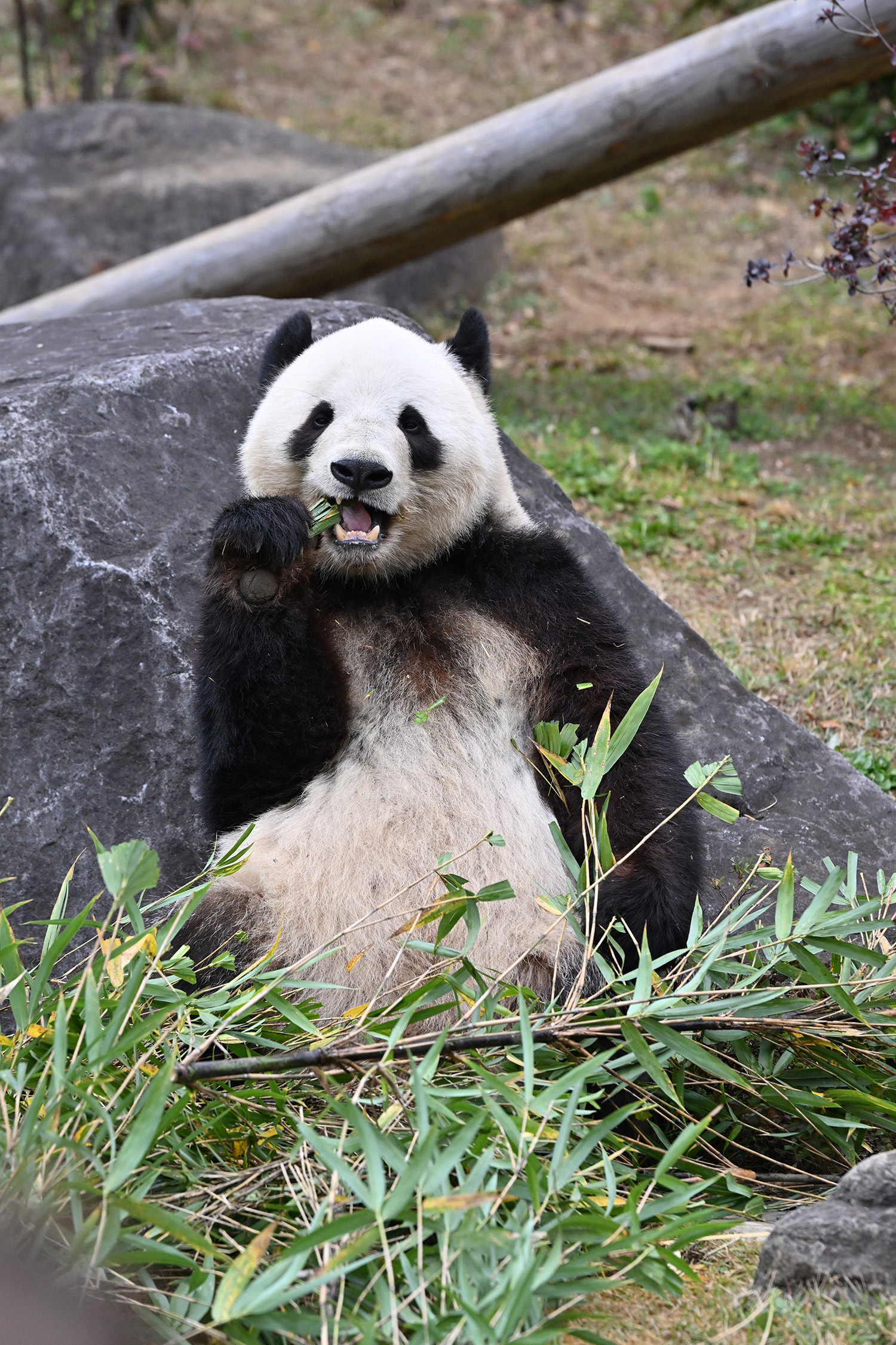 高氏さま 皆さま こんばんは。今日シャオレイちゃんに会って来ました。2時半前について シャオちゃんは背中を見せて横になって寝てました。俵型のおにぎりみたい😄 レイちゃんは40分待ちで 美味しそうに竹を頬張っていました。シャオちゃん起きてくれてて うろうろ竹を食べたり 1月までは、お庭のシャオレイちゃんが見られますね。レイちゃんがお部屋に入って お庭にレイモックが なんか寂しそうに見えました。皆さまのコメント楽しみにしています。有難うございます。