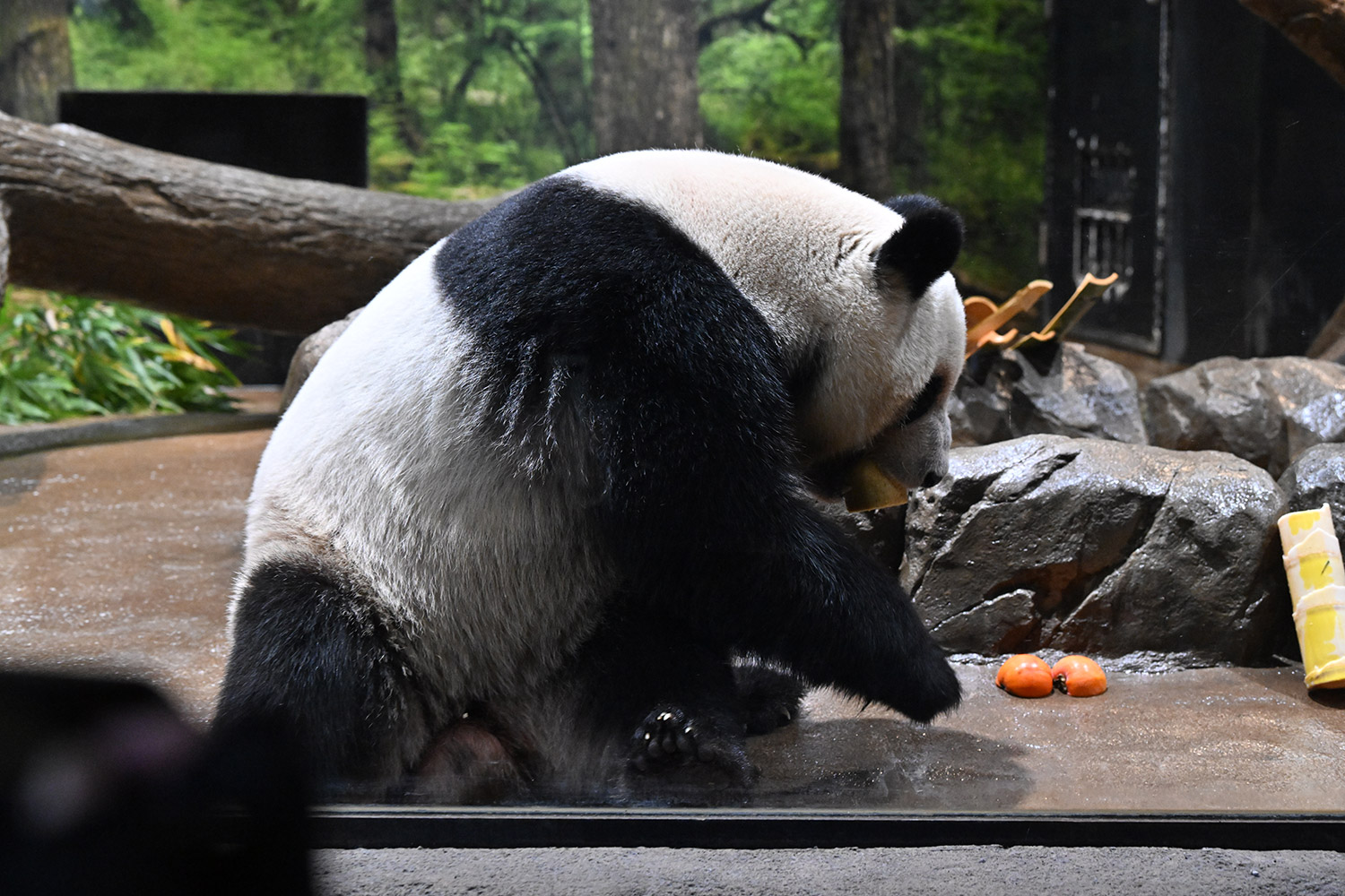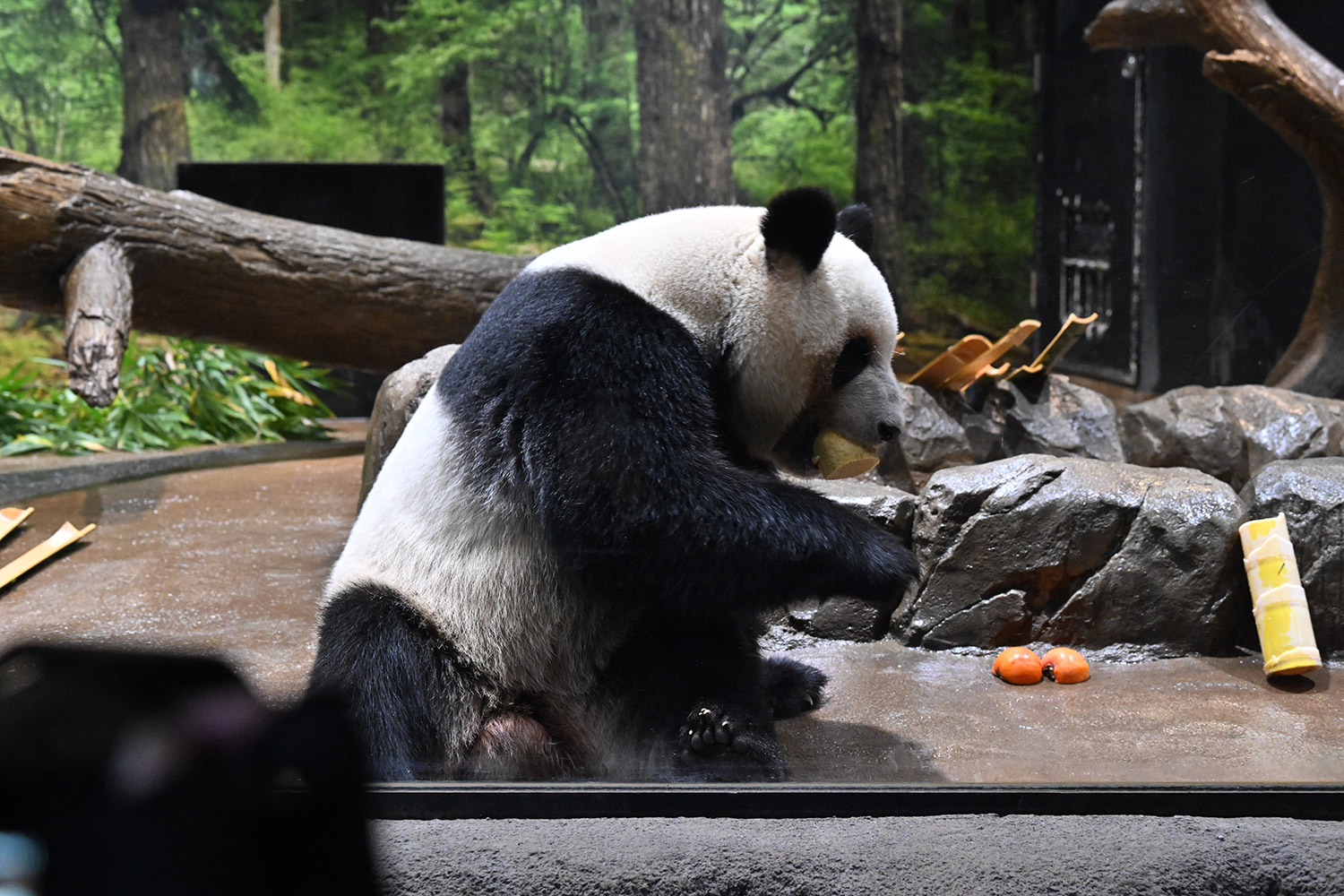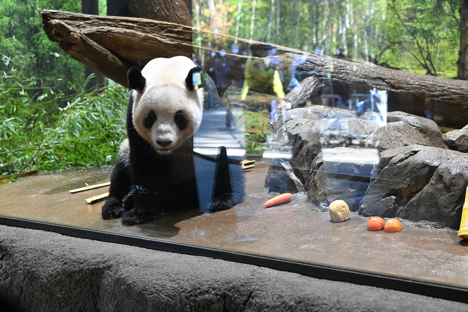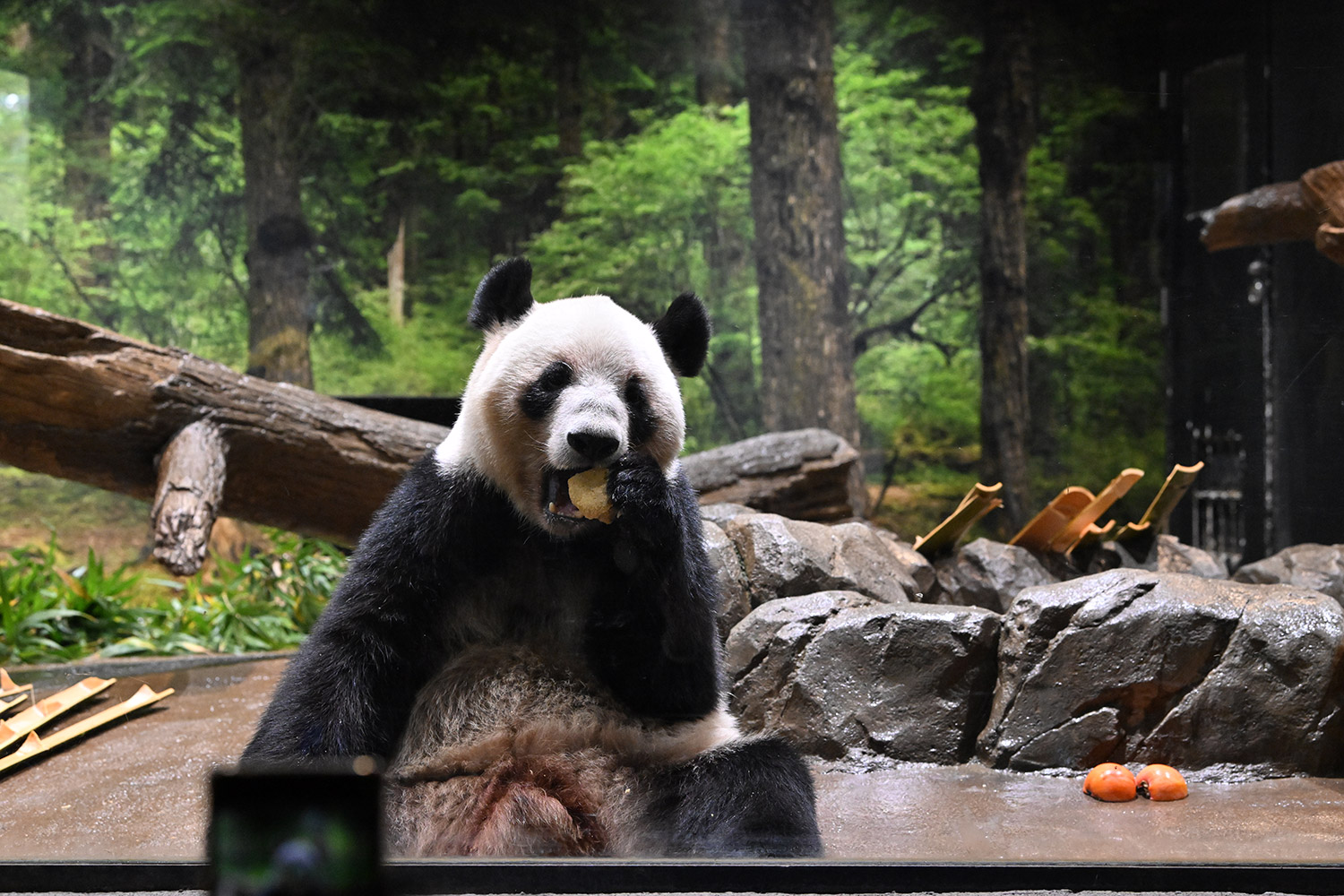 今日はパンダ団子が!レイちゃんの表情で美味しいのが♡分かりますね。筍は茹でた物なのかな、私には美味しそうに見えますがポツンと…ですね。シャオ君、場所を変えてお食事や木登りとお庭を満喫😊これだけ沢山のお写真を撮影されるのは、かなり大変なのではと想像いたします。私もシャオ君だけ午後観覧、お部屋で斜めのお食事姿。一生懸命でまあるい頭が、ピョコピョコ動いてなんて可愛いんでしょうと同時に会えなくなるんだと鼻の奥がツンとしました。観覧の場所はぎゅうぎゅうの人で「もうすぐいなくなっちゃうから」の声も聴こえました。レイちゃんに並ぶのは無理で諦め、初めて池之端門から出て根津千駄木と歩いて地下鉄へ、暑く無いので街歩きしてみました💨明日は土曜日また更に混雑しますね。どんな時も素敵なお写真を見せて下さりありがとうごさいます✨✨