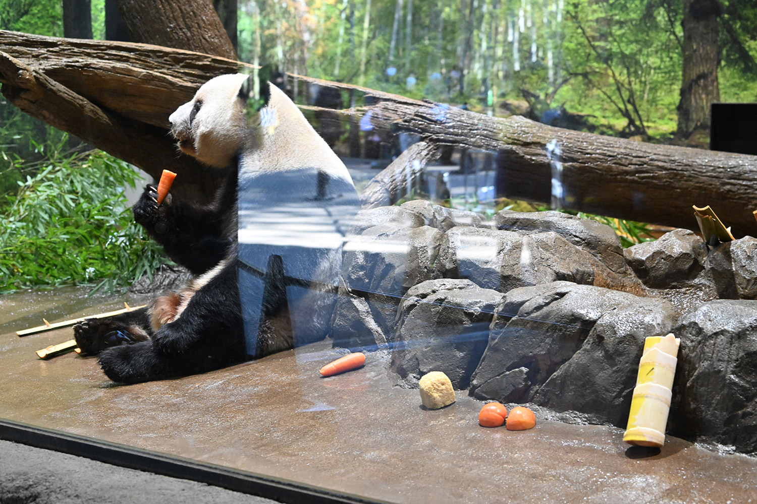 ❤️レイちゃん パンダ団子とっても美味しそうに食べていますね😋✨とってもいいお顔で🐼こちらまで食べている気分になります😋✨にんじん🥕柿タケノコもありご馳走ですね😋✨