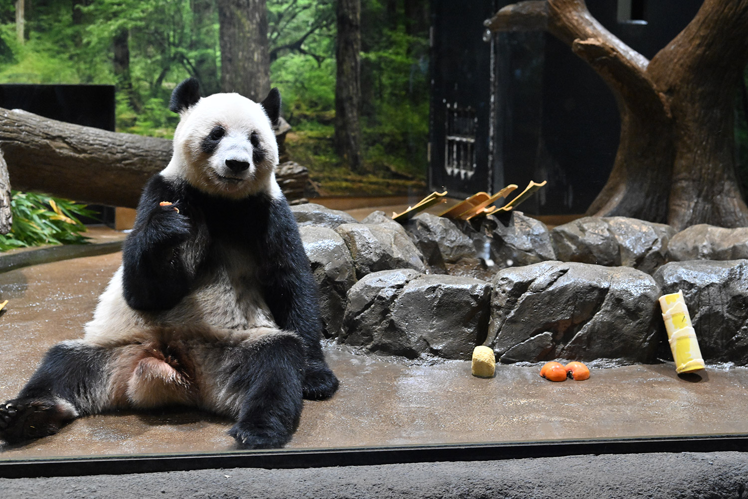 レイレイのお部屋に人参🥕、パンダ団子、柿、筍のおやつセットがあったのですね。