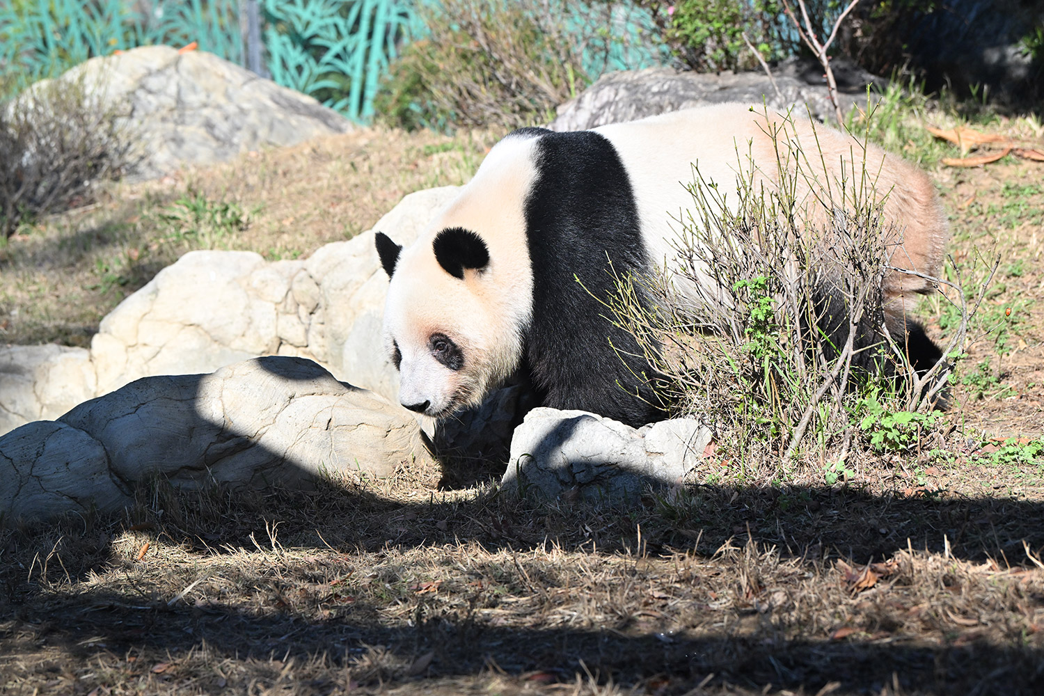 朝のお庭は明るく眩しいですね。レイちゃんオヤツ捜しシャオ君はお隣さんに声掛け続いてますね。青空とパンダさんの白黒が目に飛び込んできて気持ちが熱くなります。お写真ありがとうございました🐼❤️❤️🐼