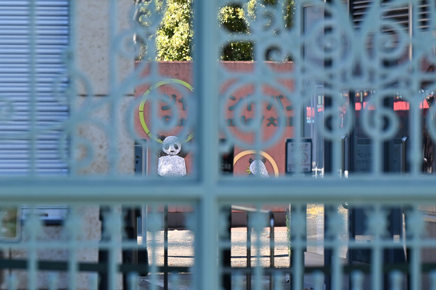 正門の隙間からみえる東園のシャンシャンのいたパンダ舎の入り口。