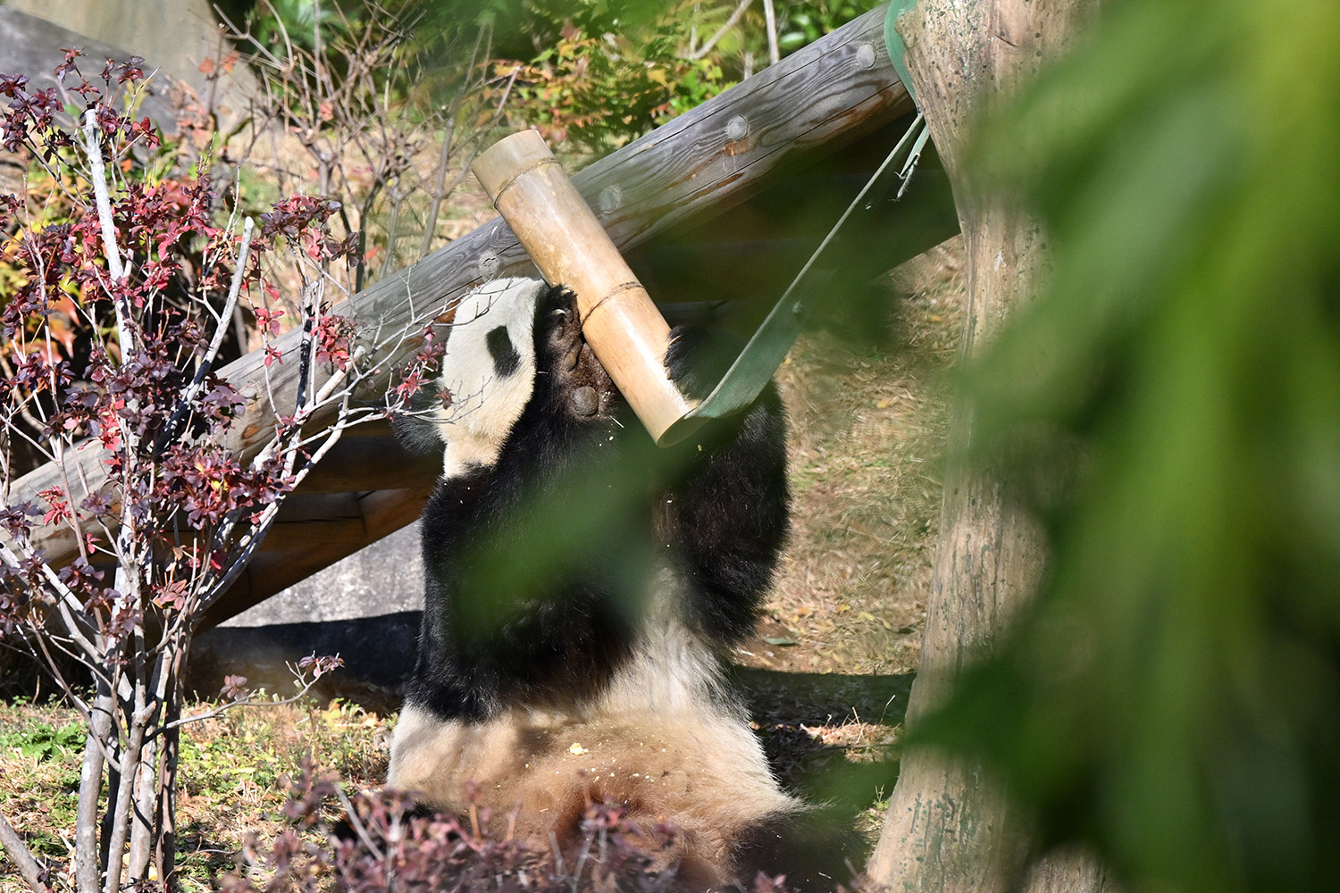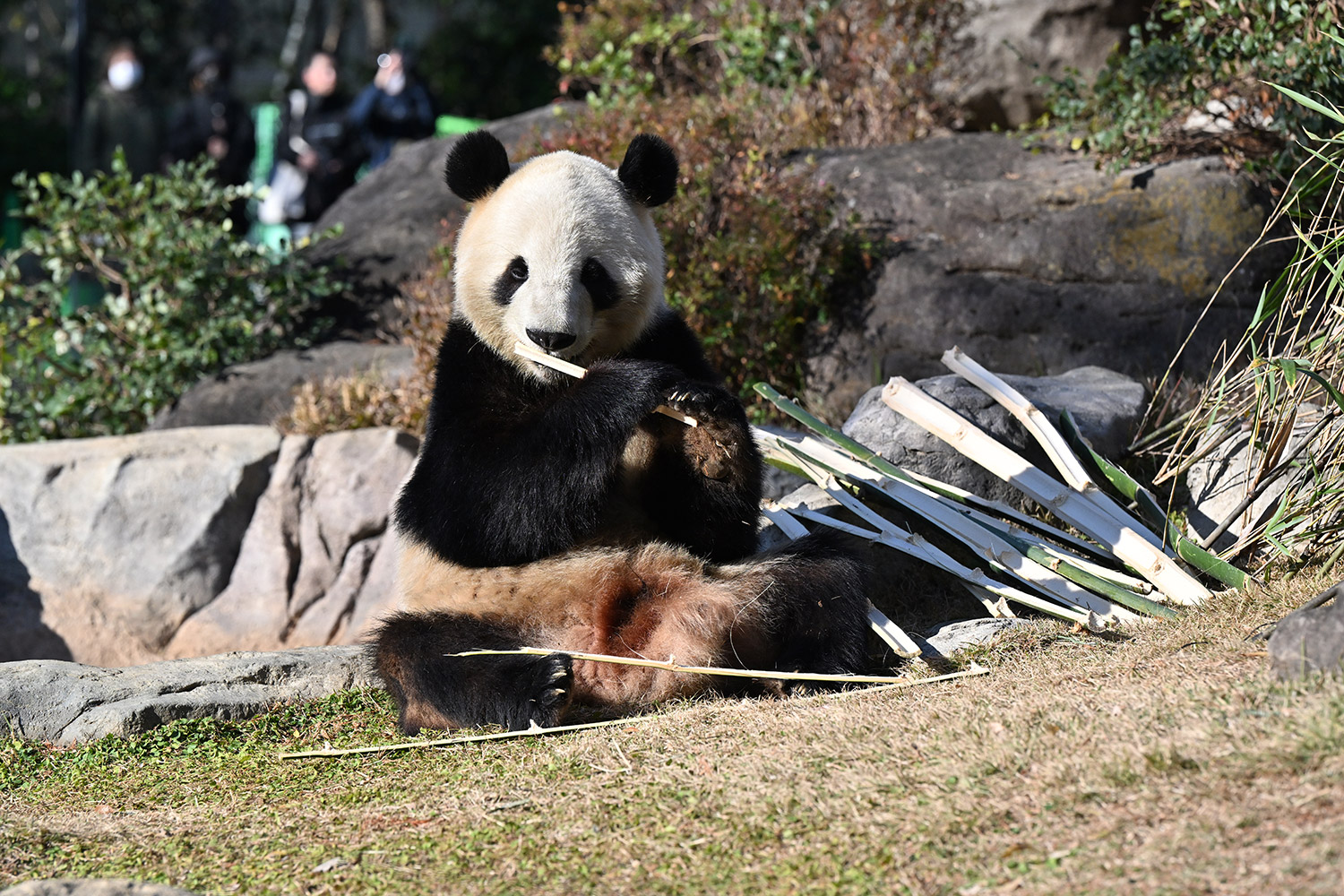 シャオシャオは、元気にアクティブな姿、レイレイは、竹の葉っぱをむしゃむしゃ、食欲旺盛で良かったです。