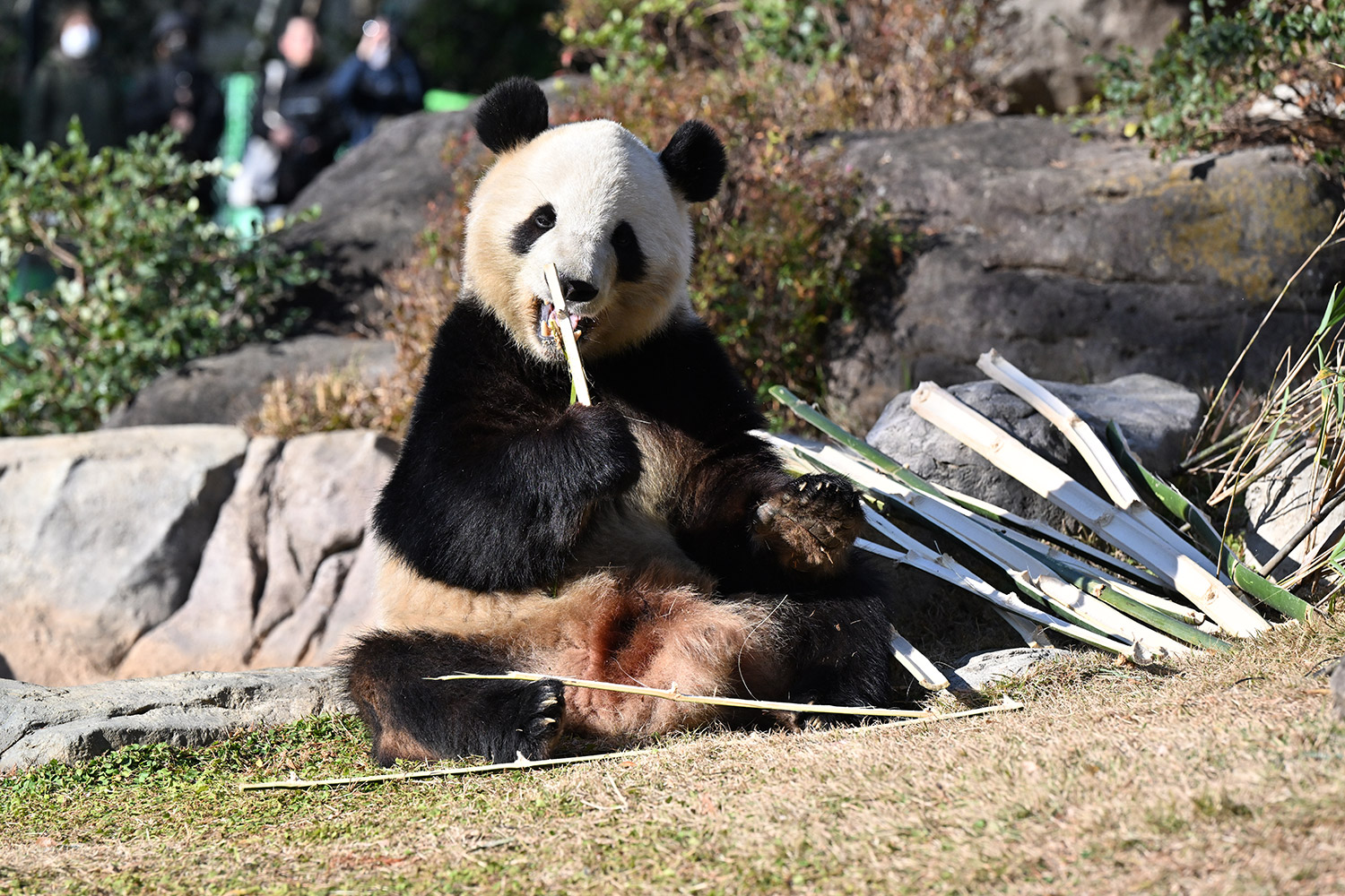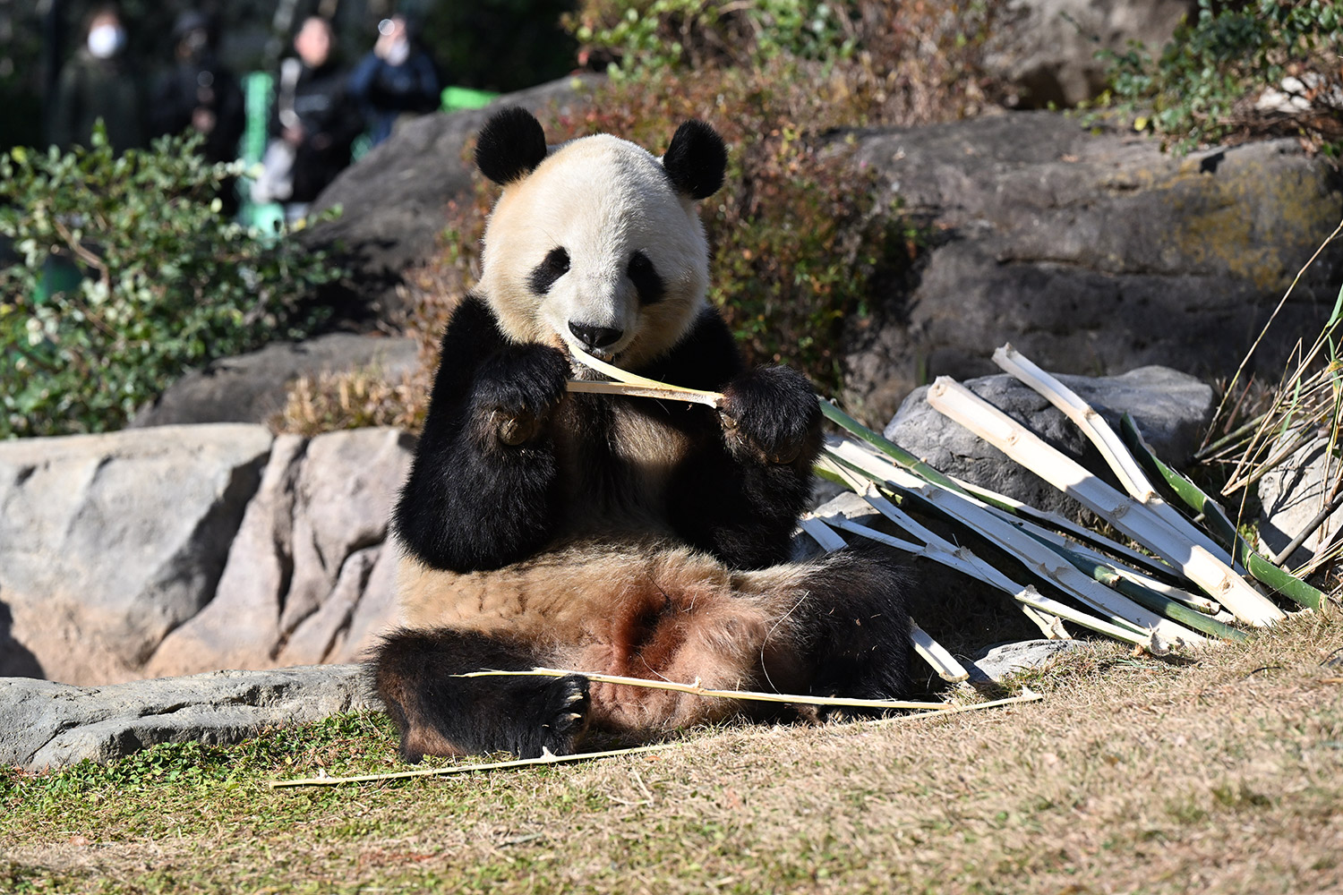 15分早く9:15 開門 9:50シャオくん観覧 お庭で笹をもぐもぐしていました💚