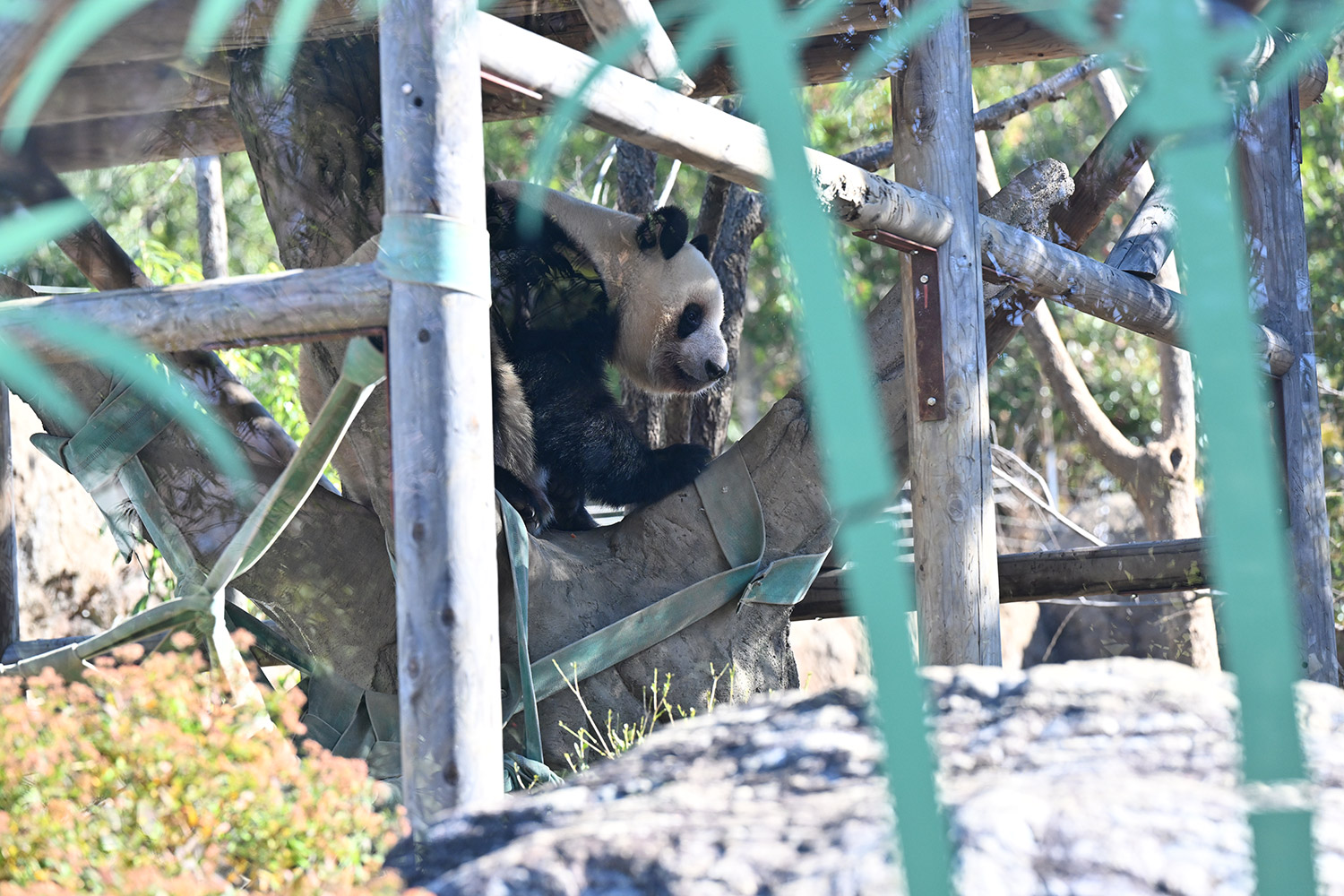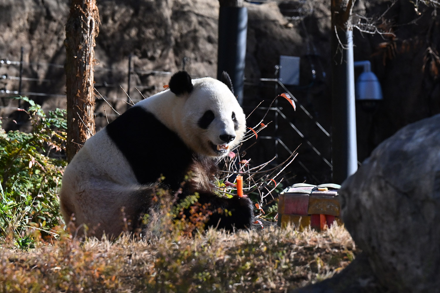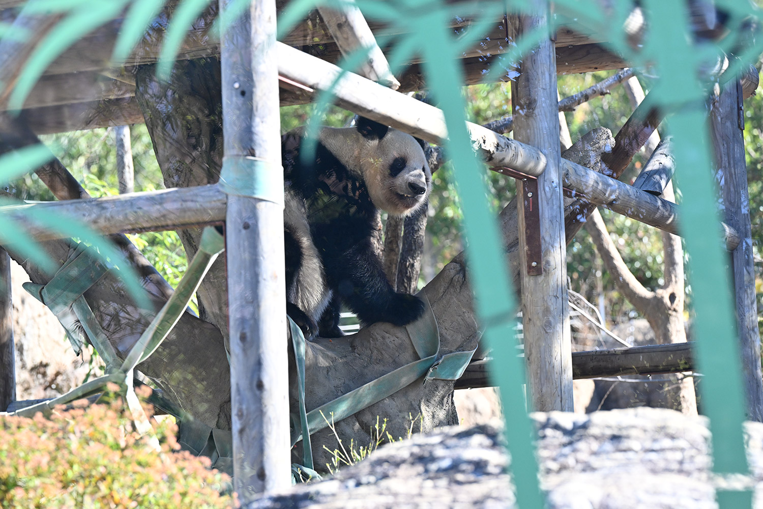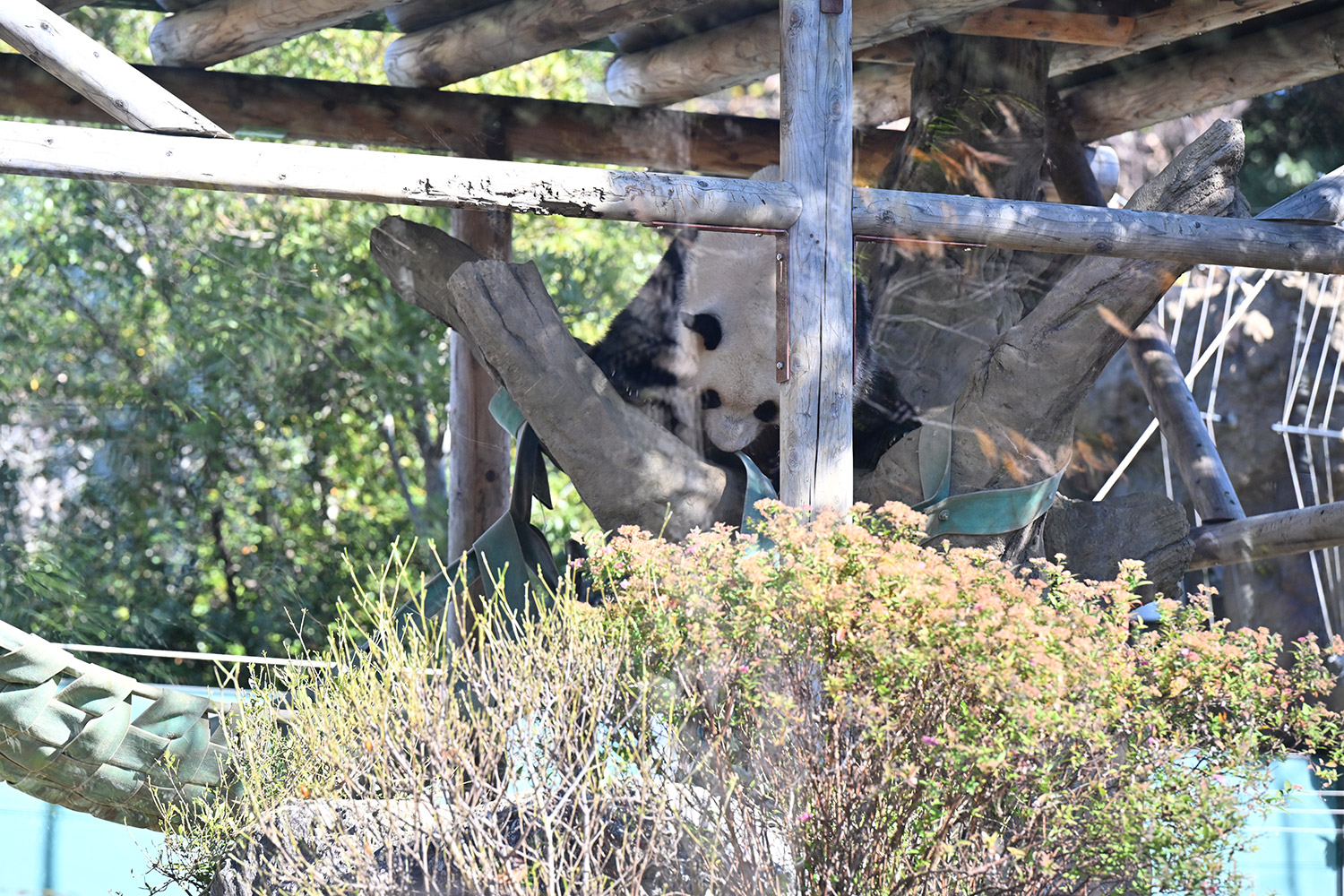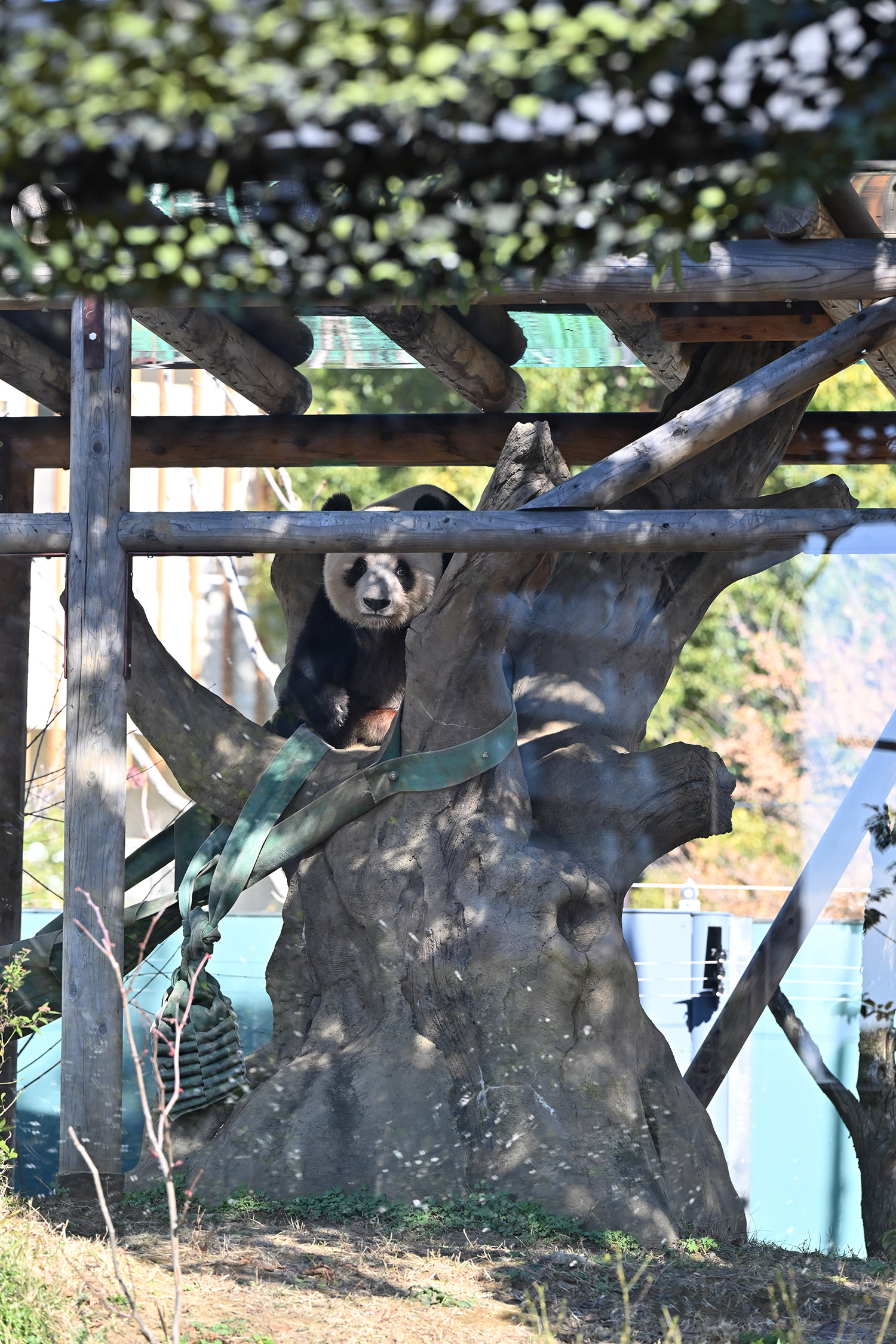 澄み渡った12月の青空と紅葉🍁白黒のシャオ🐼美しいシーンが心に染み入ります✨洞窟上の丸い後頭部、シャオと精養軒…期間限定の光景にウルッですが嬉しい!パパのお庭→シャオのお庭に。シャオ頼もしいぞ!褒めてくれるね!