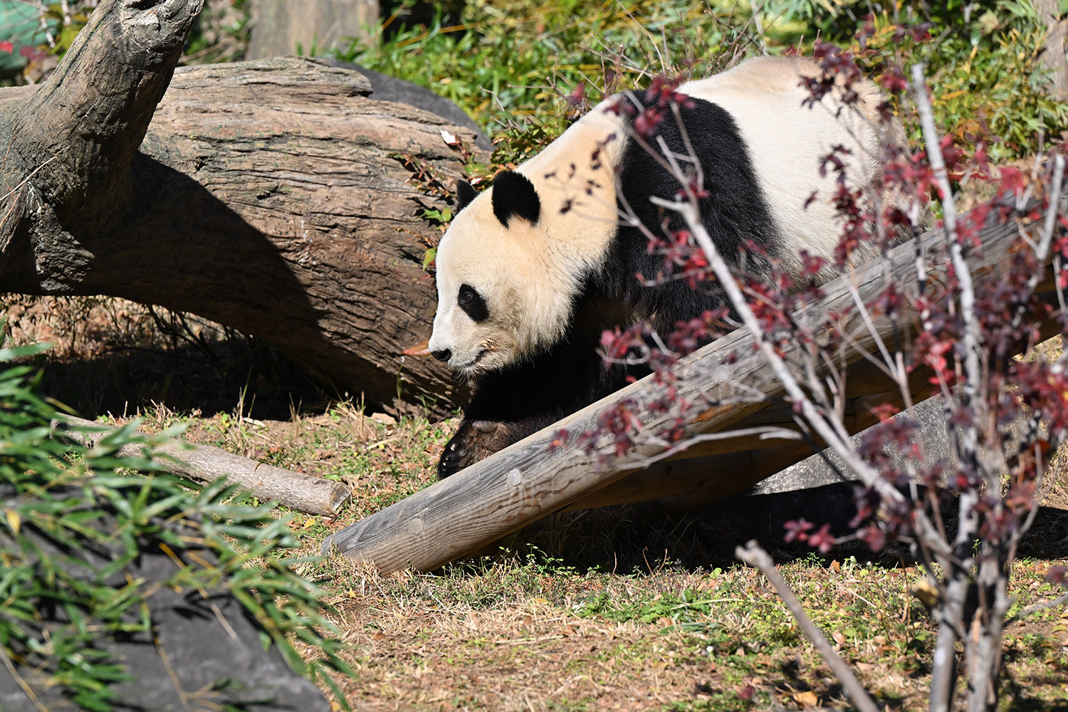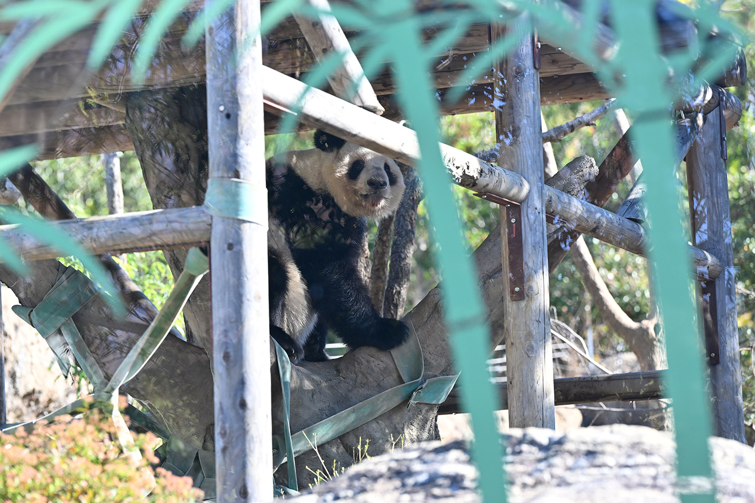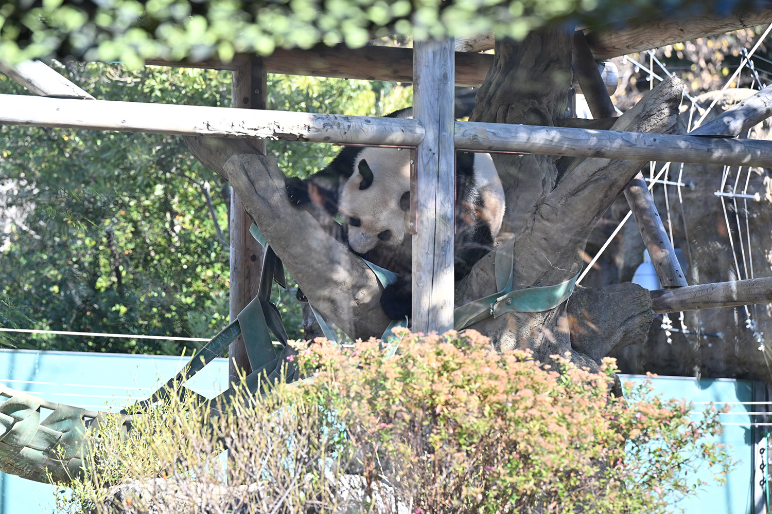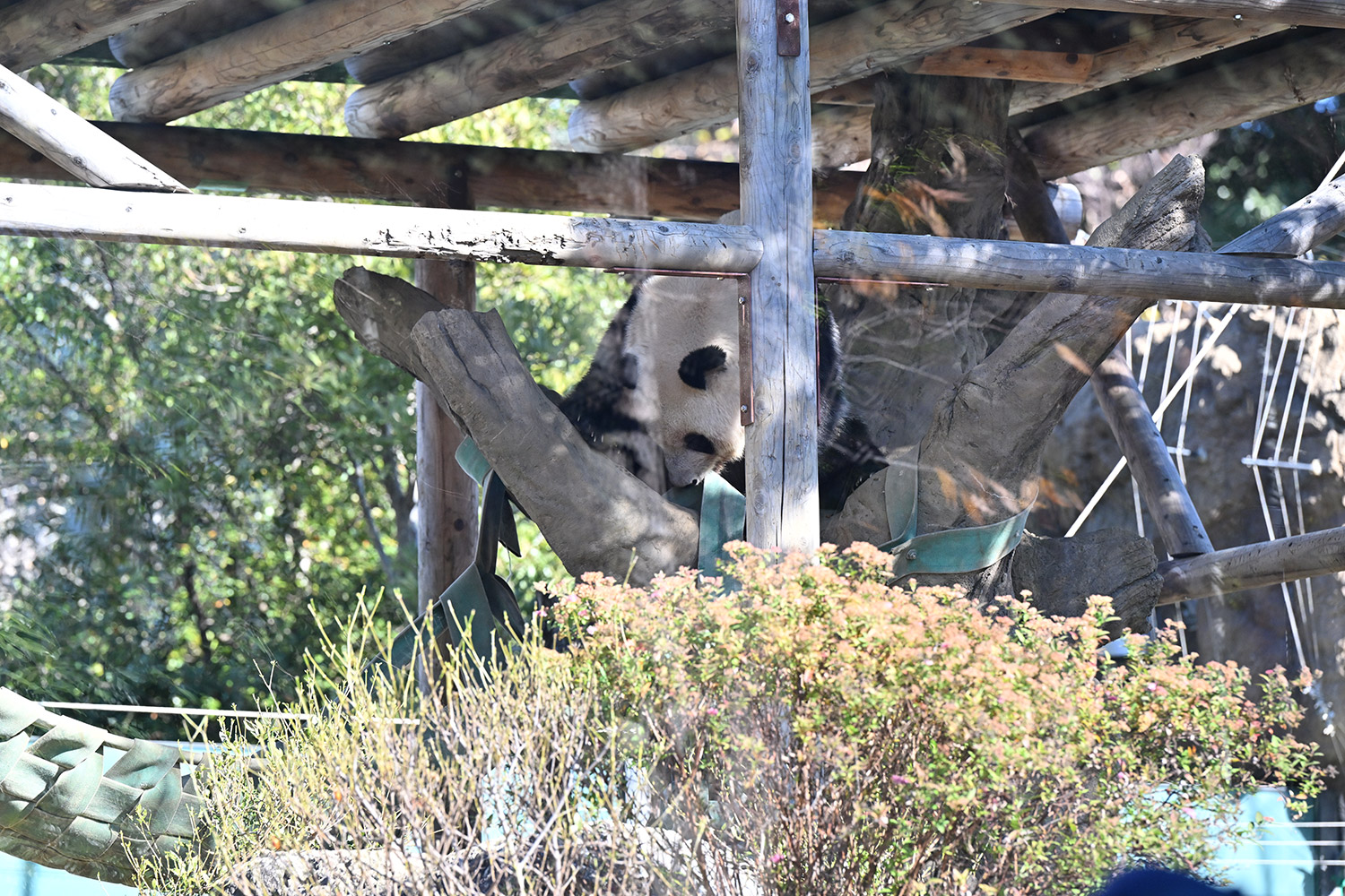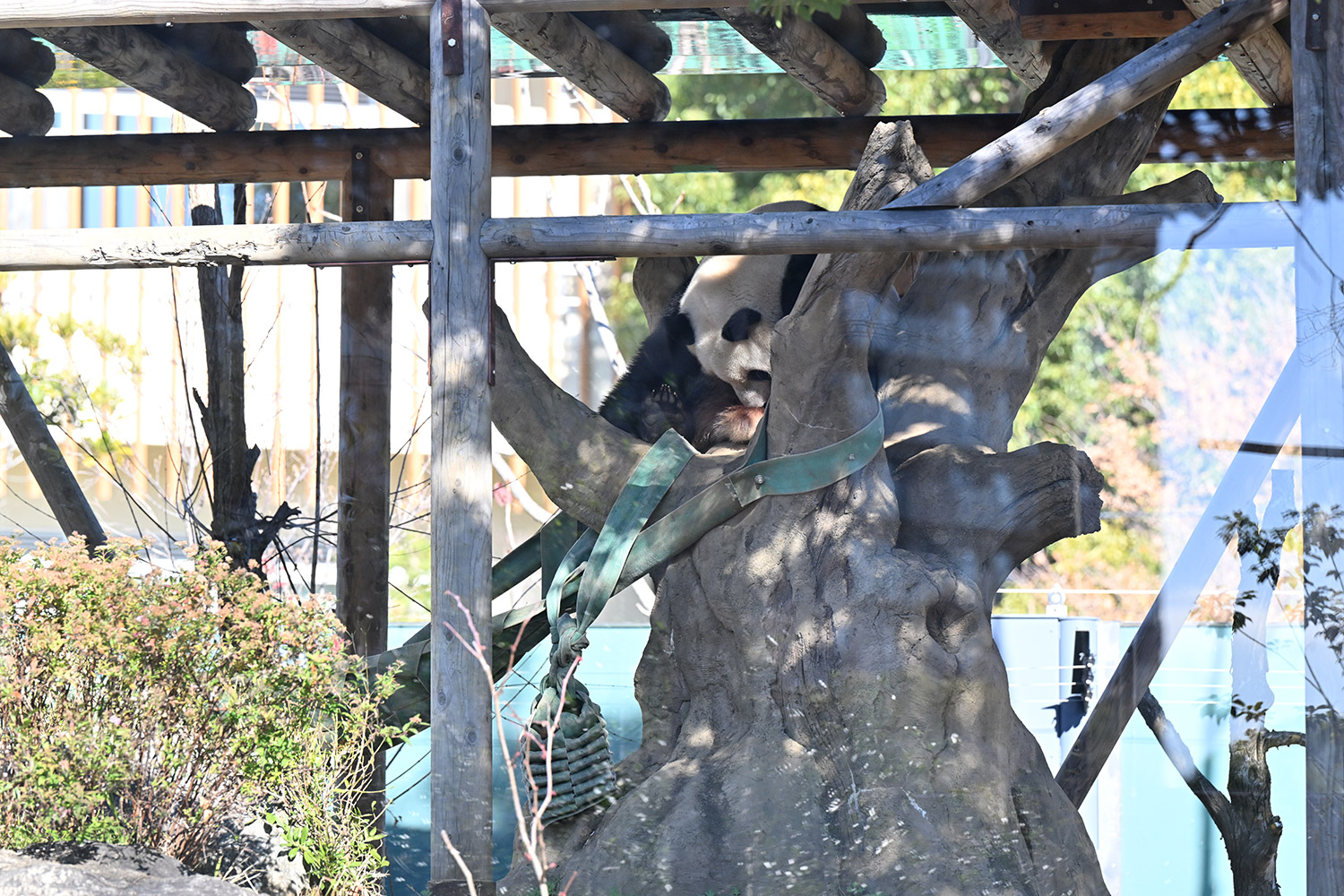 澄み渡った12月の青空と紅葉🍁白黒のシャオ🐼美しいシーンが心に染み入ります✨洞窟上の丸い後頭部、シャオと精養軒…期間限定の光景にウルッですが嬉しい!パパのお庭→シャオのお庭に。シャオ頼もしいぞ!褒めてくれるね!