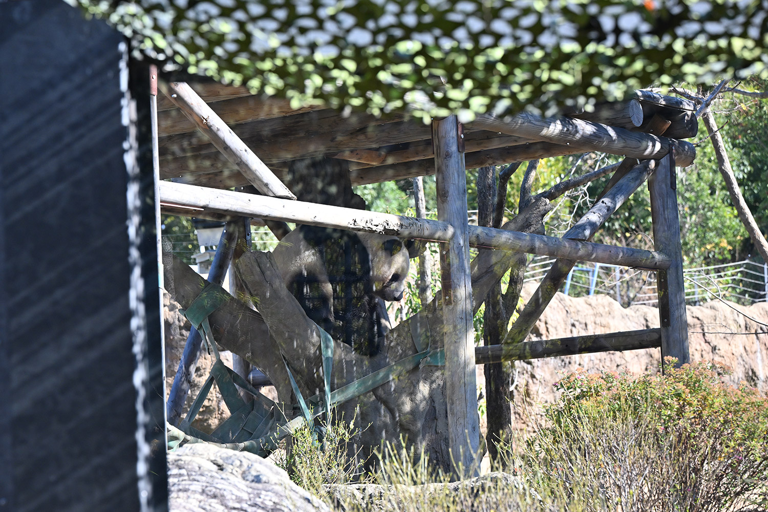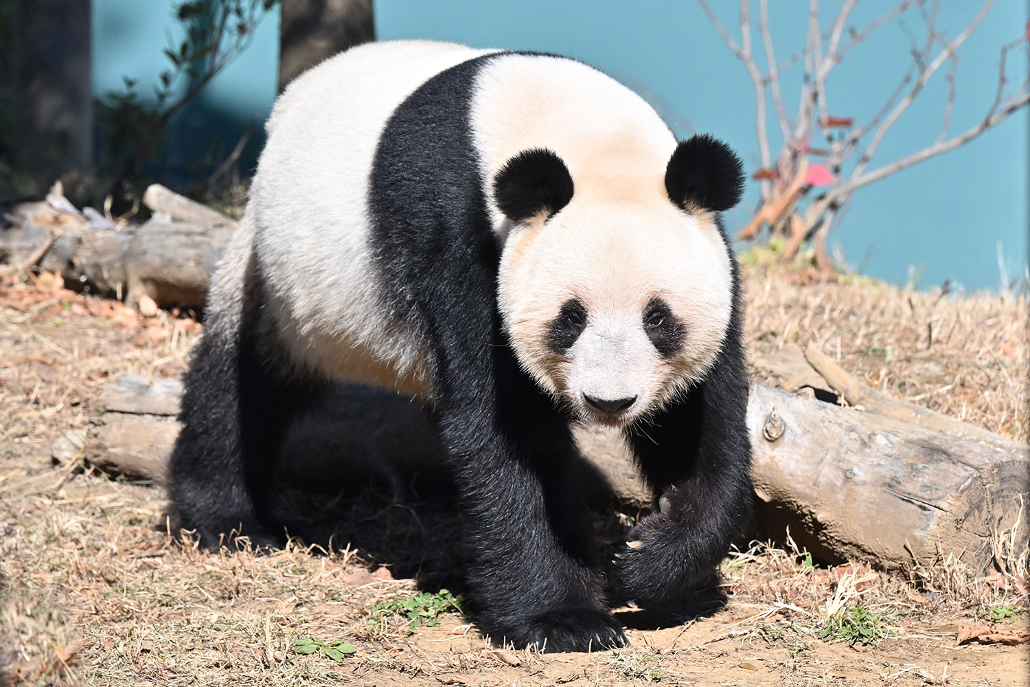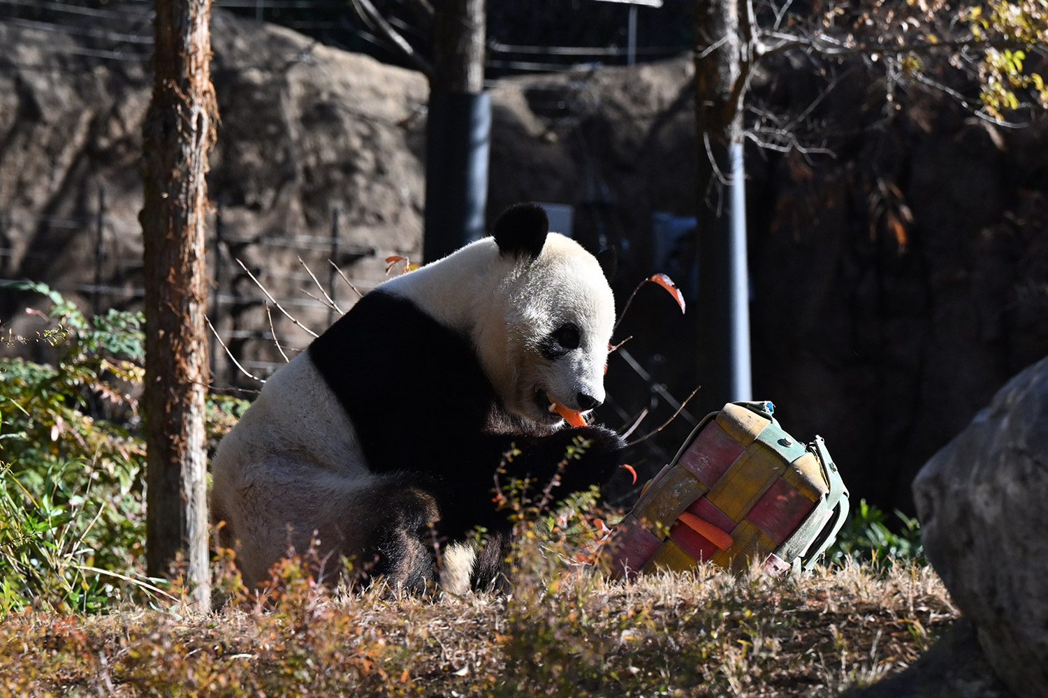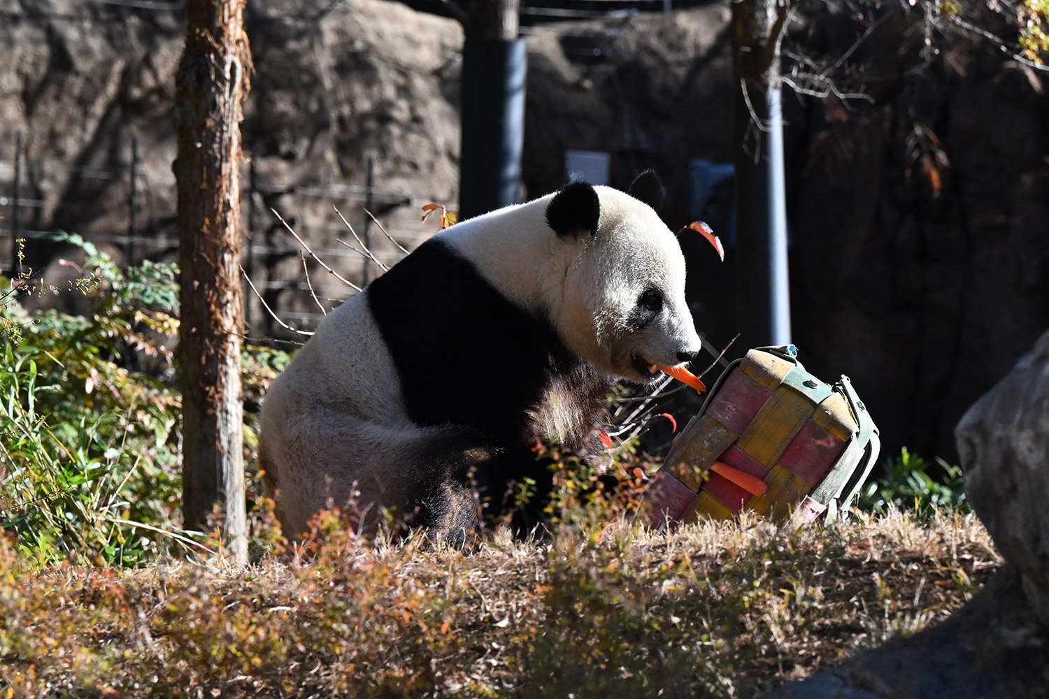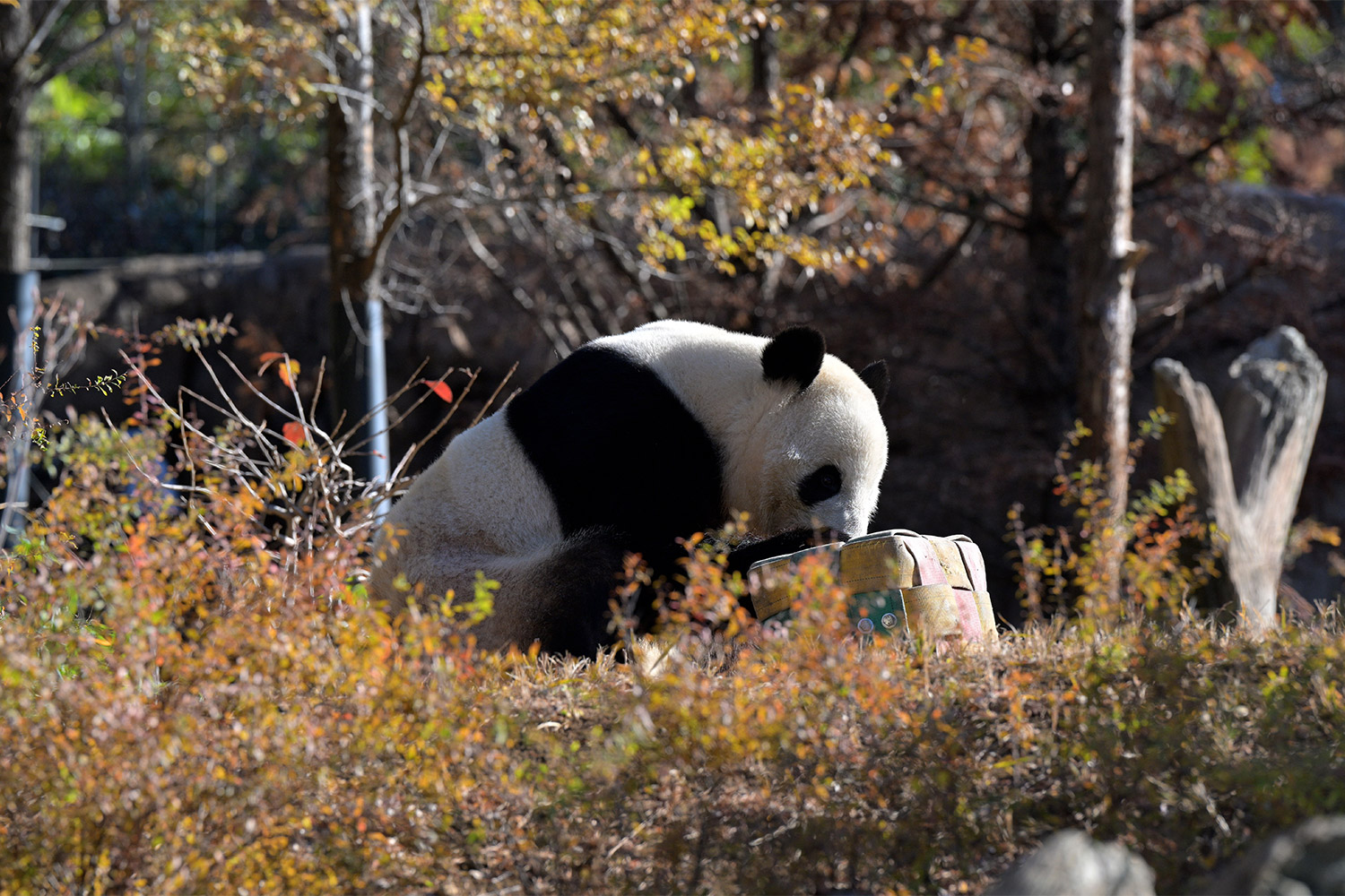 澄み渡った12月の青空と紅葉🍁白黒のシャオ🐼美しいシーンが心に染み入ります✨洞窟上の丸い後頭部、シャオと精養軒…期間限定の光景にウルッですが嬉しい!パパのお庭→シャオのお庭に。シャオ頼もしいぞ!褒めてくれるね!