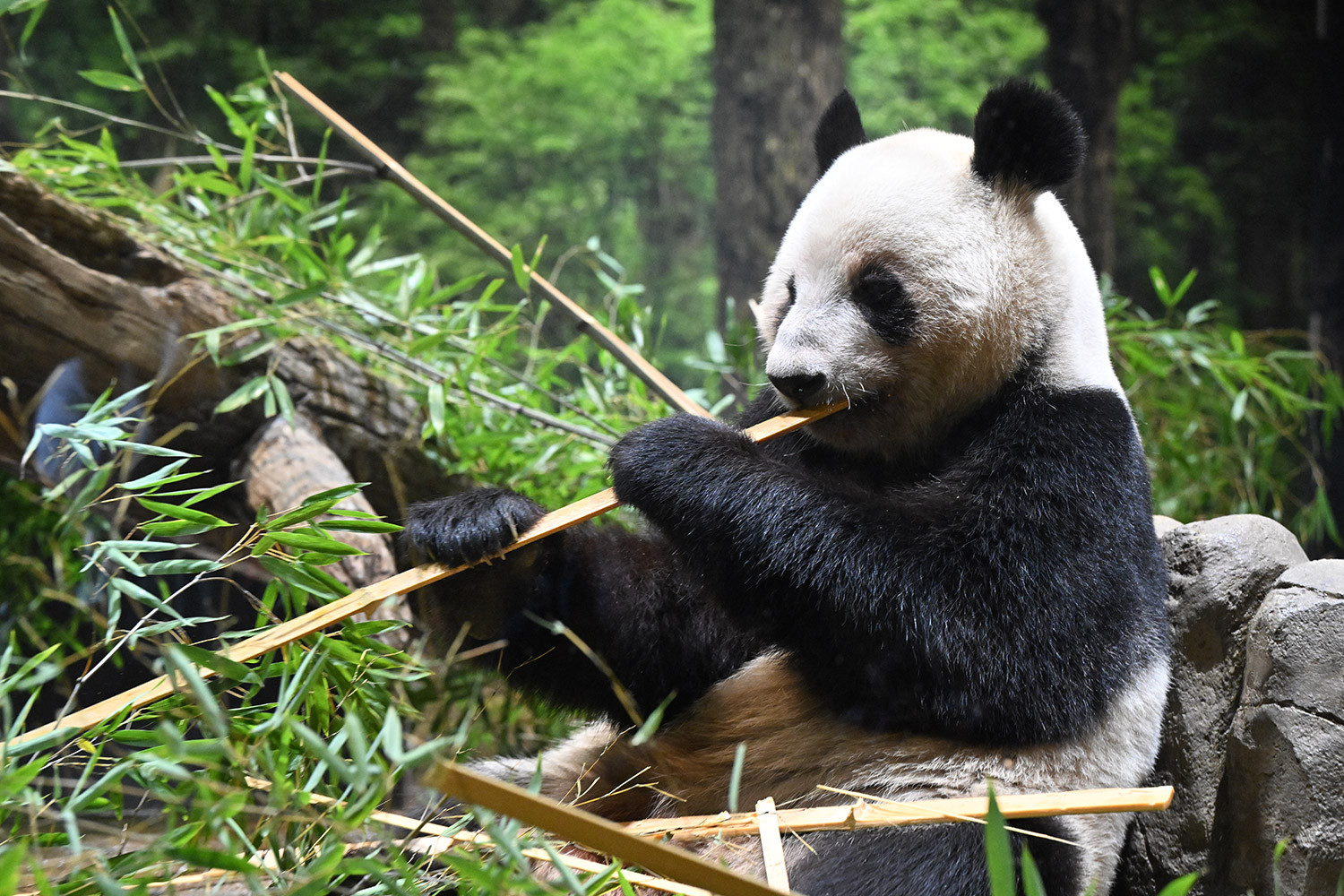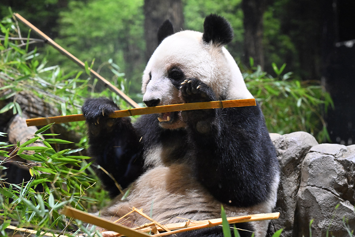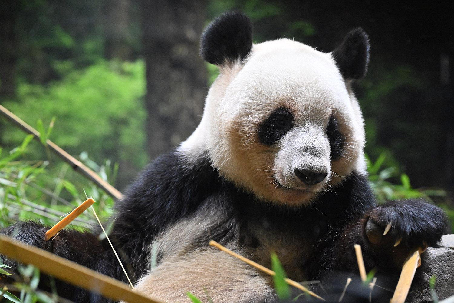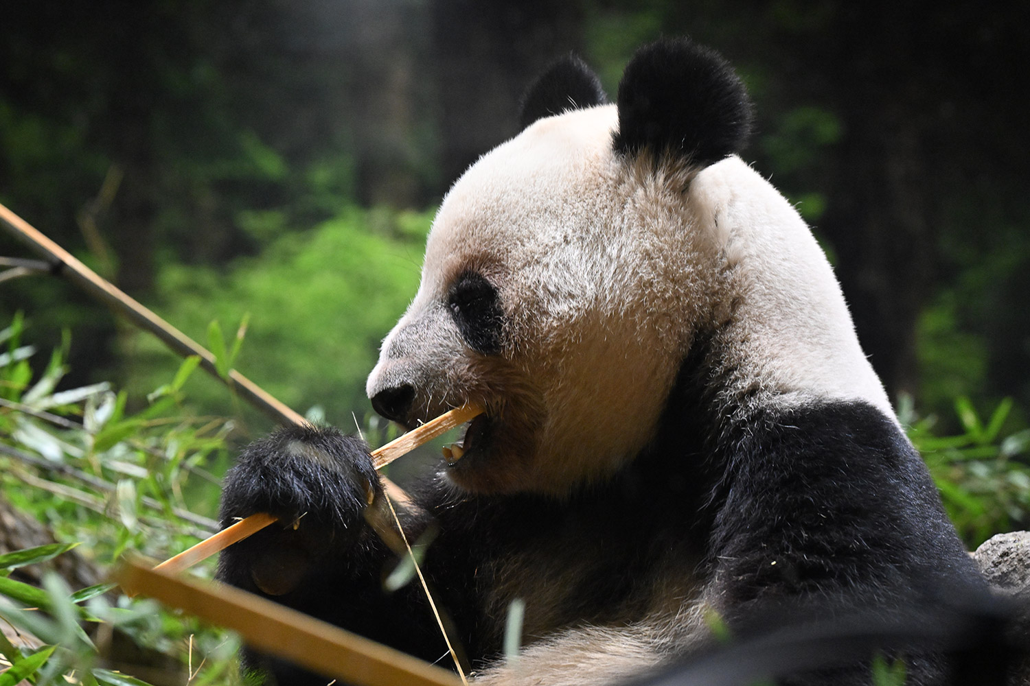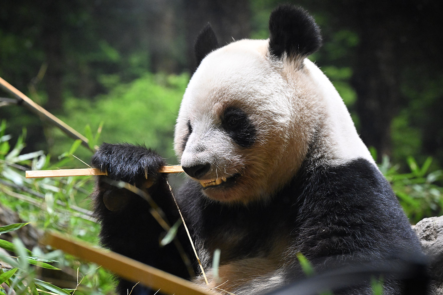 シャオくんもレイちゃんもお庭で食べるおやつを楽しみ今日を元気に暮らしていますね🤗❤️ シャオくんウヒヒと不思議な微笑み、そんなに人参おいしかったの〜?🤣🥕 レイちゃんモックでごろごろ今日は逆さに今日は😁櫓の下で大ジャーンプ⛷️そうなの竹はお部屋で食べるのね😋🎋 見る側の心情は段々とお写真が涙でにじみそうになっていますが😢、ふたりの表情や仕草が面白くてやはり笑顔になります😊💕 連日早朝から並ばれての撮影をありがとうございます🙏