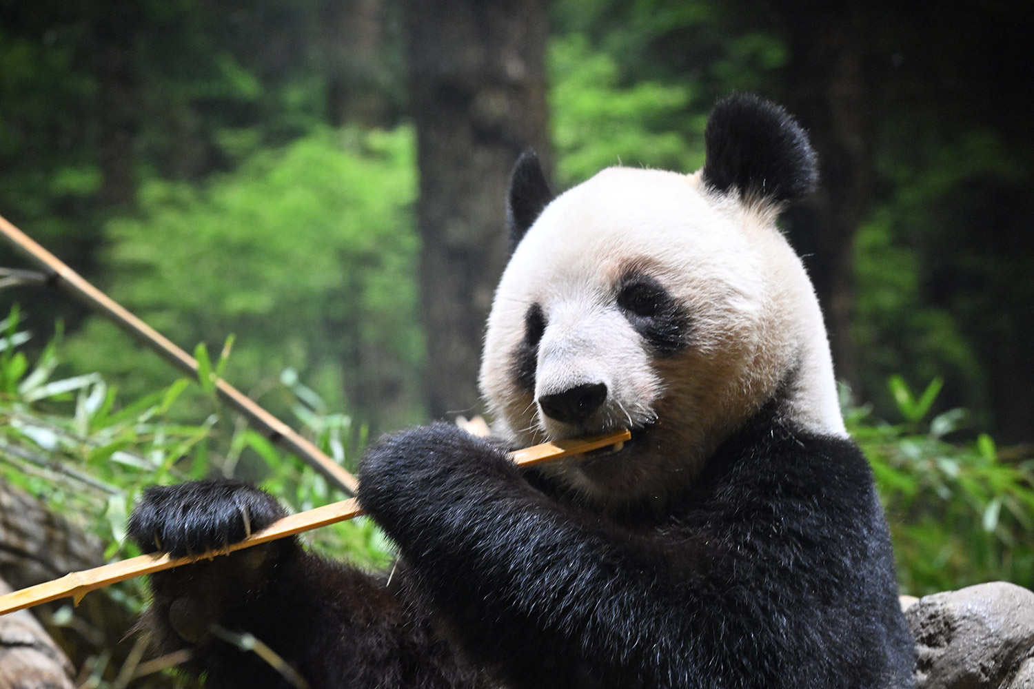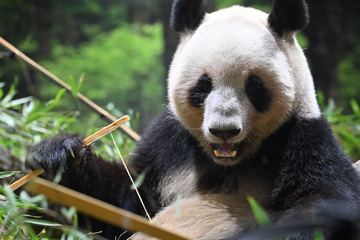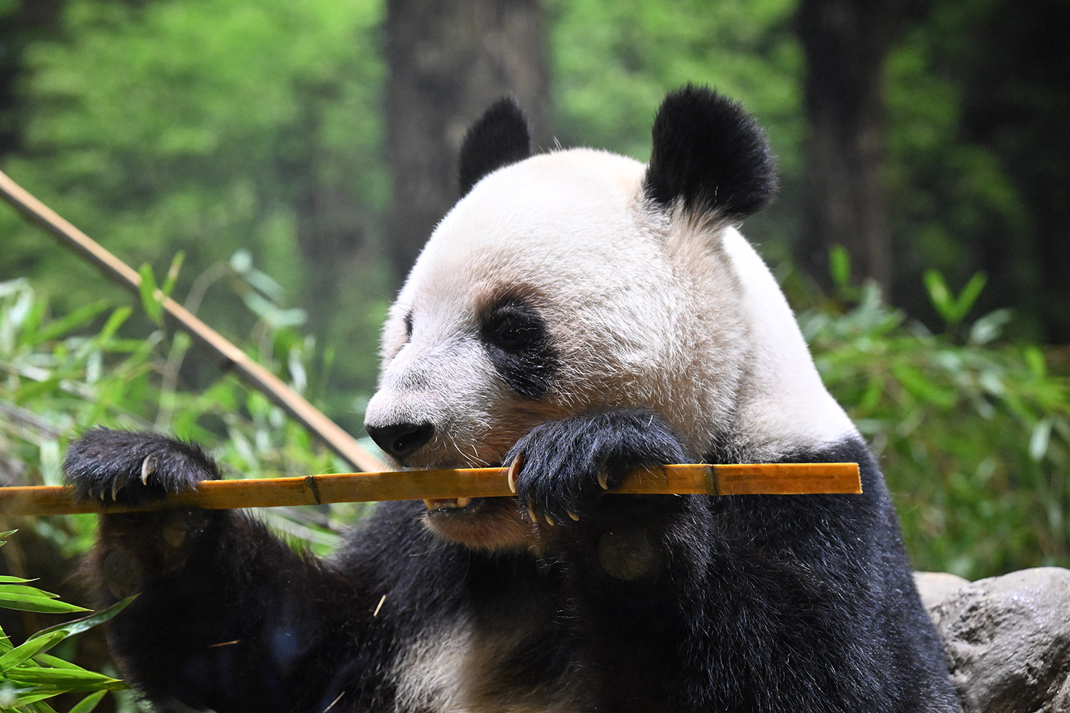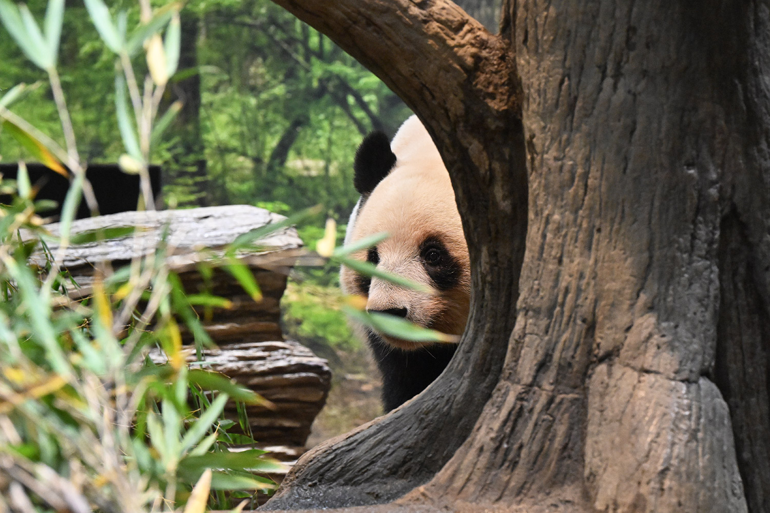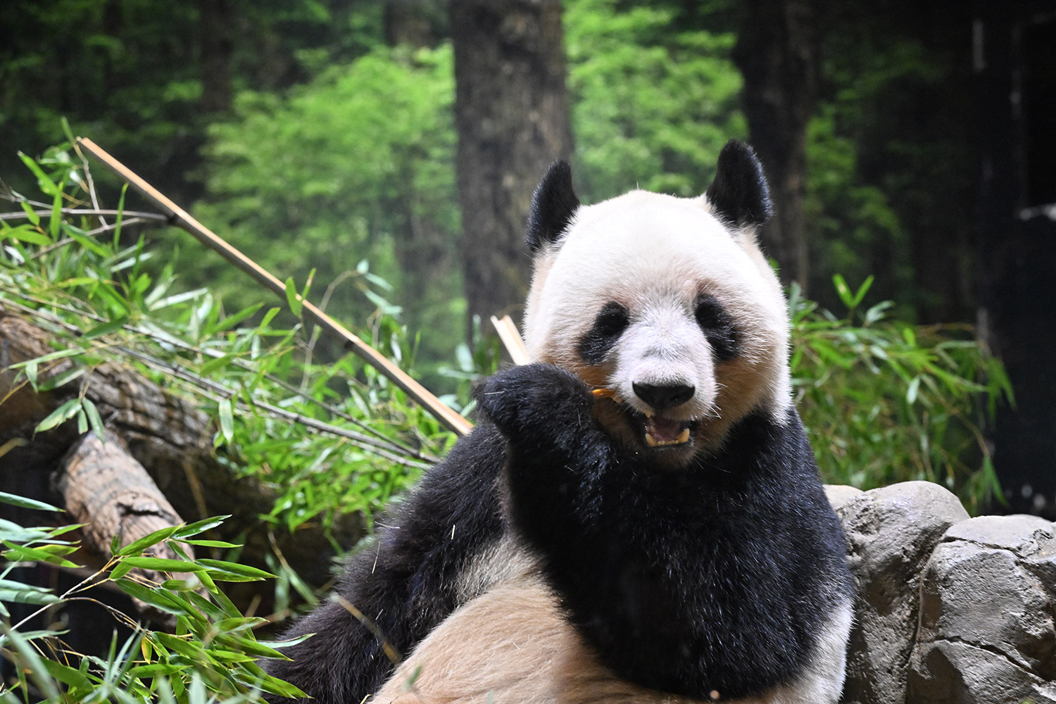 シャオくんもレイちゃんもお庭で食べるおやつを楽しみ今日を元気に暮らしていますね🤗❤️ シャオくんウヒヒと不思議な微笑み、そんなに人参おいしかったの〜?🤣🥕 レイちゃんモックでごろごろ今日は逆さに今日は😁櫓の下で大ジャーンプ⛷️そうなの竹はお部屋で食べるのね😋🎋 見る側の心情は段々とお写真が涙でにじみそうになっていますが😢、ふたりの表情や仕草が面白くてやはり笑顔になります😊💕 連日早朝から並ばれての撮影をありがとうございます🙏