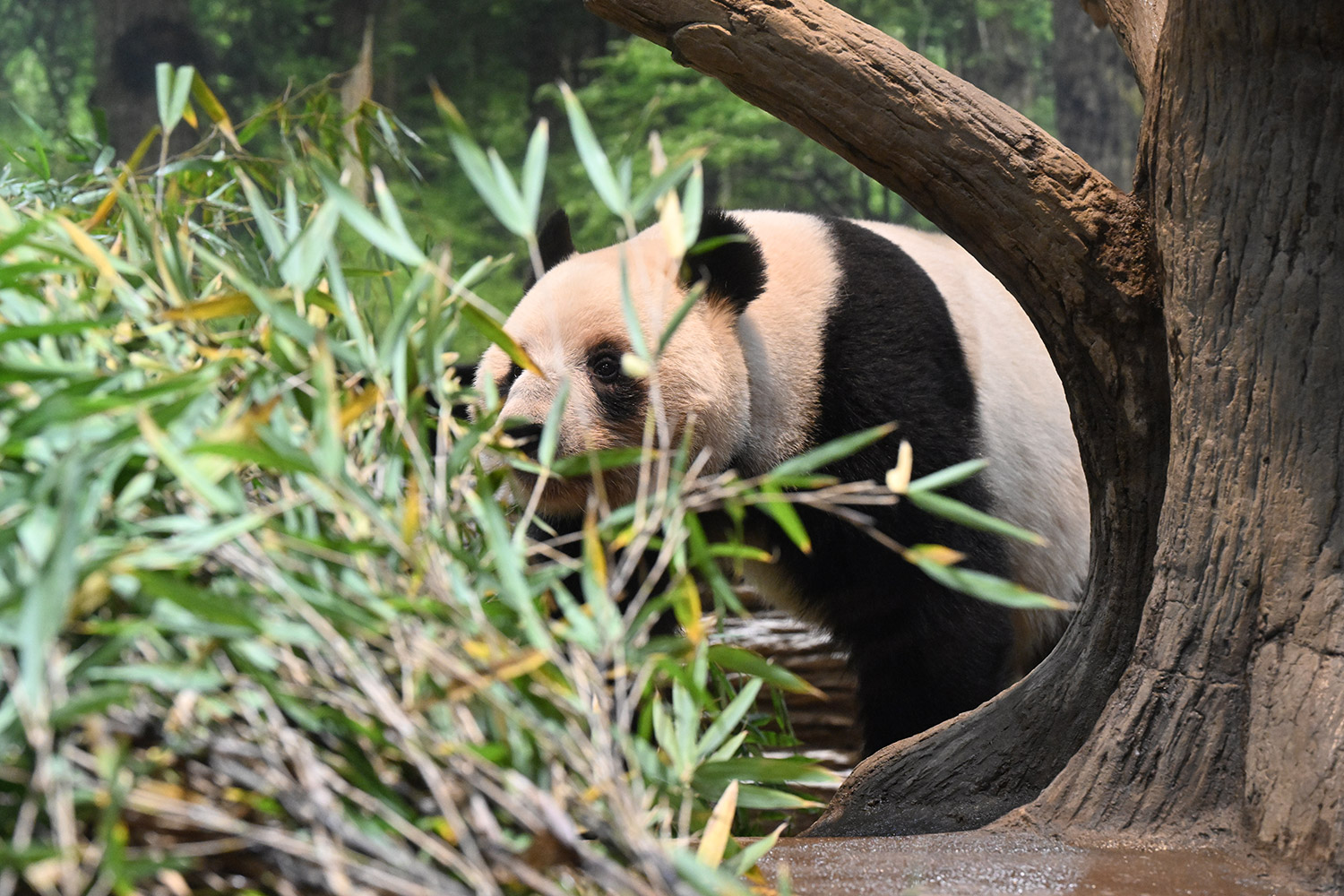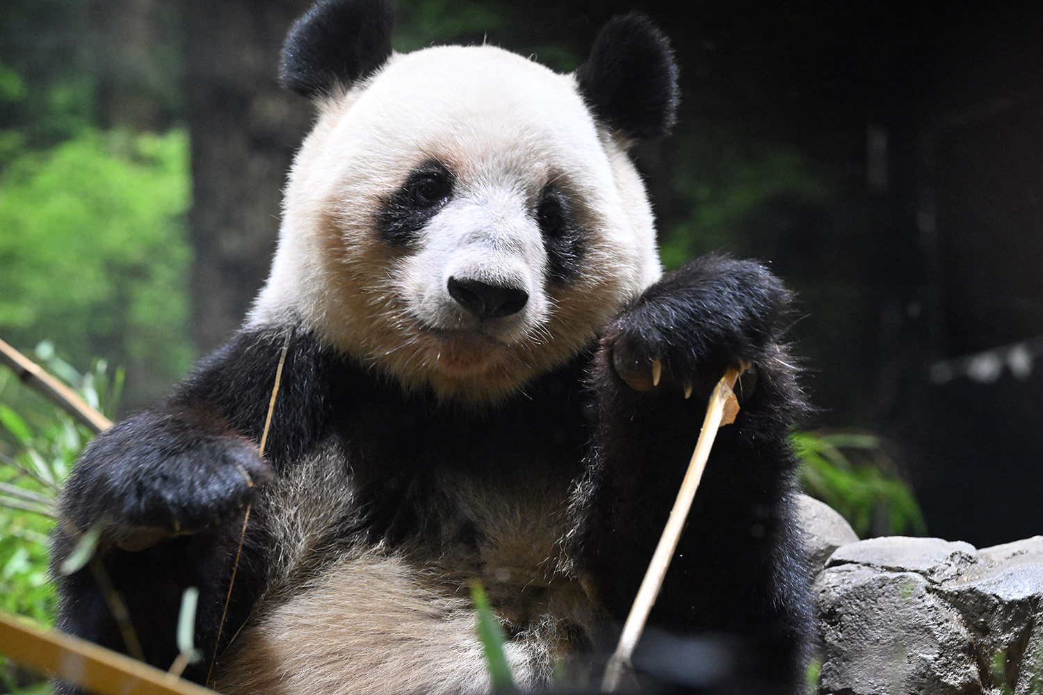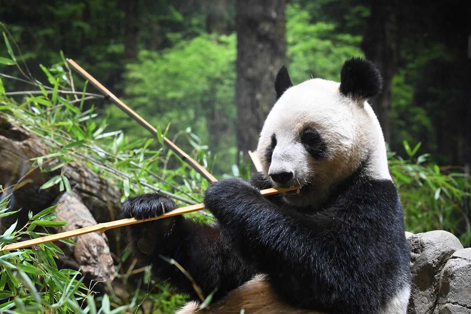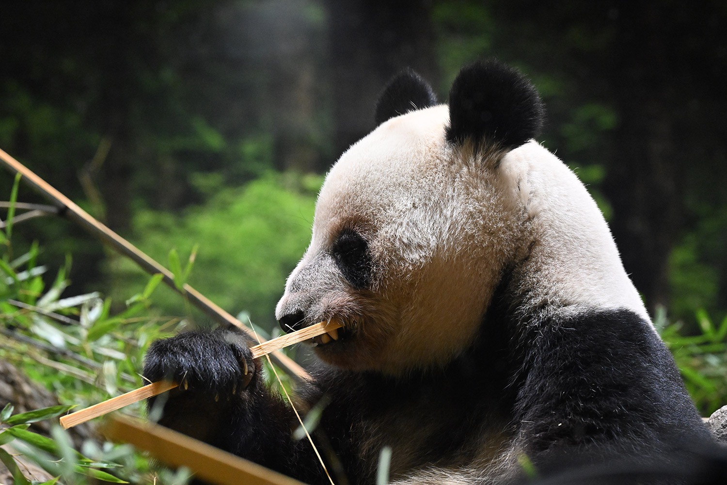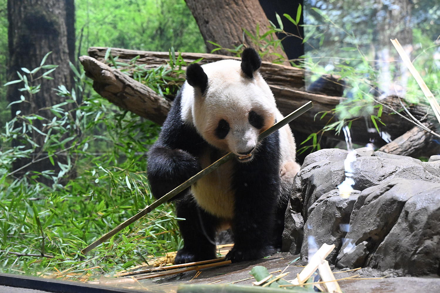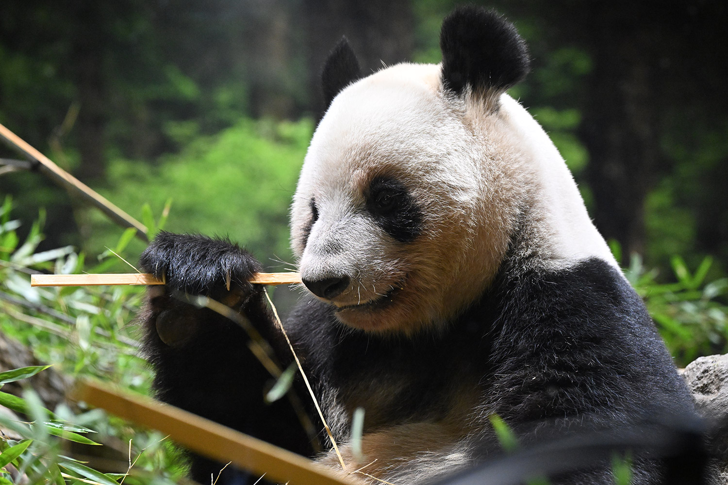 シャオくんもレイちゃんもお庭で食べるおやつを楽しみ今日を元気に暮らしていますね🤗❤️ シャオくんウヒヒと不思議な微笑み、そんなに人参おいしかったの〜?🤣🥕 レイちゃんモックでごろごろ今日は逆さに今日は😁櫓の下で大ジャーンプ⛷️そうなの竹はお部屋で食べるのね😋🎋 見る側の心情は段々とお写真が涙でにじみそうになっていますが😢、ふたりの表情や仕草が面白くてやはり笑顔になります😊💕 連日早朝から並ばれての撮影をありがとうございます🙏