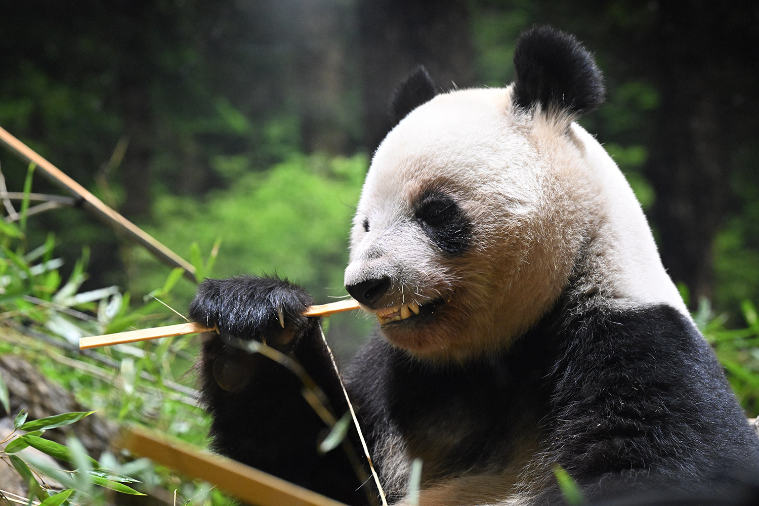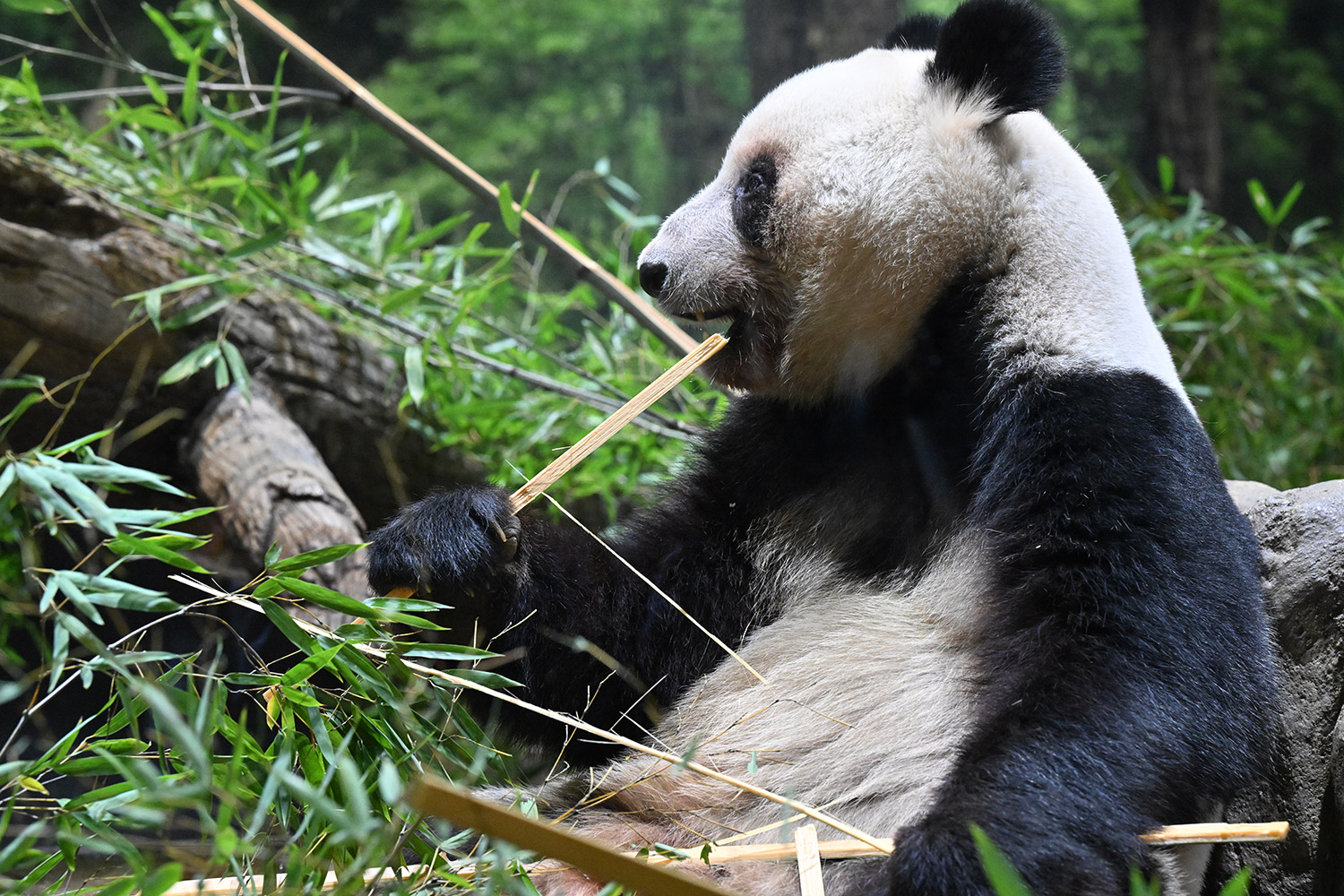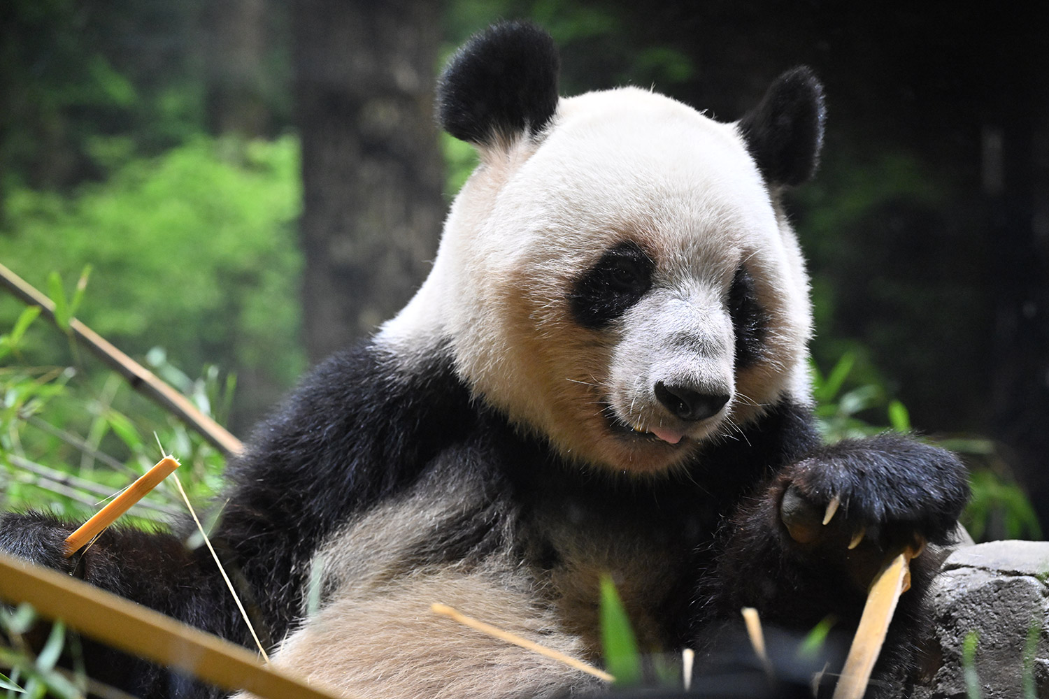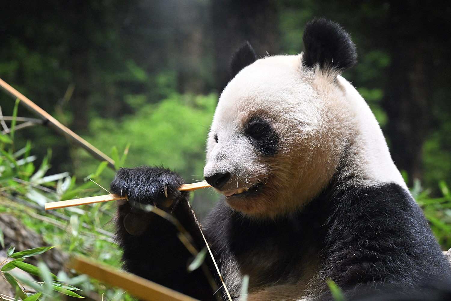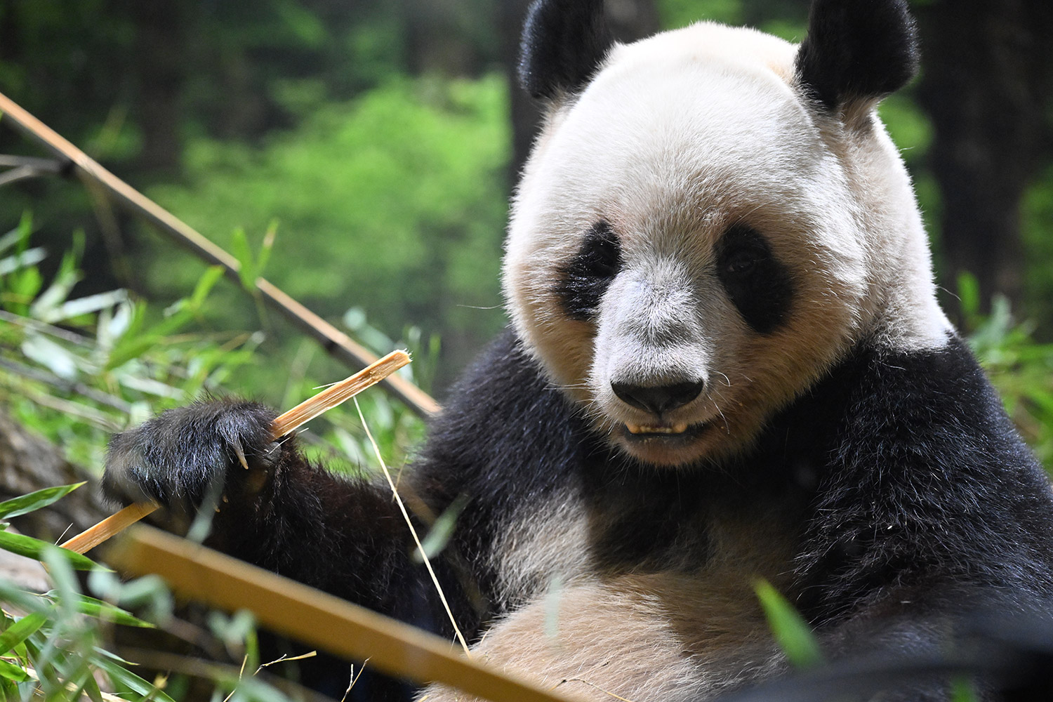 シャオくんもレイちゃんもお庭で食べるおやつを楽しみ今日を元気に暮らしていますね🤗❤️ シャオくんウヒヒと不思議な微笑み、そんなに人参おいしかったの〜?🤣🥕 レイちゃんモックでごろごろ今日は逆さに今日は😁櫓の下で大ジャーンプ⛷️そうなの竹はお部屋で食べるのね😋🎋 見る側の心情は段々とお写真が涙でにじみそうになっていますが😢、ふたりの表情や仕草が面白くてやはり笑顔になります😊💕 連日早朝から並ばれての撮影をありがとうございます🙏