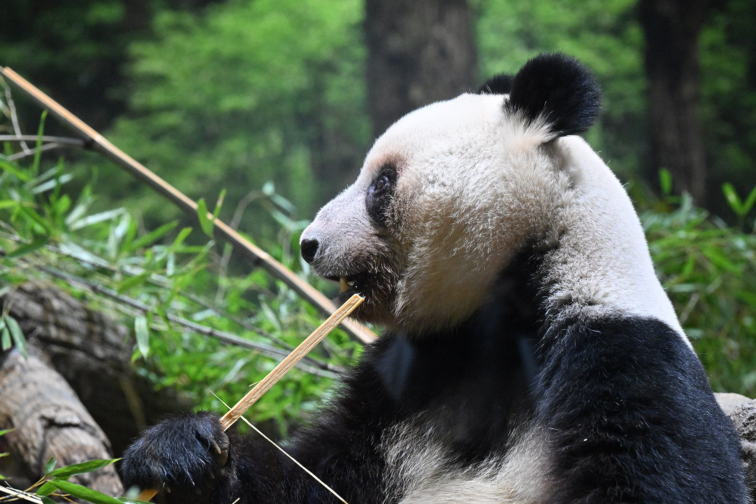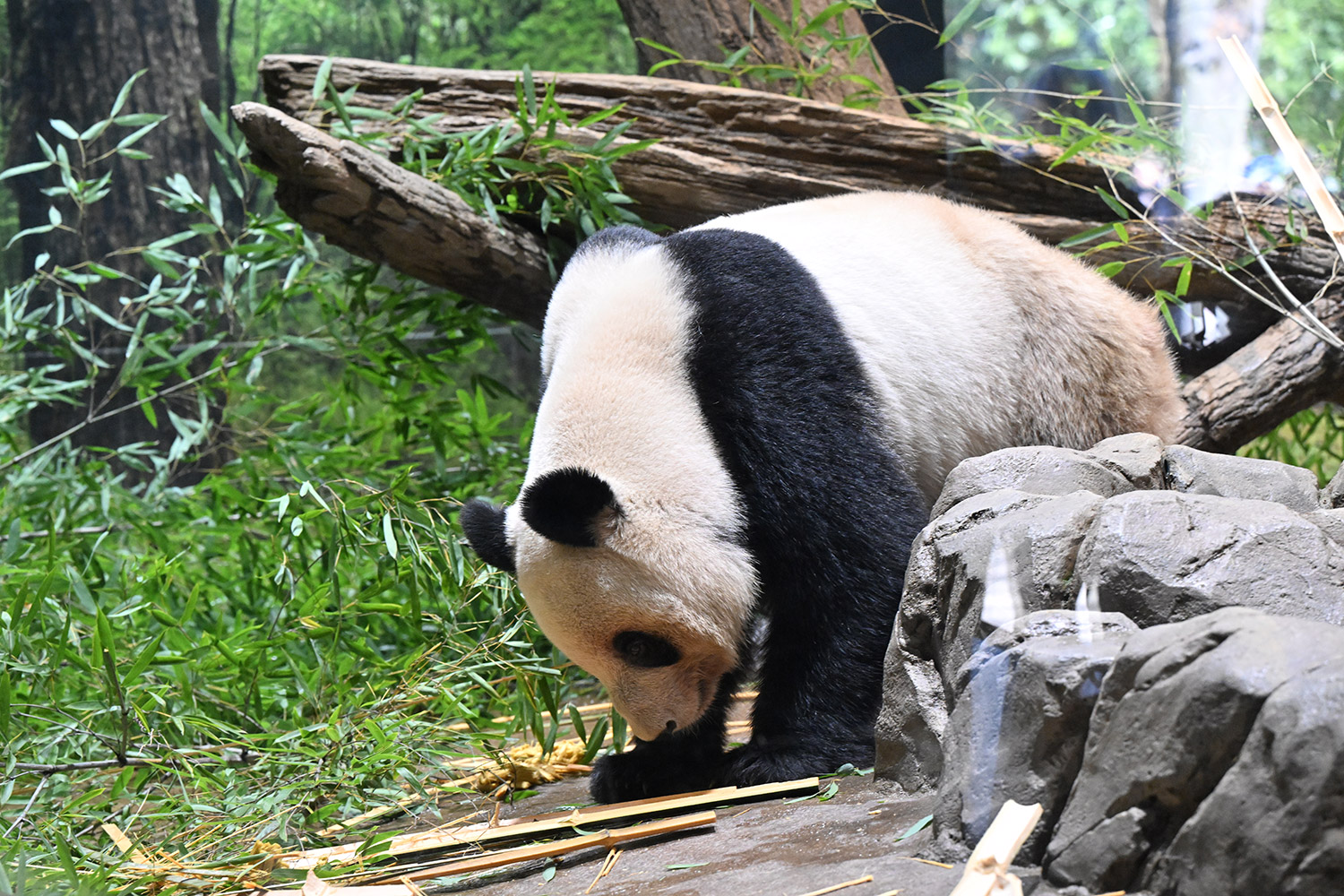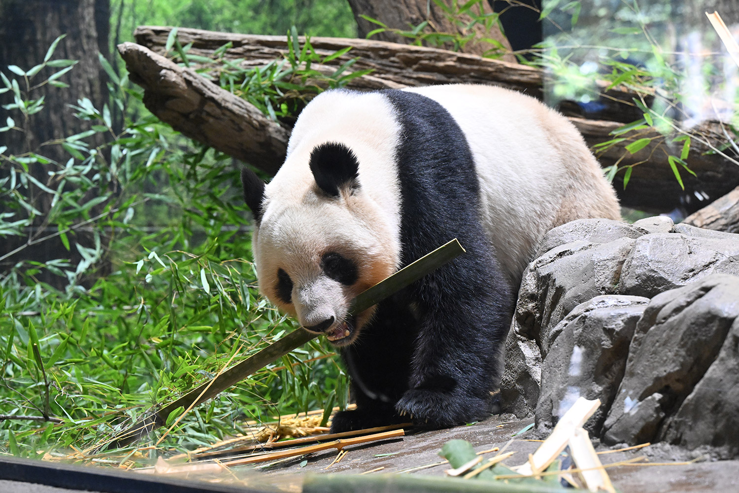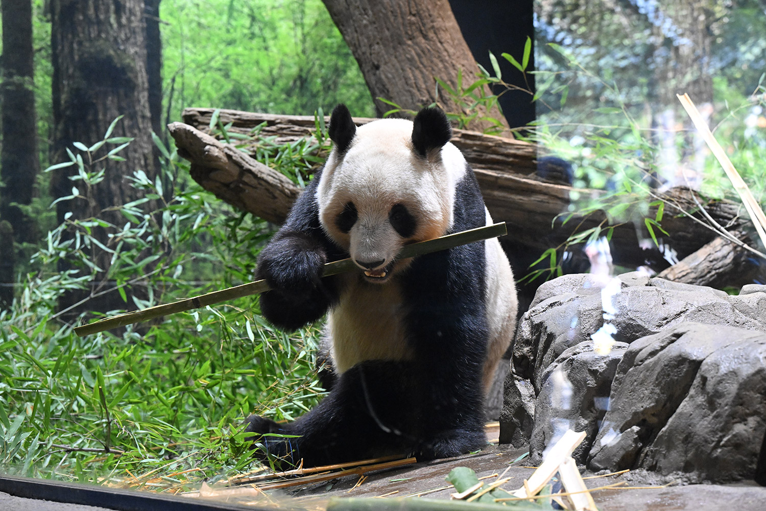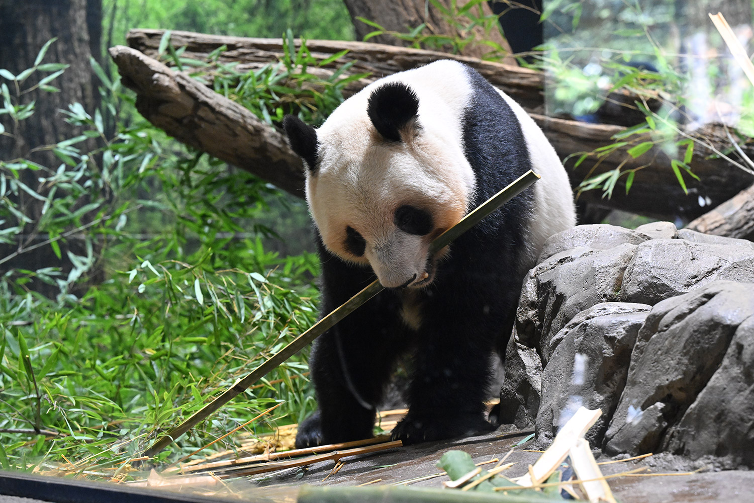 シャオくんもレイちゃんもお庭で食べるおやつを楽しみ今日を元気に暮らしていますね🤗❤️ シャオくんウヒヒと不思議な微笑み、そんなに人参おいしかったの〜?🤣🥕 レイちゃんモックでごろごろ今日は逆さに今日は😁櫓の下で大ジャーンプ⛷️そうなの竹はお部屋で食べるのね😋🎋 見る側の心情は段々とお写真が涙でにじみそうになっていますが😢、ふたりの表情や仕草が面白くてやはり笑顔になります😊💕 連日早朝から並ばれての撮影をありがとうございます🙏