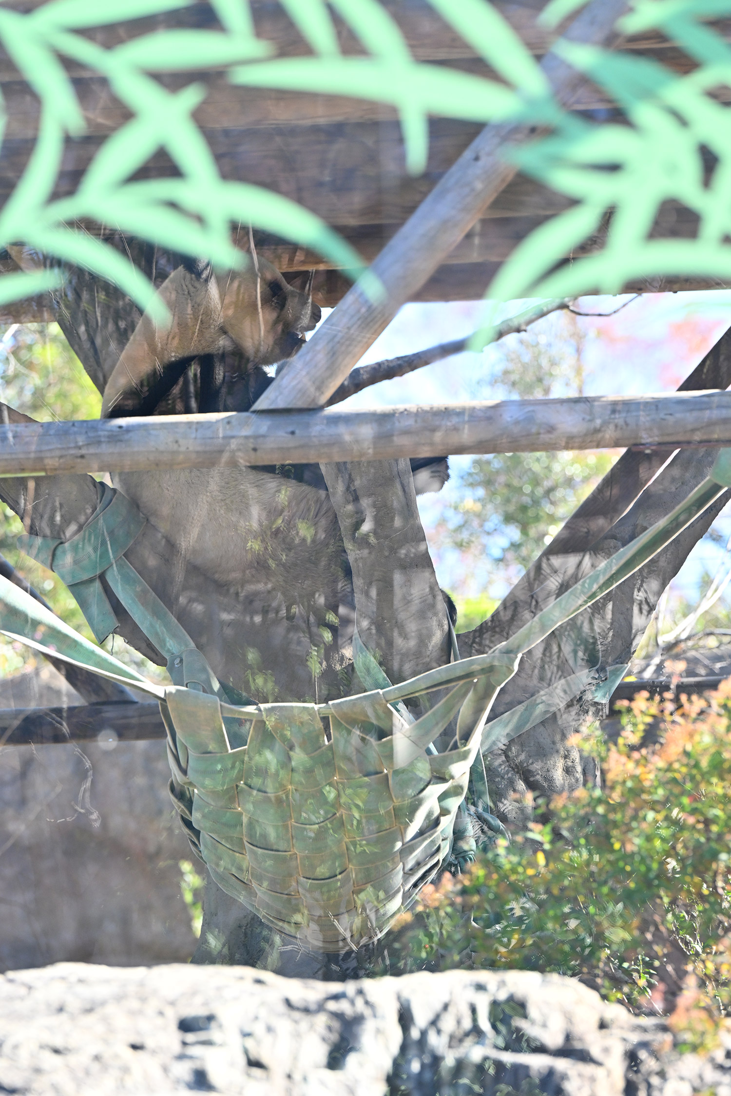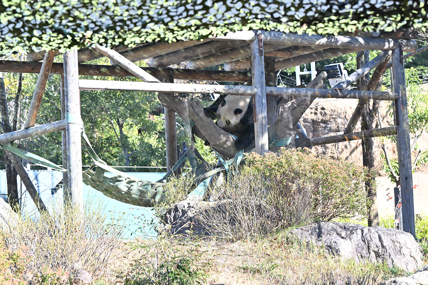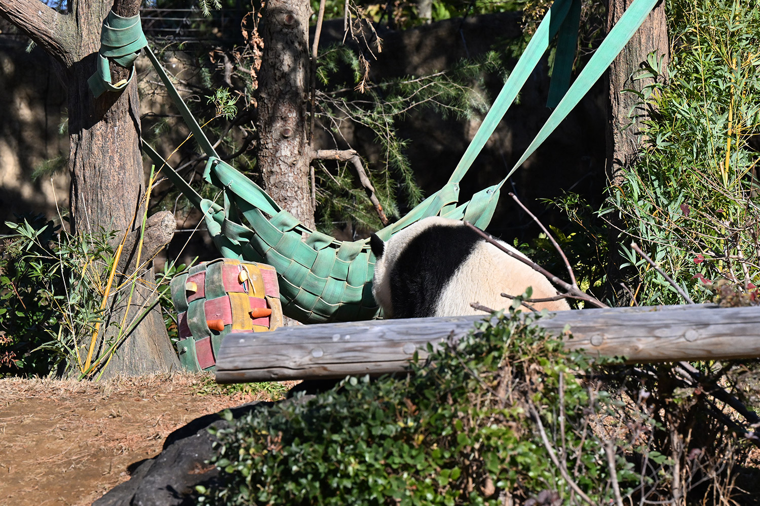 シャオシャオ岩の上でのんびりしてて気持ちよさそうです。レイレイ、ハンモックでごろごろ楽しそうですね。横顔が笑っててかわいい!寒いなか本当にありがとうございます。