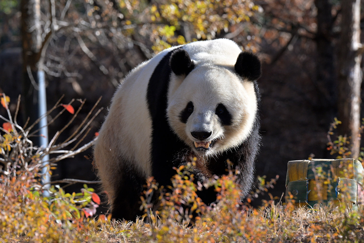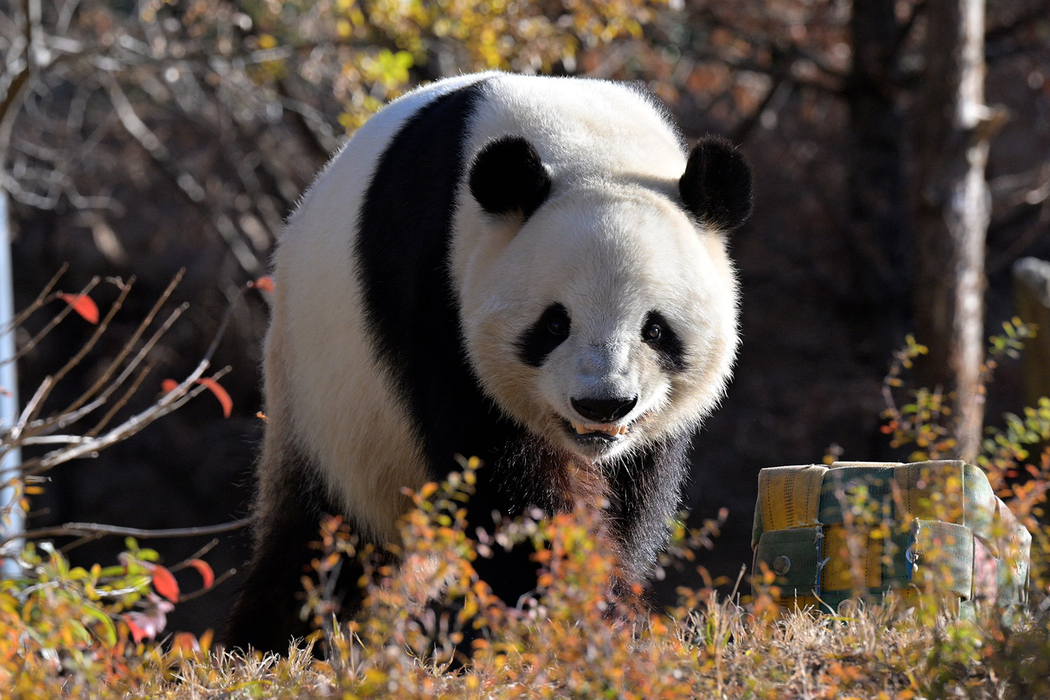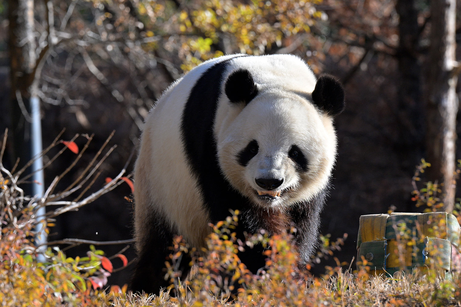 抜けるようなどこまでも澄み切った青空にシャオくん、なんて素敵なんでしょう‼️青い空と木々の紅葉と白黒のパンダさんが映えるこの光景をいつまでも見ていたいです☺️