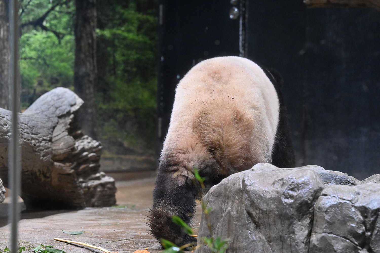 今日のパンダは14:30からです。雨の一日でしたがパンダたちはお庭とお部屋を出たり入ったりしていました。