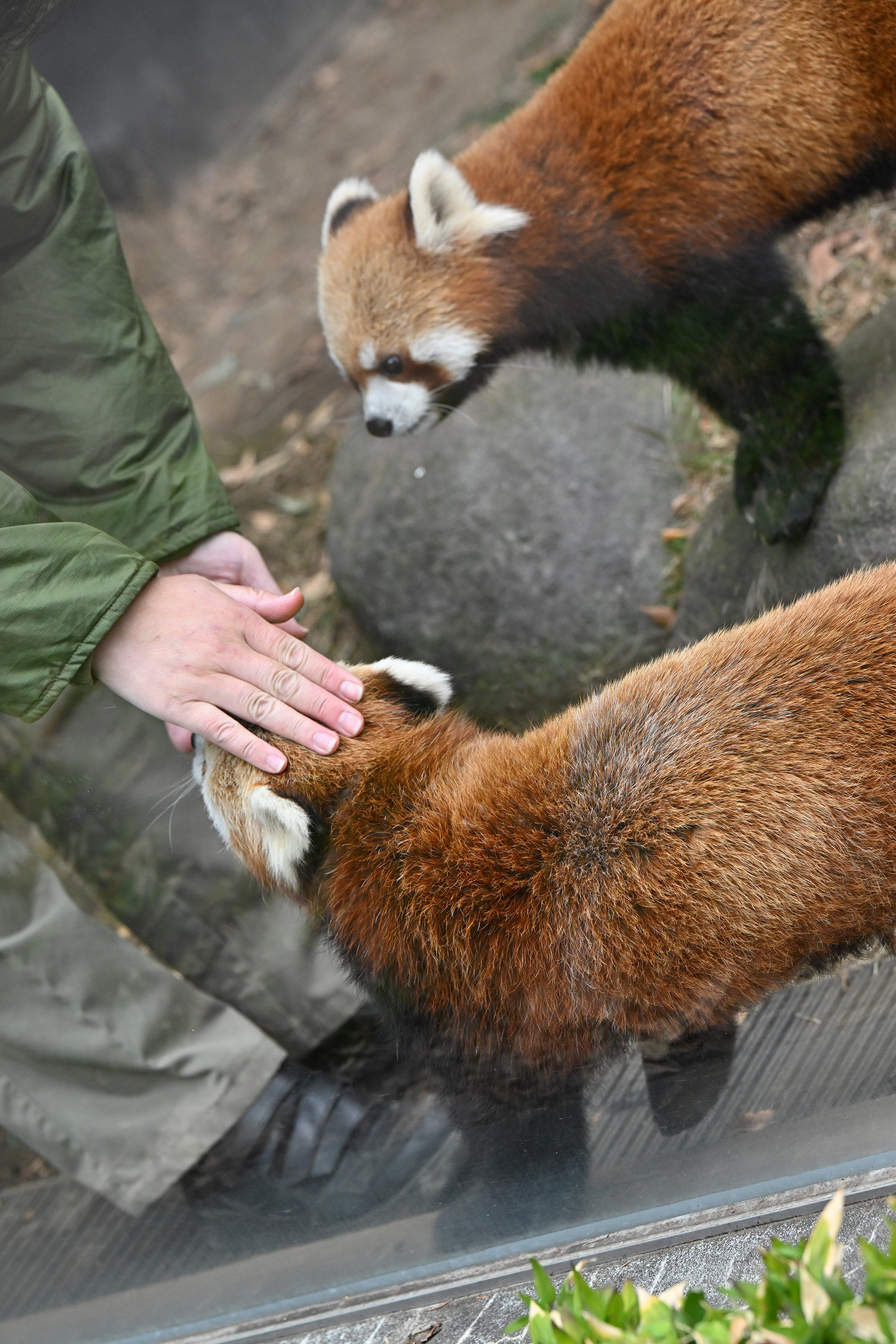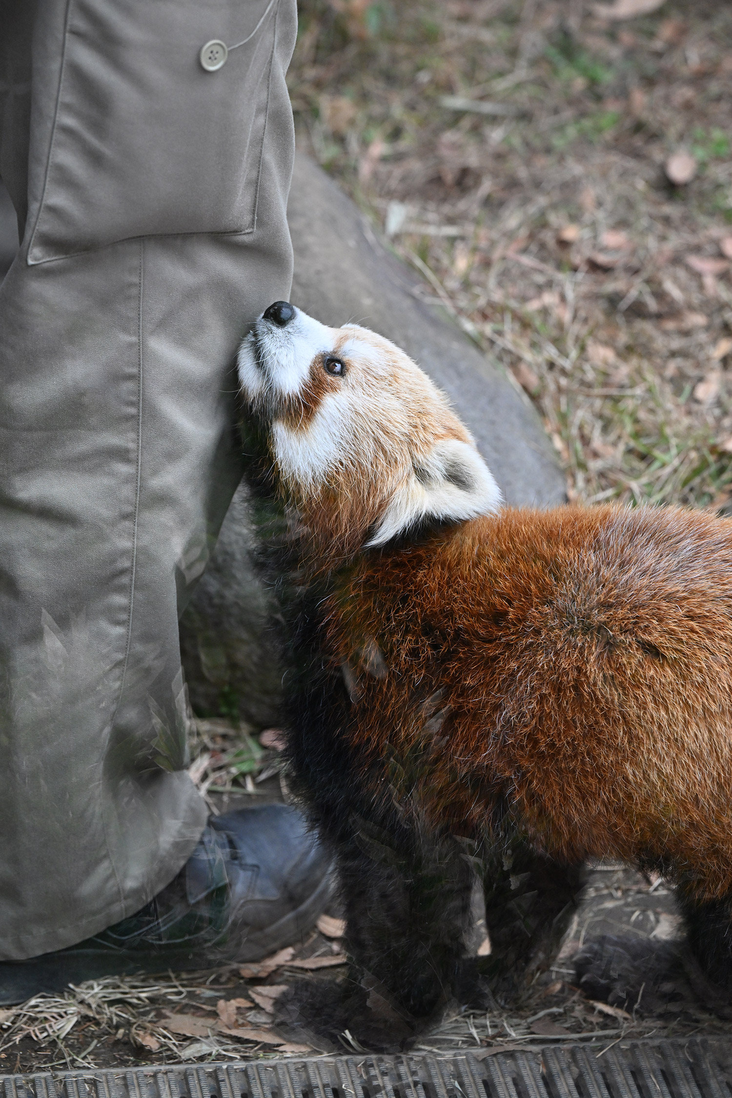 飼育員さんに擦り寄って、おねだりするレッサーパンダちゃん達、可愛いですね😍