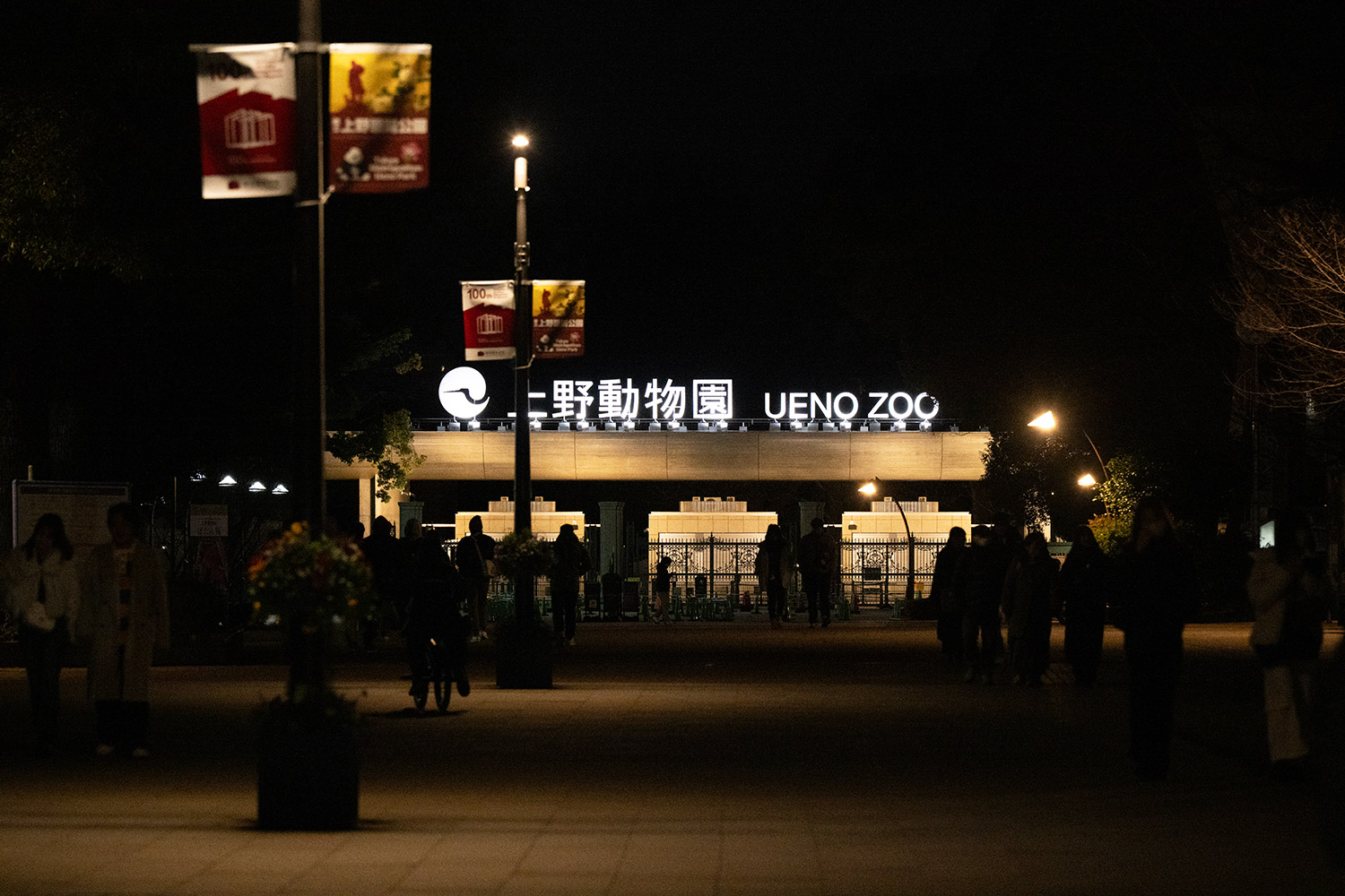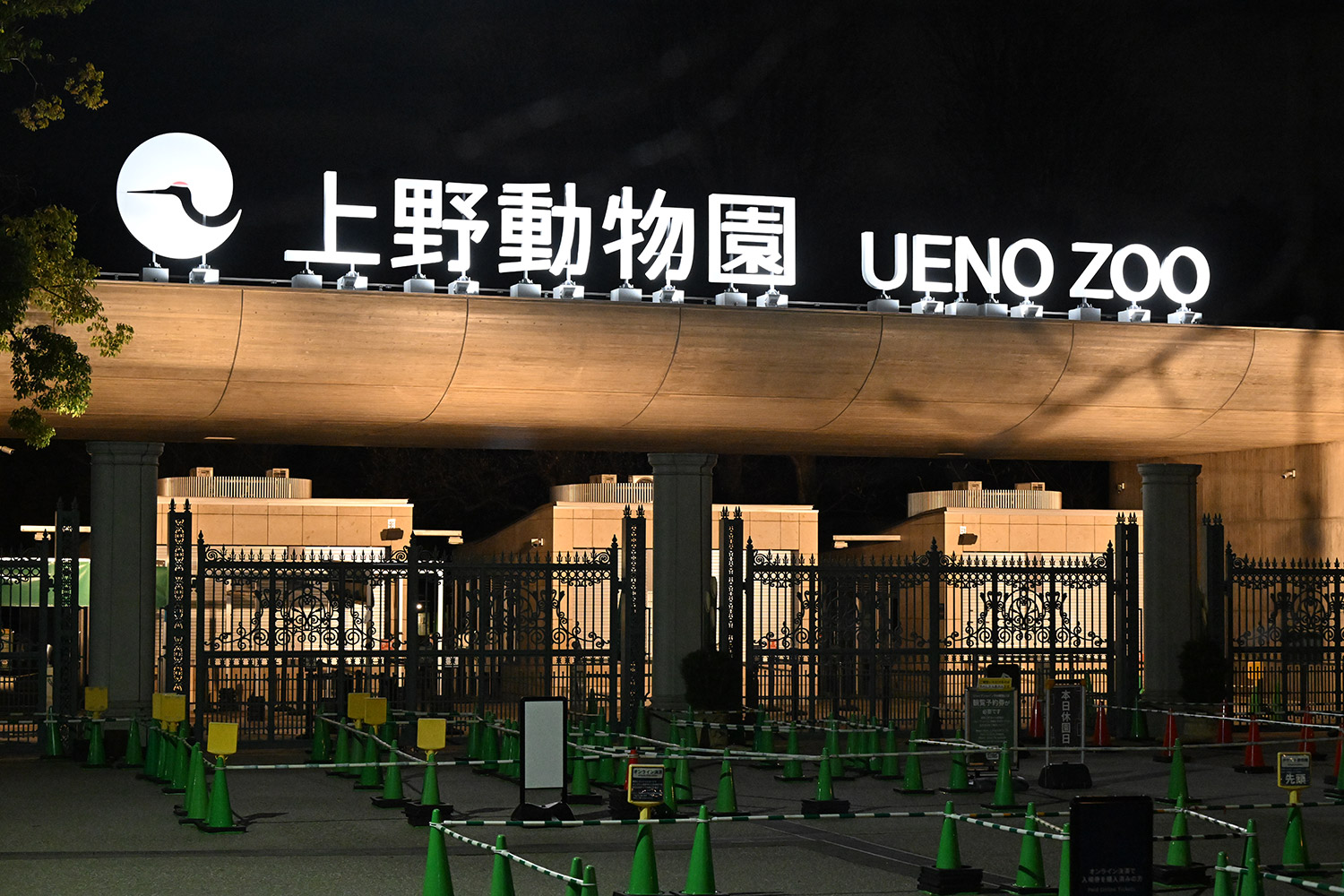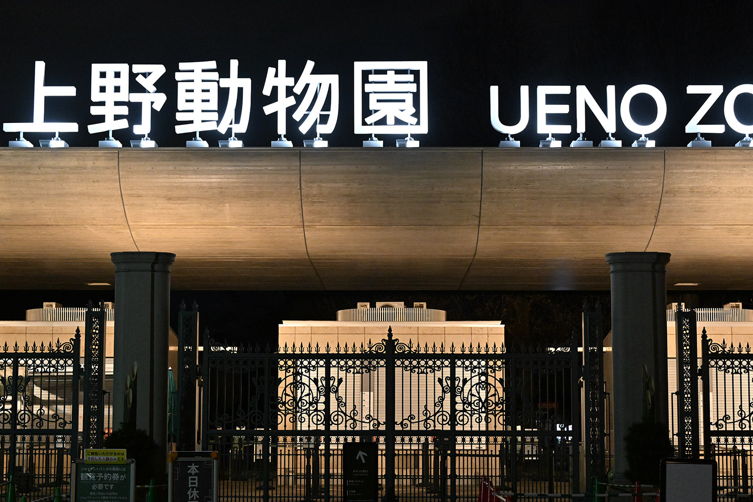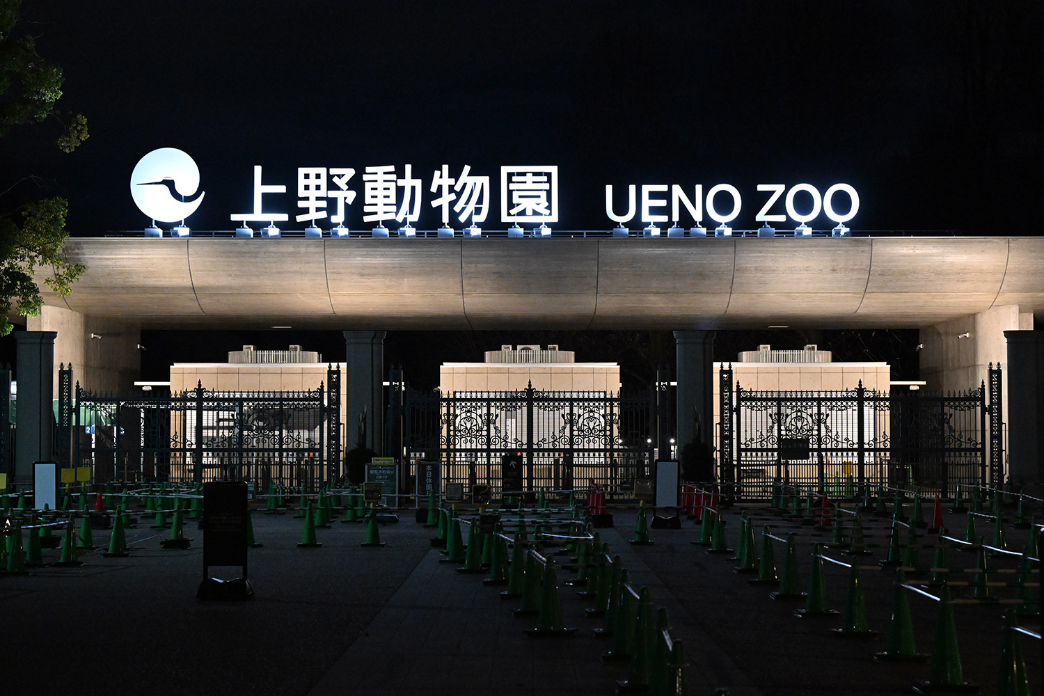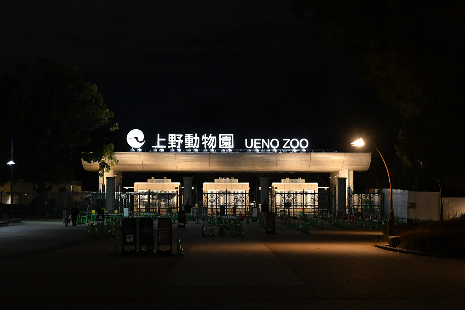 元日の夜の正門。白く輝く上野動物園の文字✨上野の新たな一年、新たな歴史の始まりを想い気持ちが引き締まります!