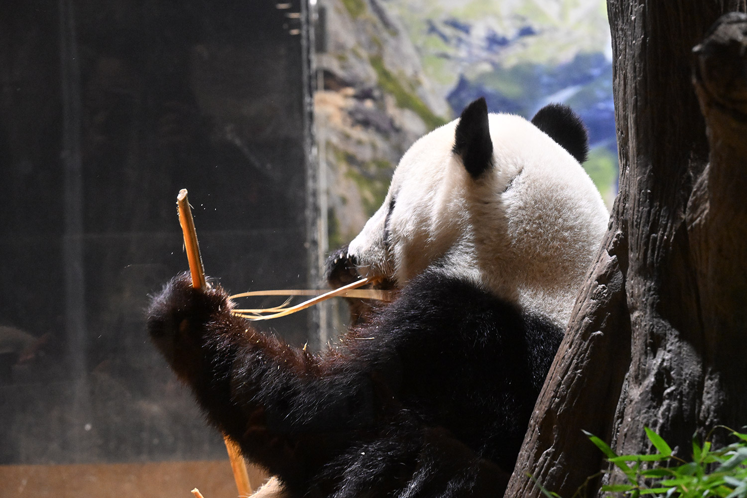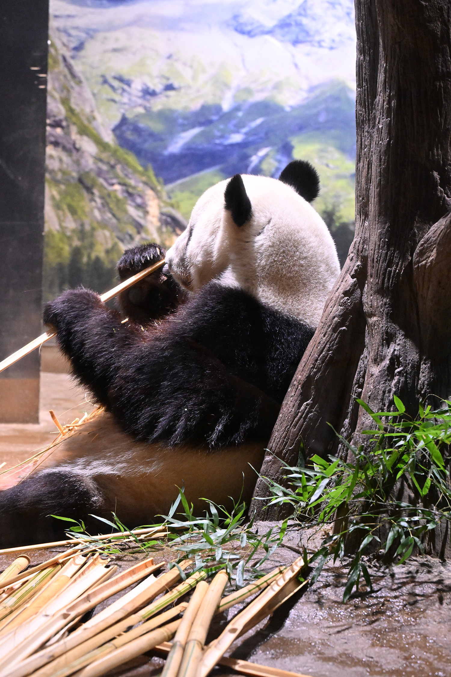 シャオレイ共に恥ずかしかったのかな❓️お顔をきちんと見せてくれませんでしたね🙄でも食べている様子にちょっとホッコリ出来ました😉