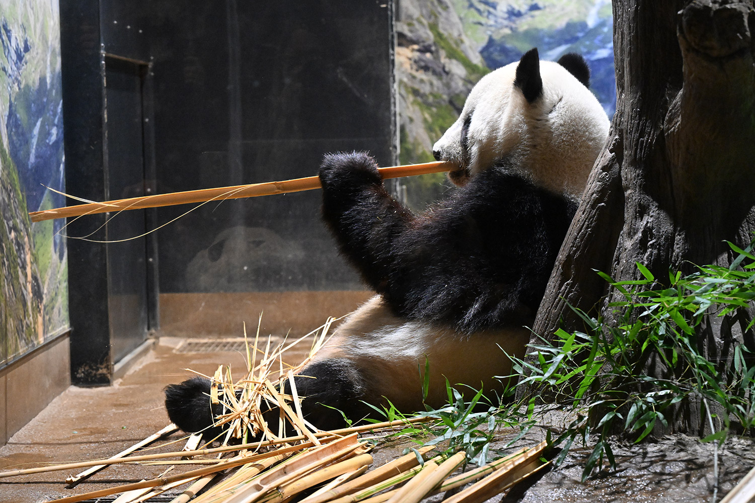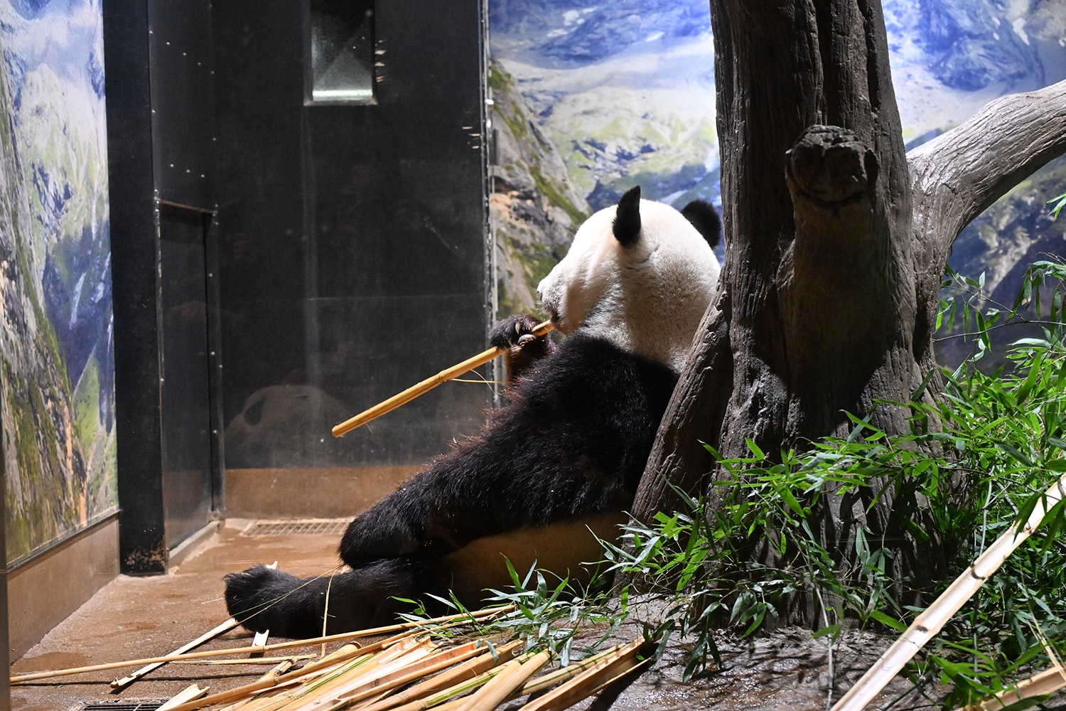 上野の記録によると、シンシンとの交配履歴は、年にすると四年だけ。とても少ない。リーリーがここ数ヶ月、とてもイキイキしているのは、繁殖チームに入ったことも、彼の自信に繋がったのかなと推測。