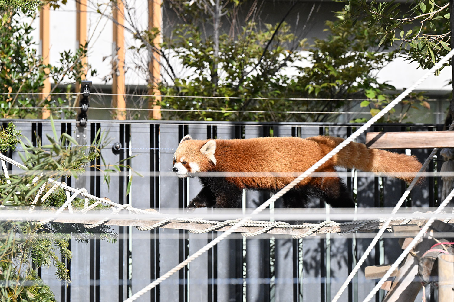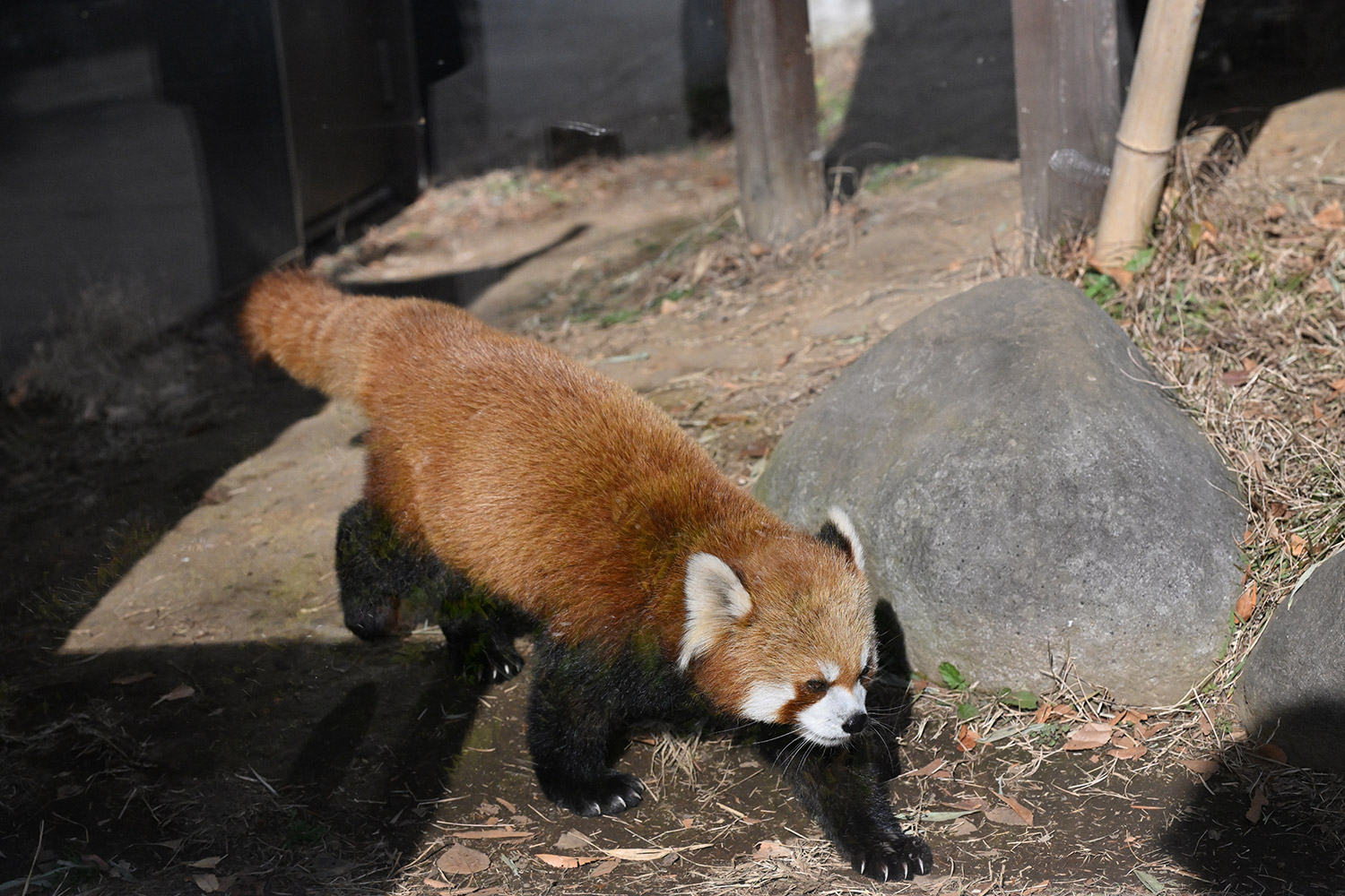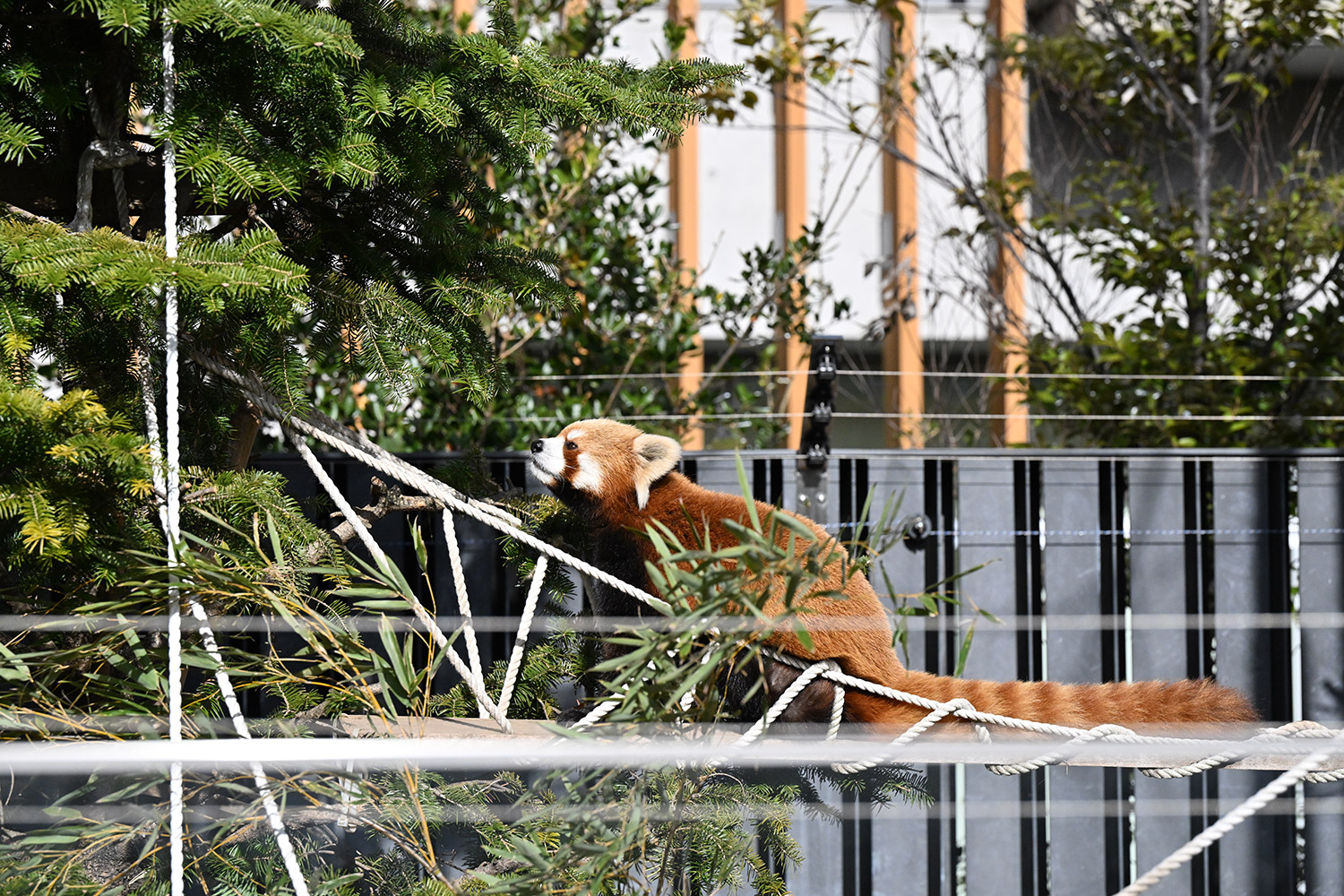 レッサーパンダ 初めて見た時、思わずかわい~い!って言ってたのを思い出しました。昨年園を訪れた時、帰り足で久しぶりに見いってしまいました。長く太い尾っぽを上げながら?小屋から往き来してたなあ。丁度そこへ小学生達が来て、かわいいー!って叫んでいました。