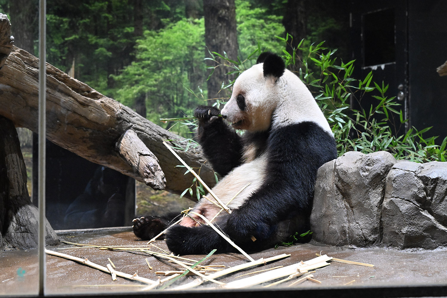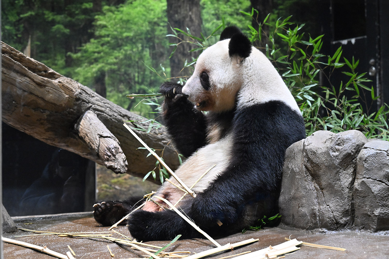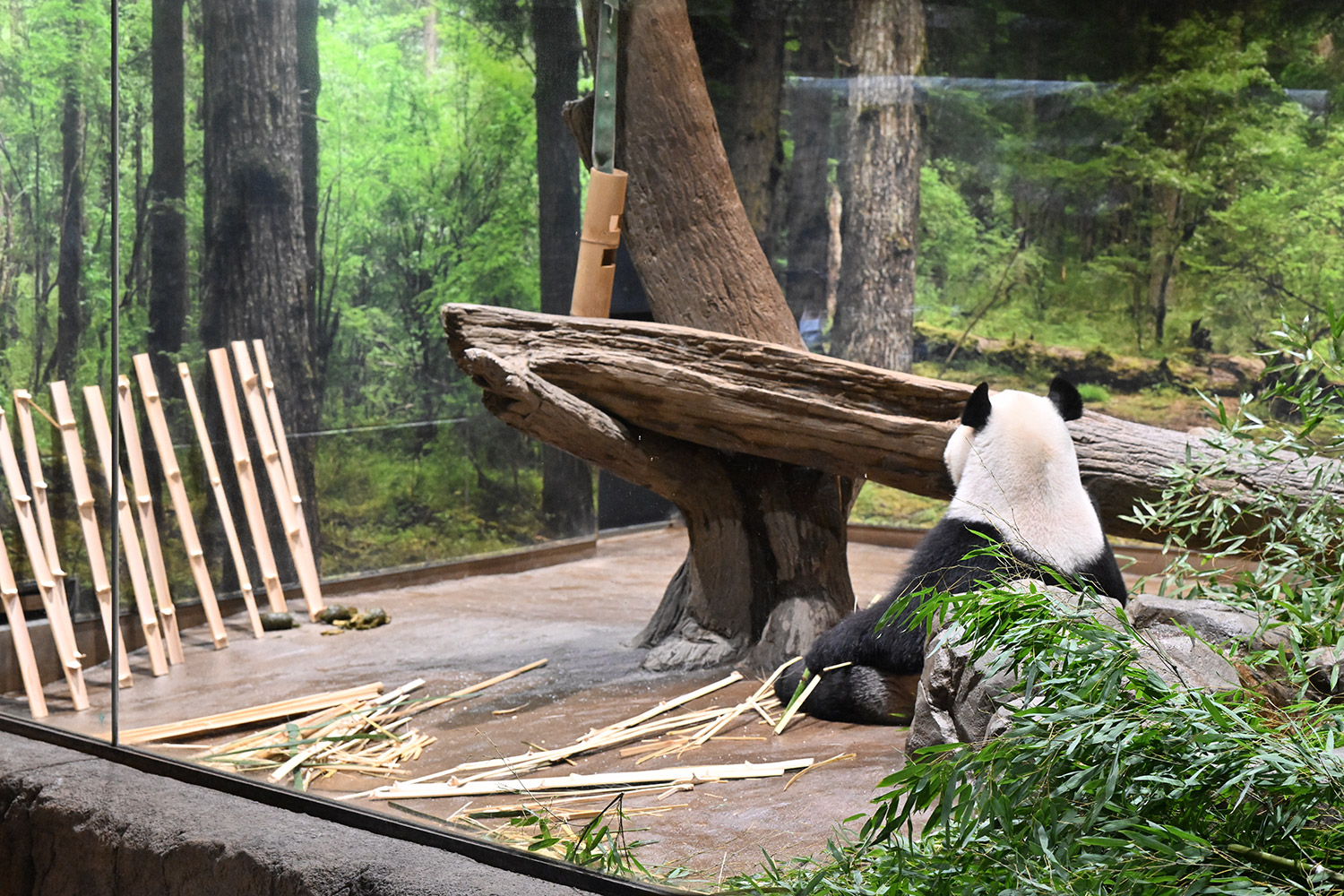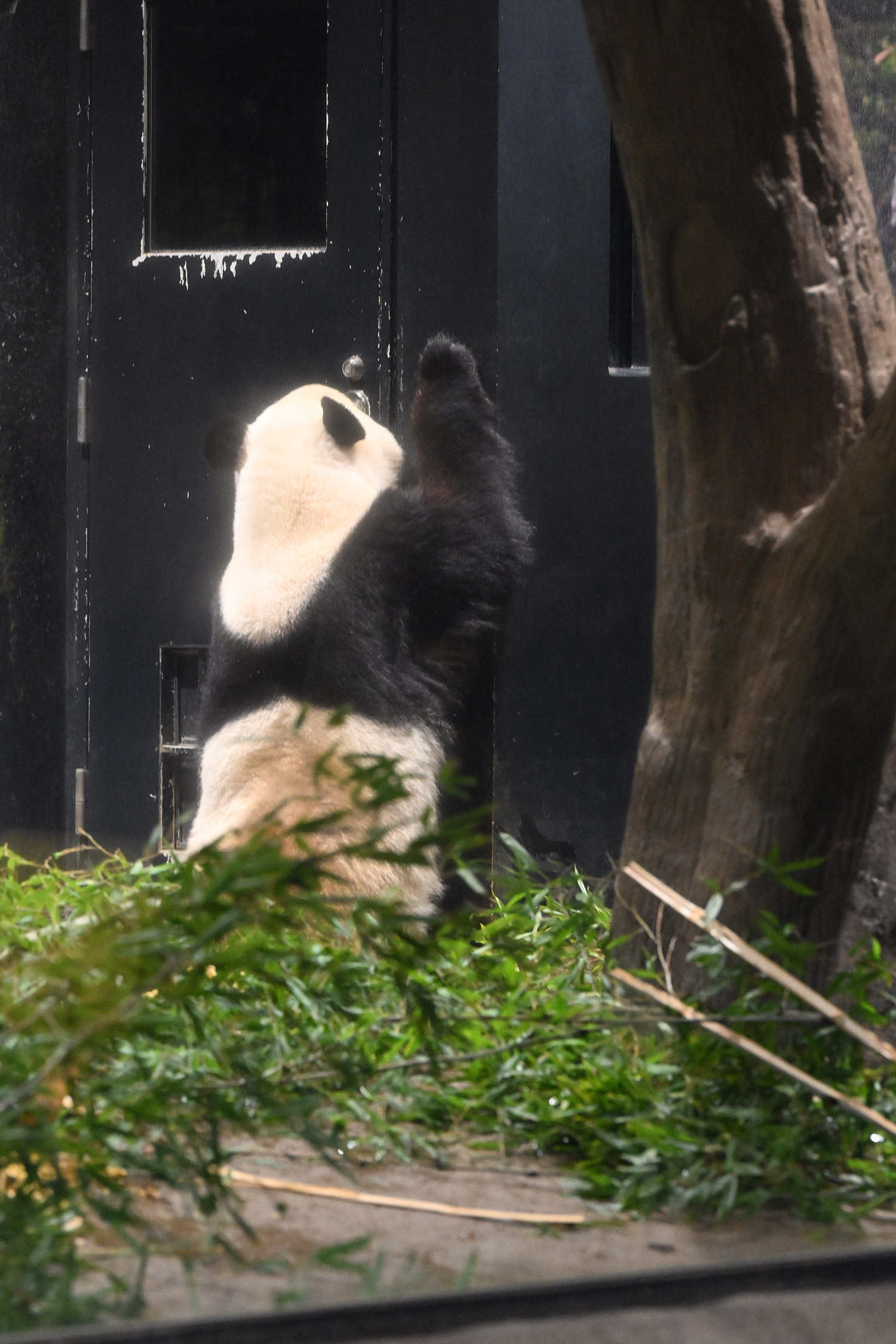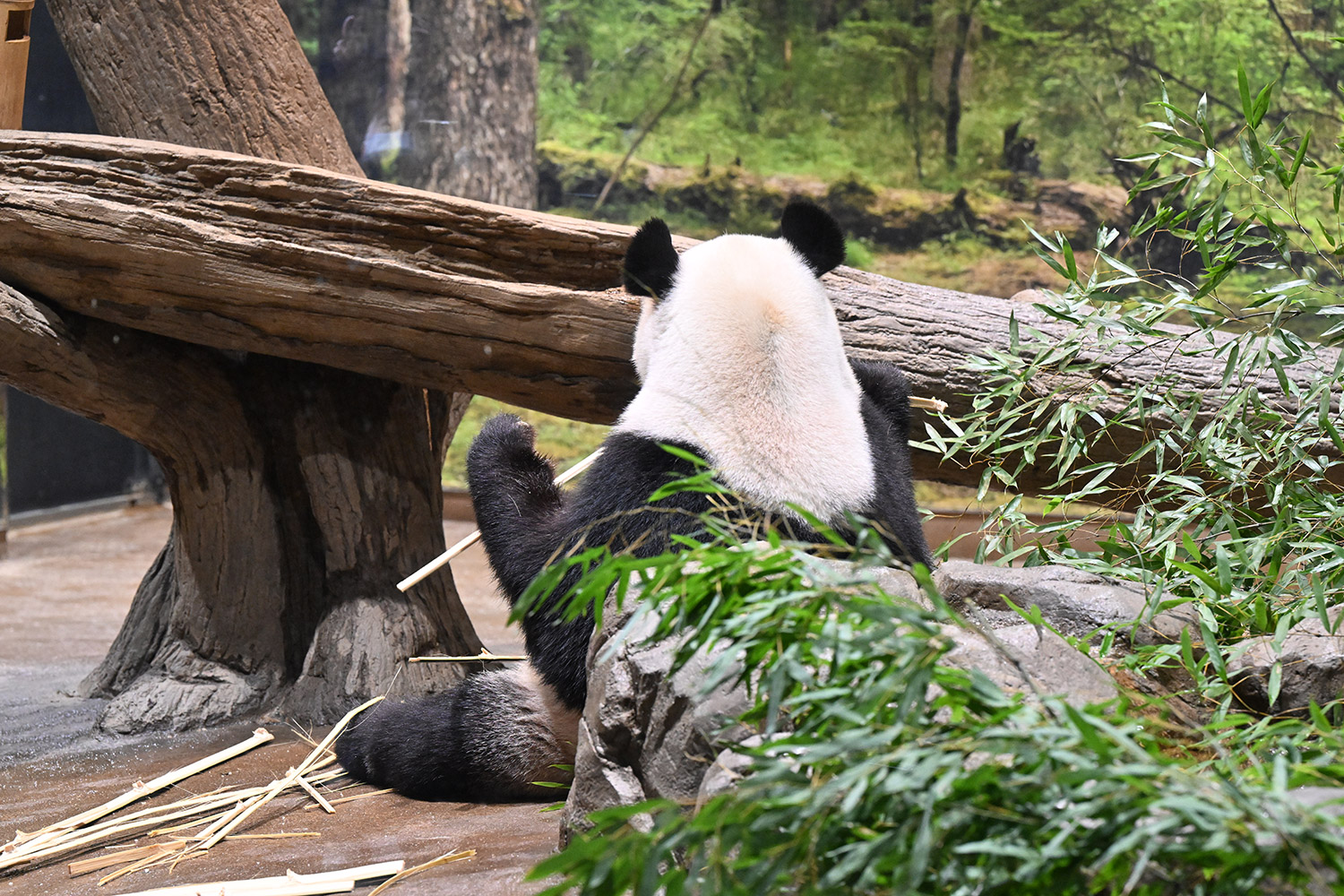 12時でも活発なシャオ君レイちゃんですね。扉の隙間から何かおねだりしたりお水飲んだり嬉しい姿です。壁や床に綺麗に並んだ竹も覚えておきます。私の最後の観覧は15日でレイちゃんはスヤスヤ後ろ向きシャオ君はガラス前で竹パクパクでした。待機から観覧までスムーズで短い時間ですが沢山ありがとうを伝えました。あの日お昼すぎ