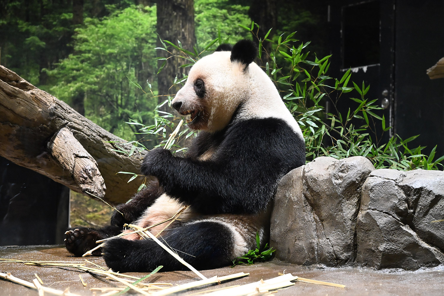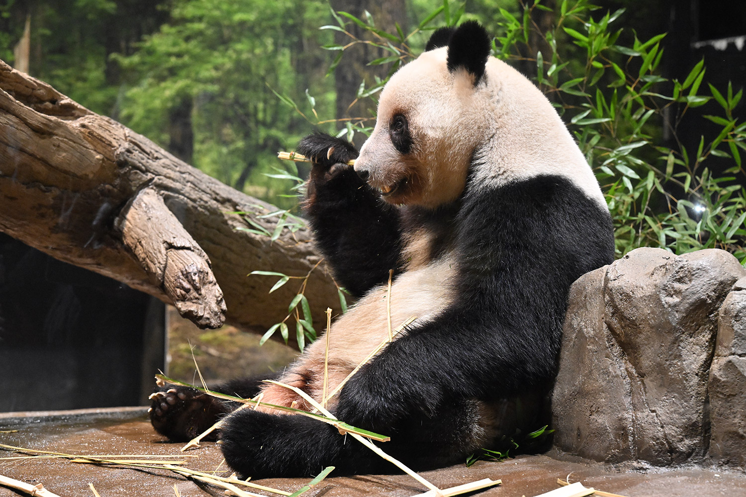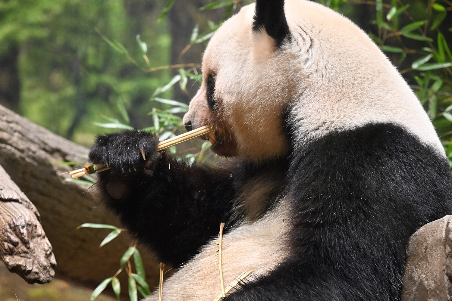 レイちゃんのお食事横の姿。日本の笹、美味しいですか?味わって食べているのかな?うなじ(うなじじゃないけど)の後ろ姿、きれいです!