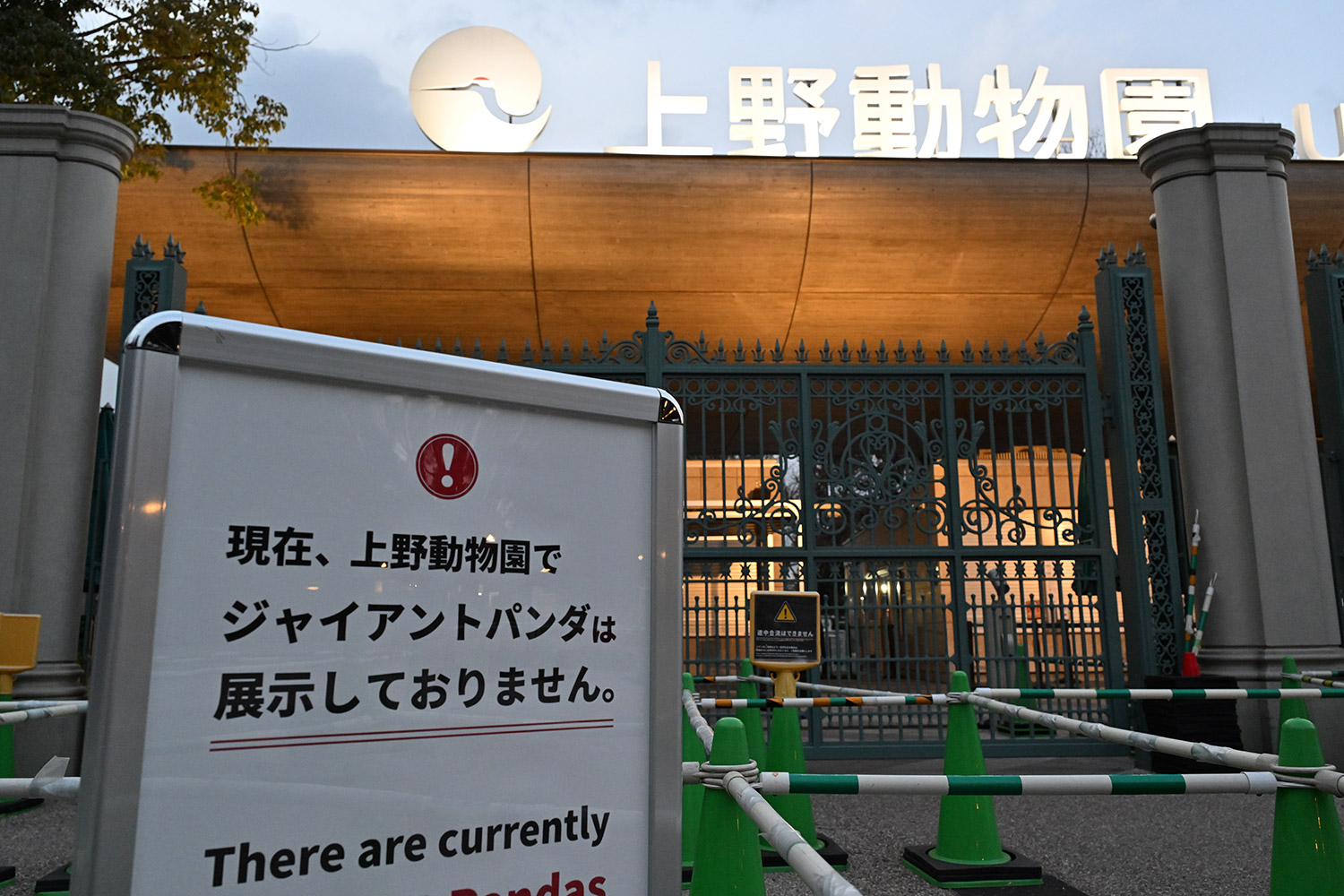 夕暮れ時の正門はひっそりとして静けさが漂いますね!!パンダの展示はしていません!!看板にどことなく寂しさを感じます🥹松坂屋さん行きました☺️💞