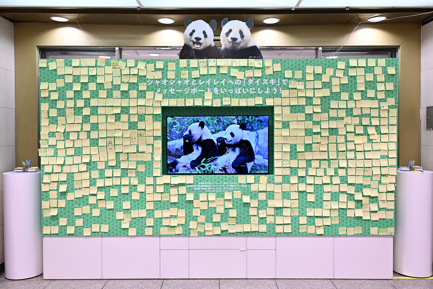 シャオレイへファンの皆様から想い溢れるメッセージ💕連絡通路の窓には愛おしいふたご…💚🐼🐼💛上野の街を見守ってくれていますね💞