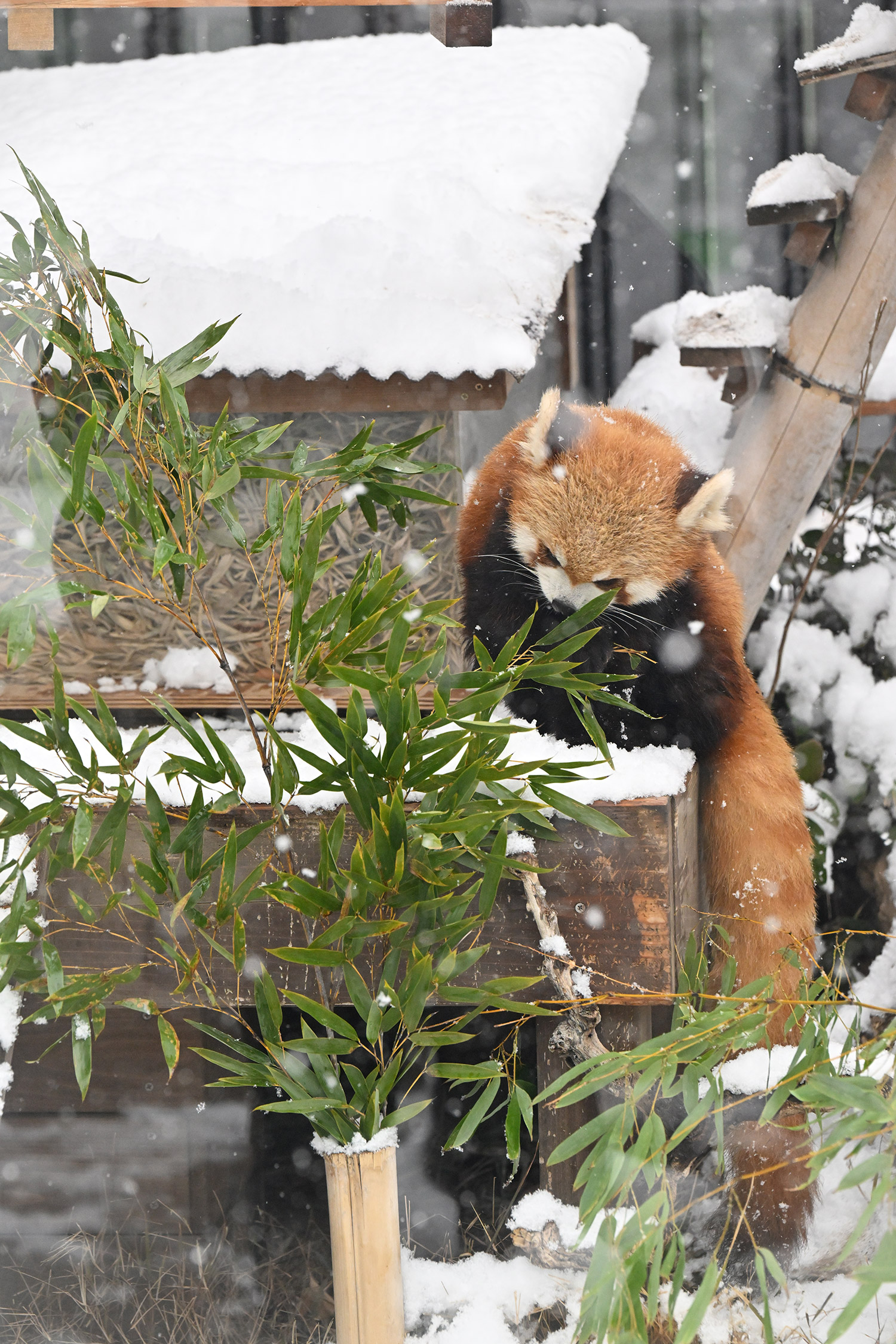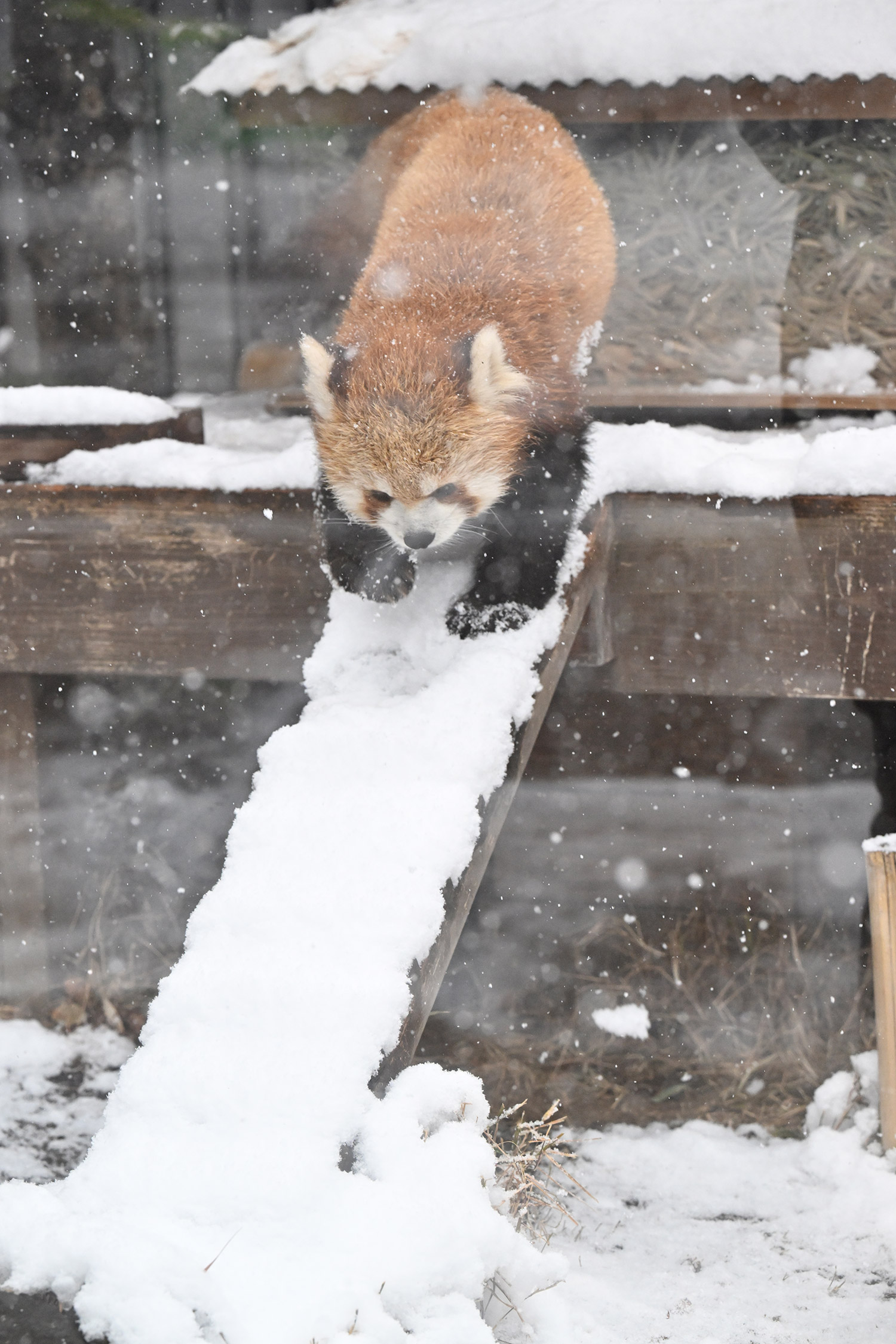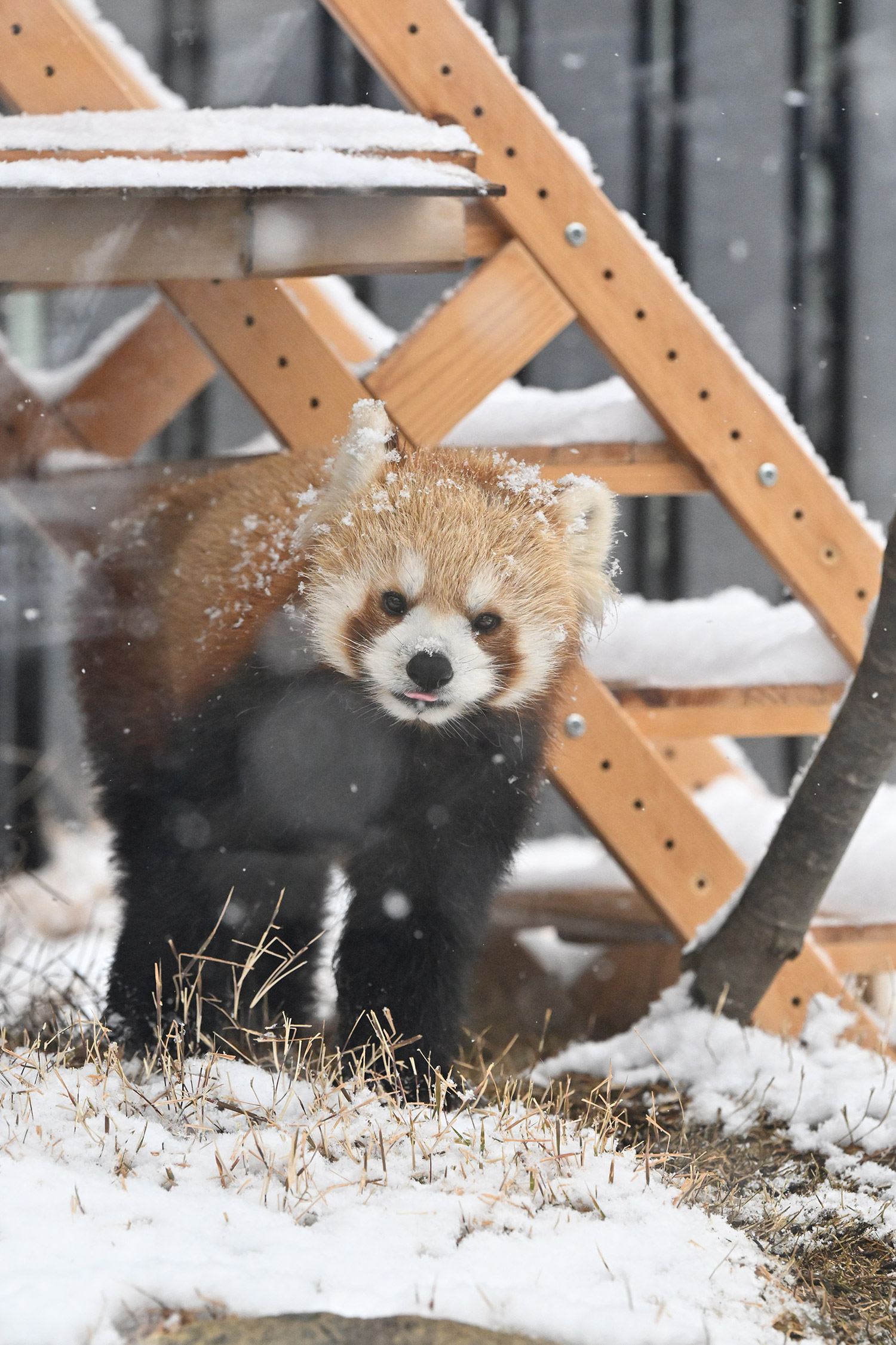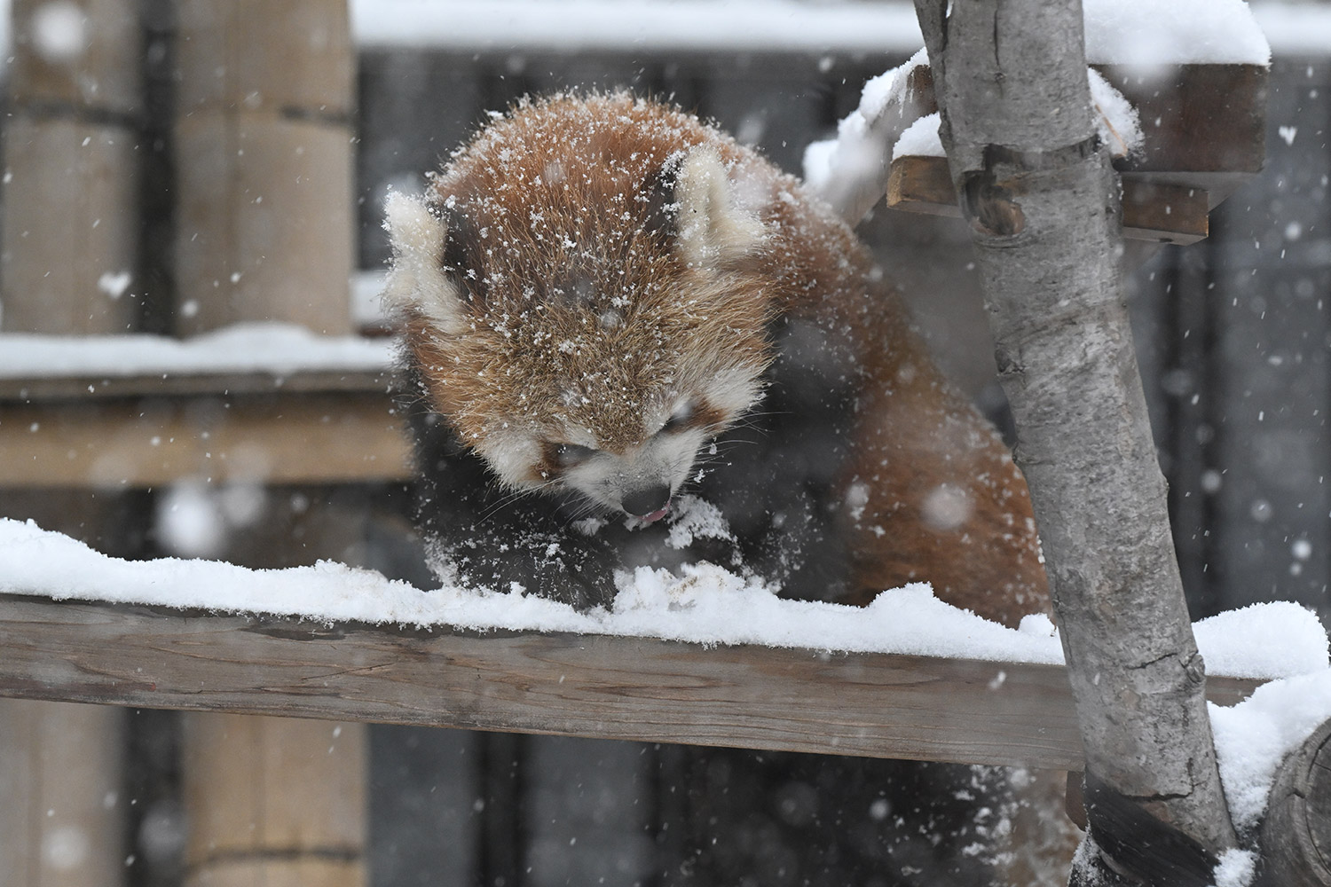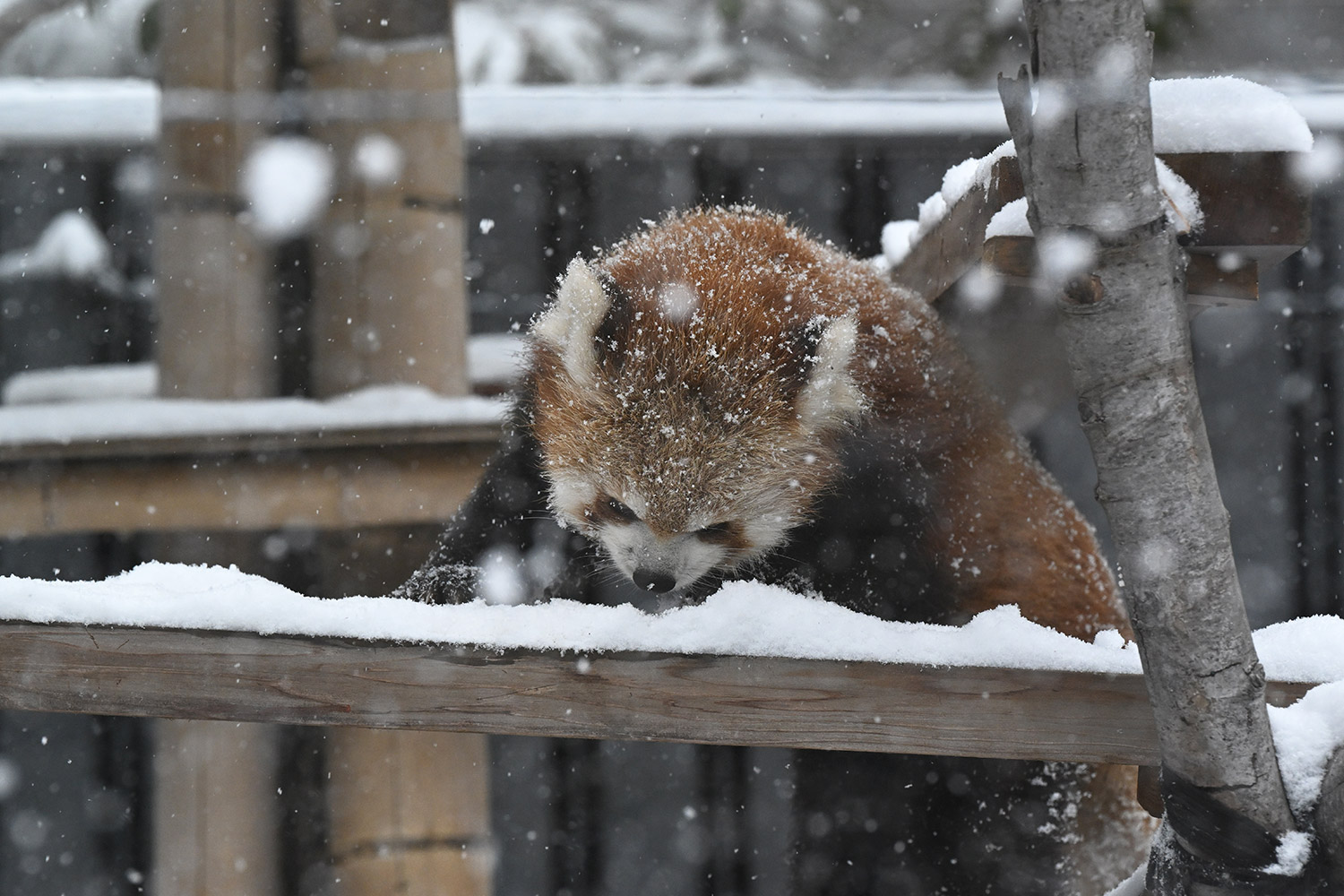 さすがレッサーパンダの生息地に近い環境。雪が似合います。お顔がハッキリくっきり!雪のなか、撮影お疲れさま。交通機関は大丈夫でしたか。