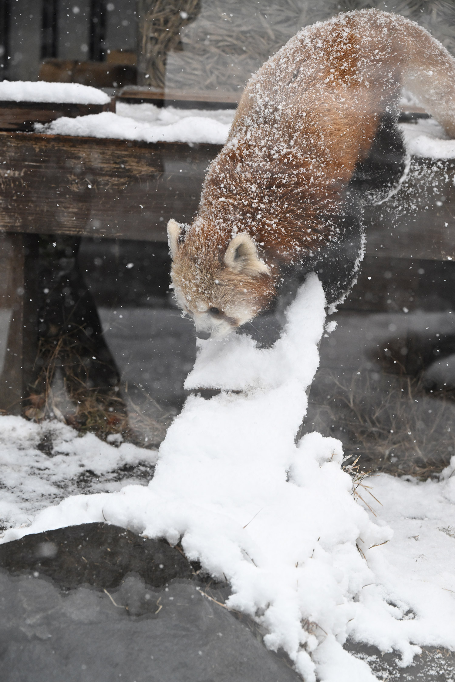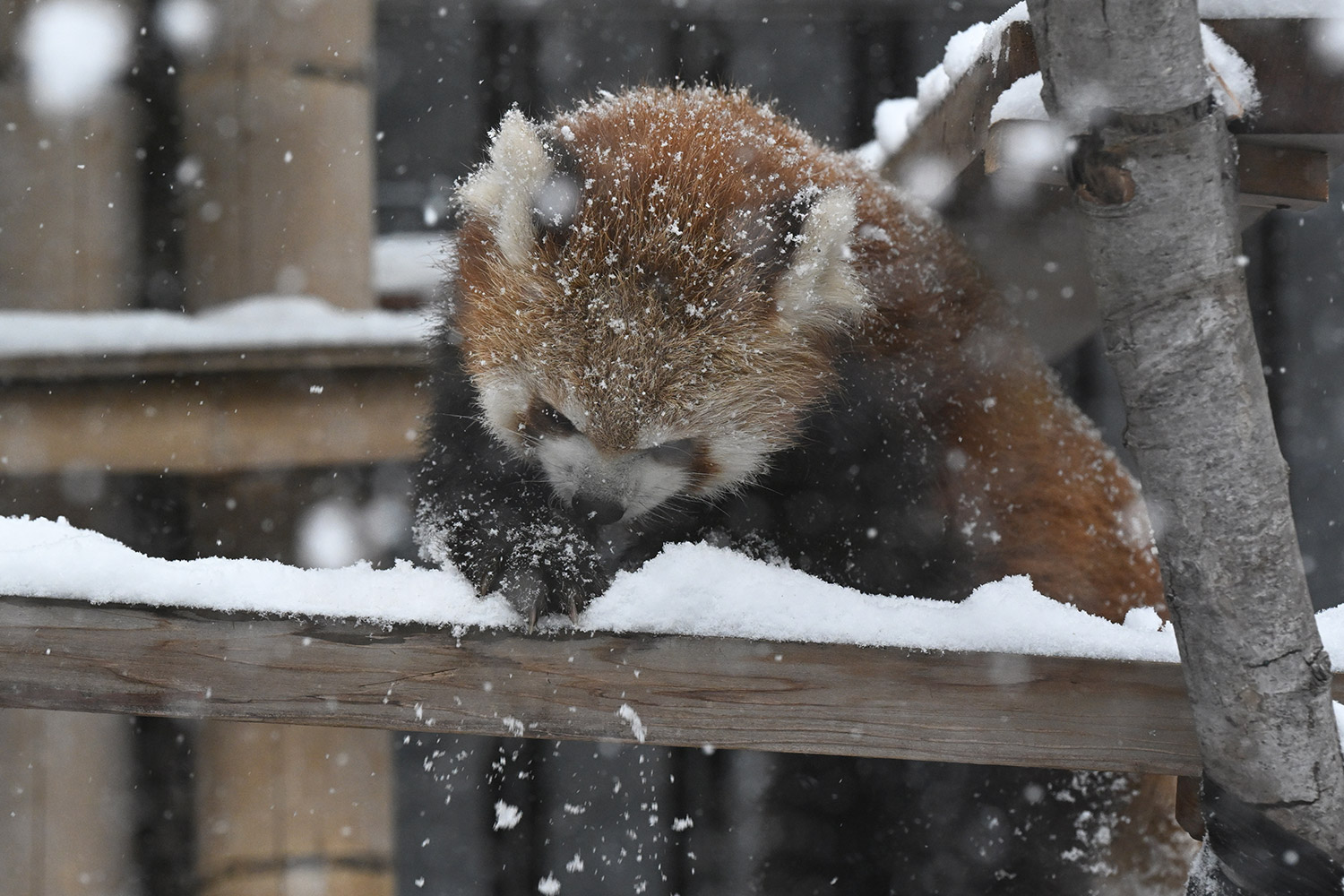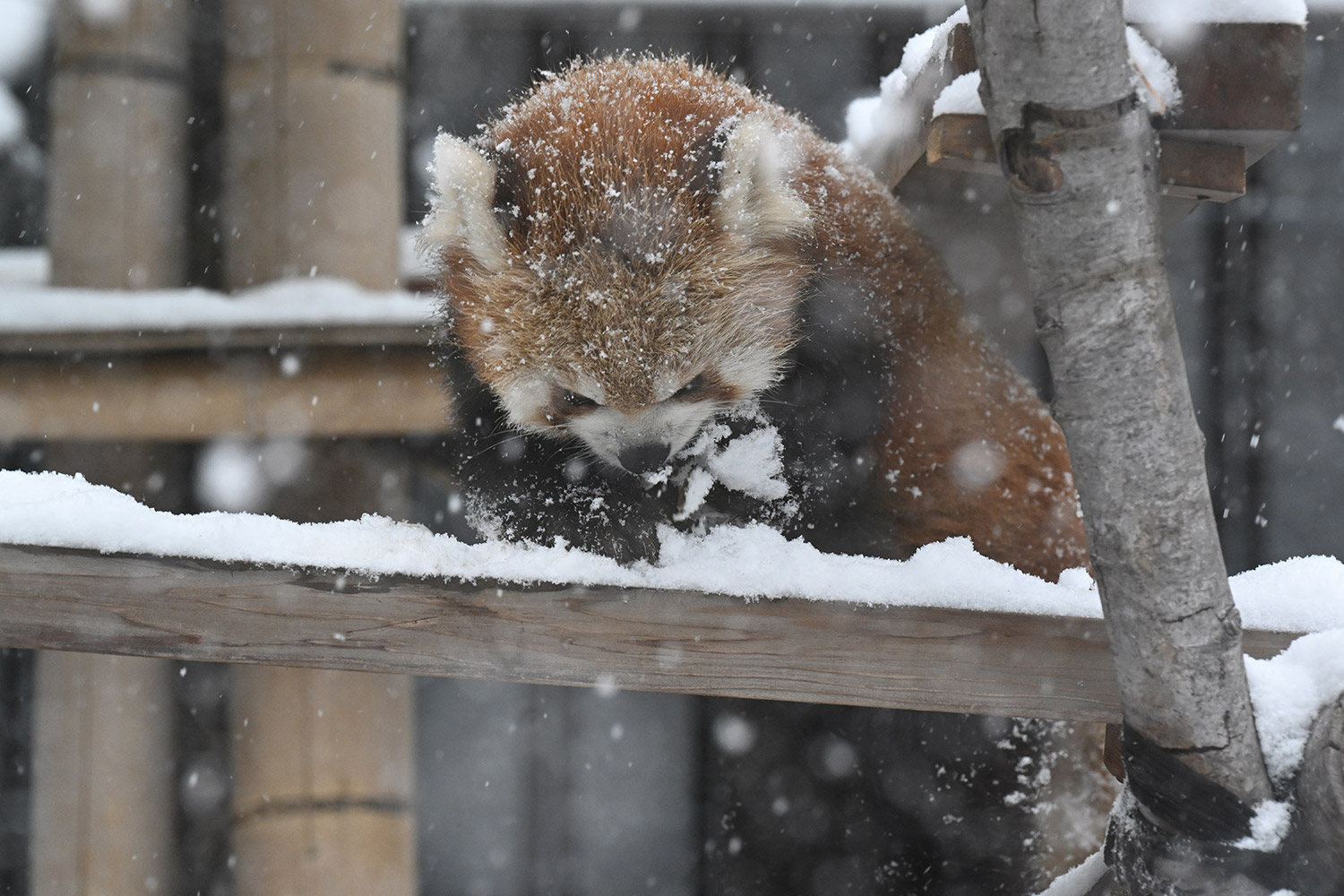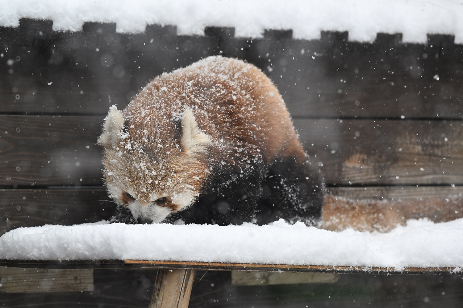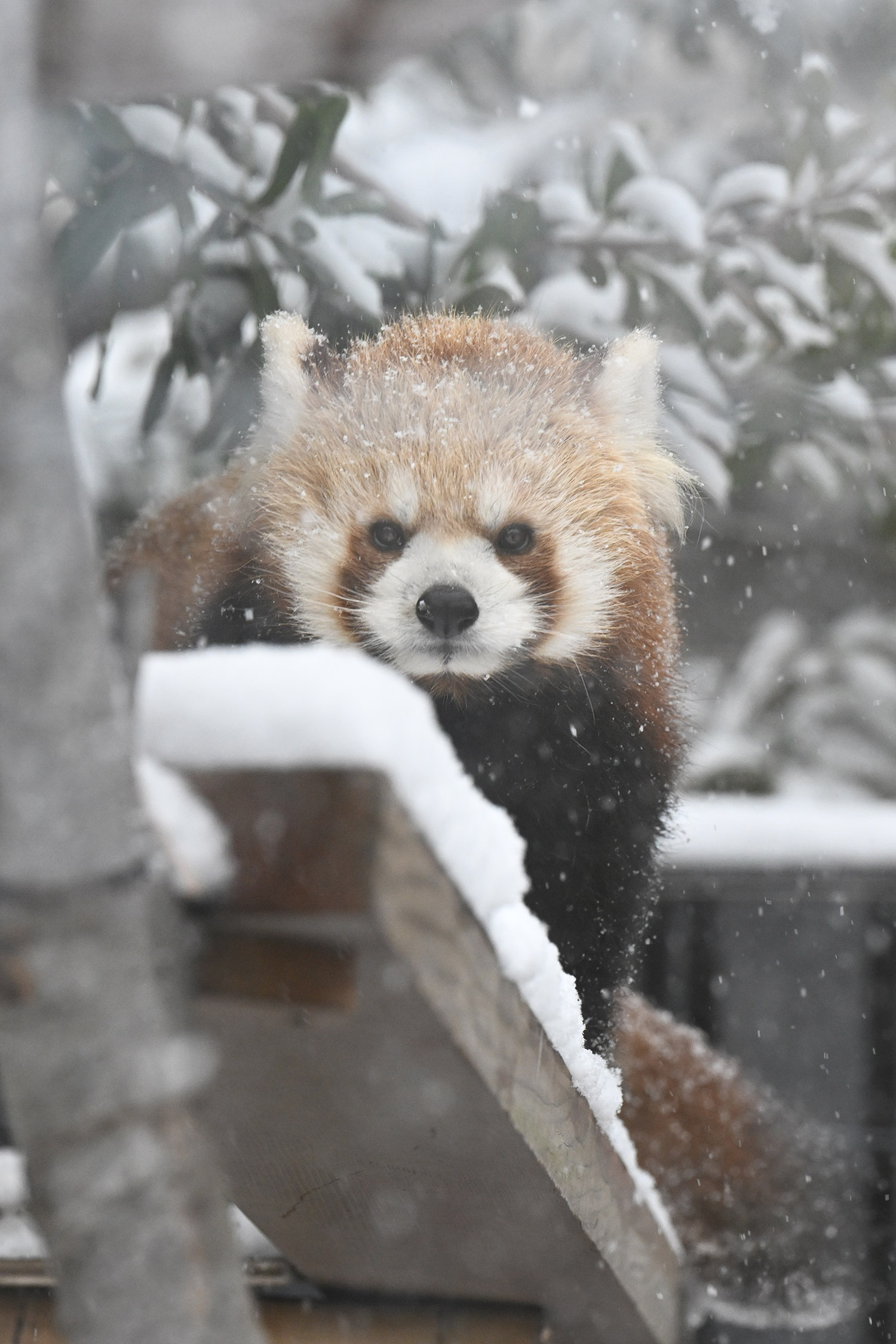 さすがレッサーパンダの生息地に近い環境。雪が似合います。お顔がハッキリくっきり!雪のなか、撮影お疲れさま。交通機関は大丈夫でしたか。