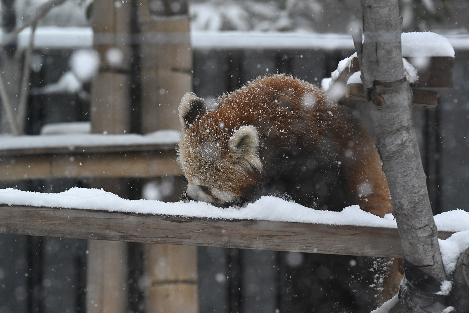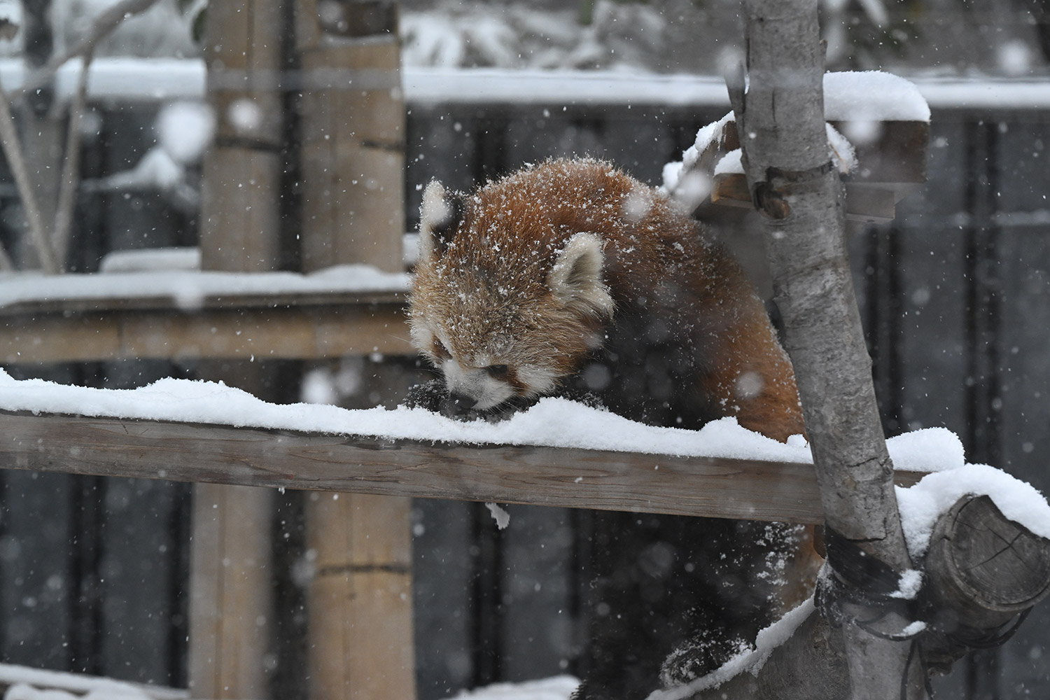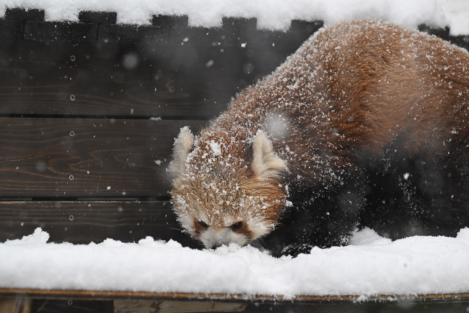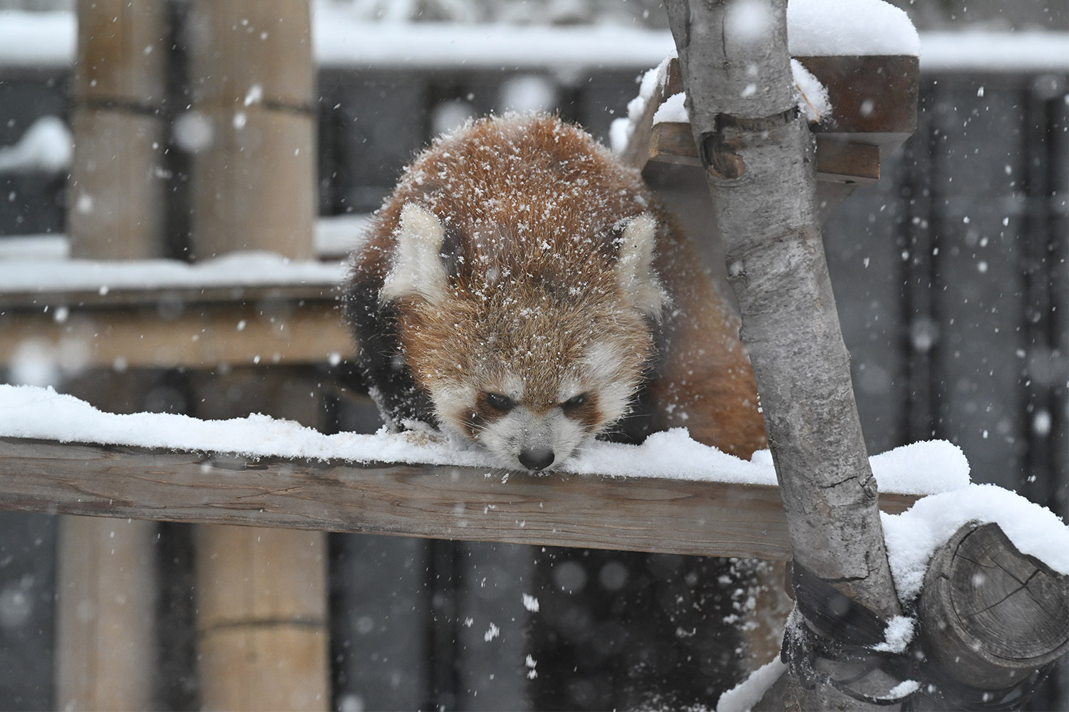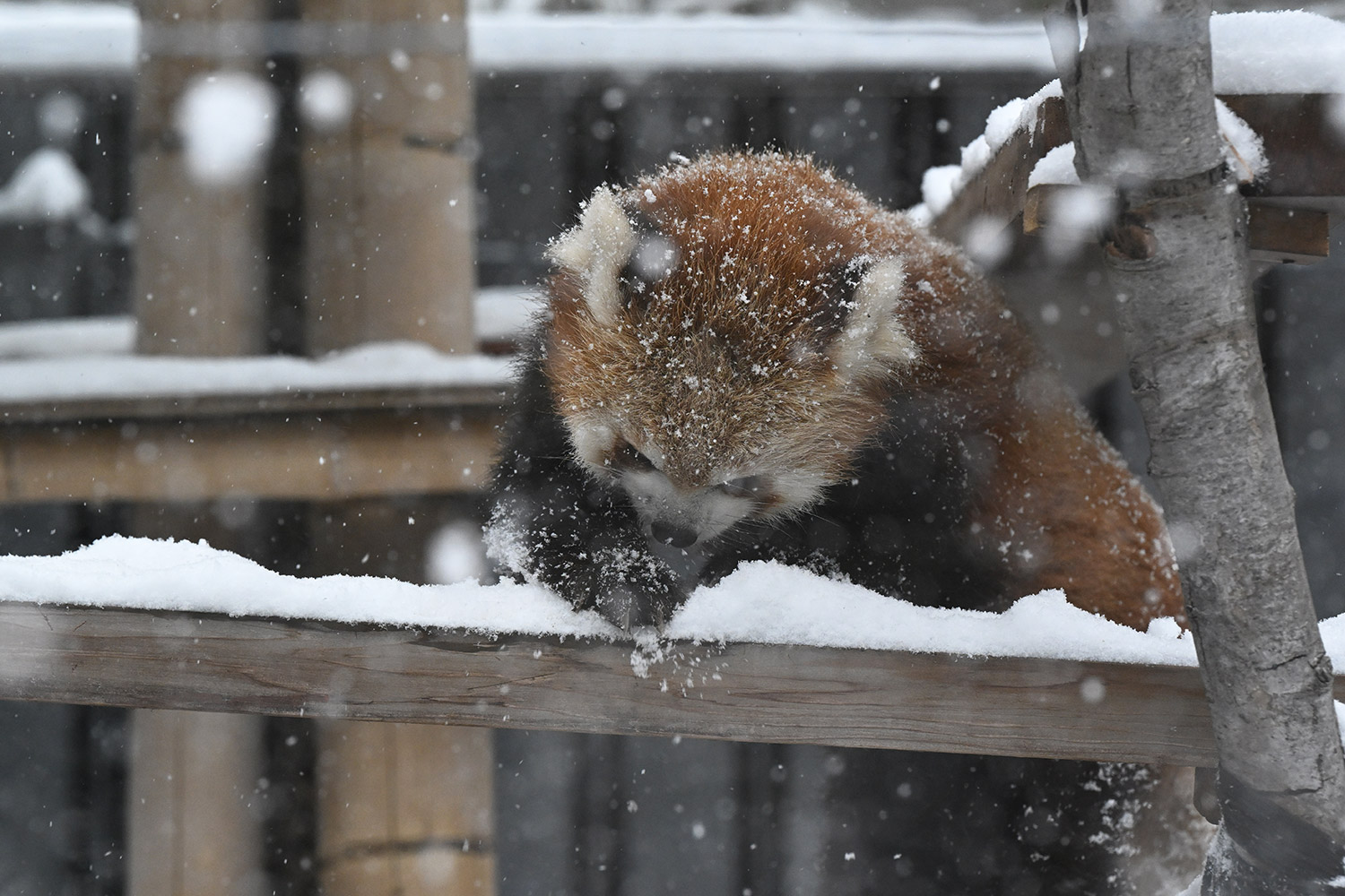 さすがレッサーパンダの生息地に近い環境。雪が似合います。お顔がハッキリくっきり!雪のなか、撮影お疲れさま。交通機関は大丈夫でしたか。