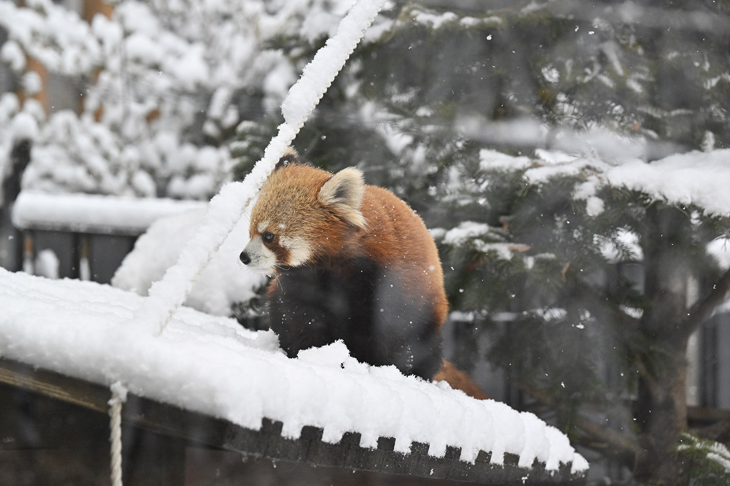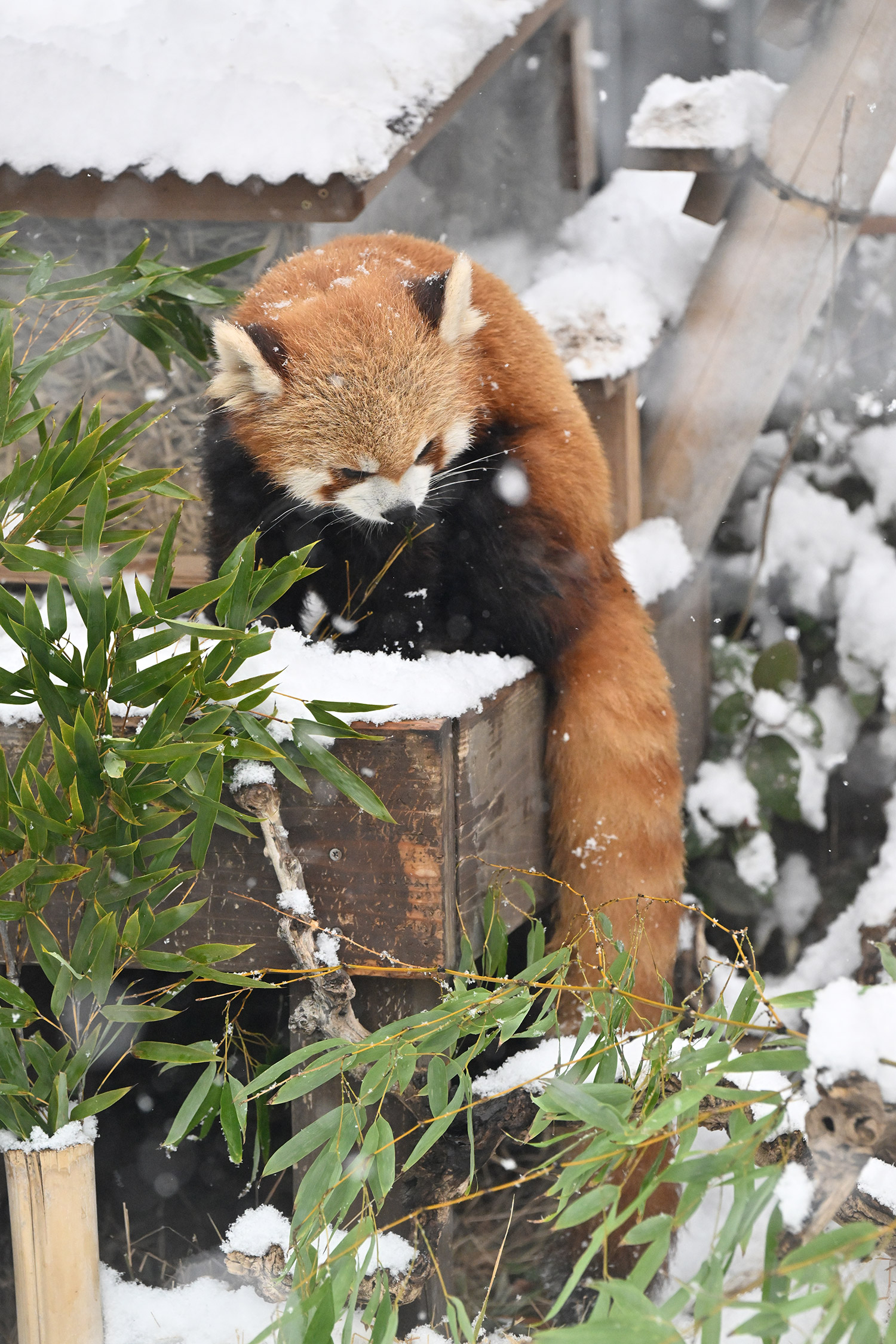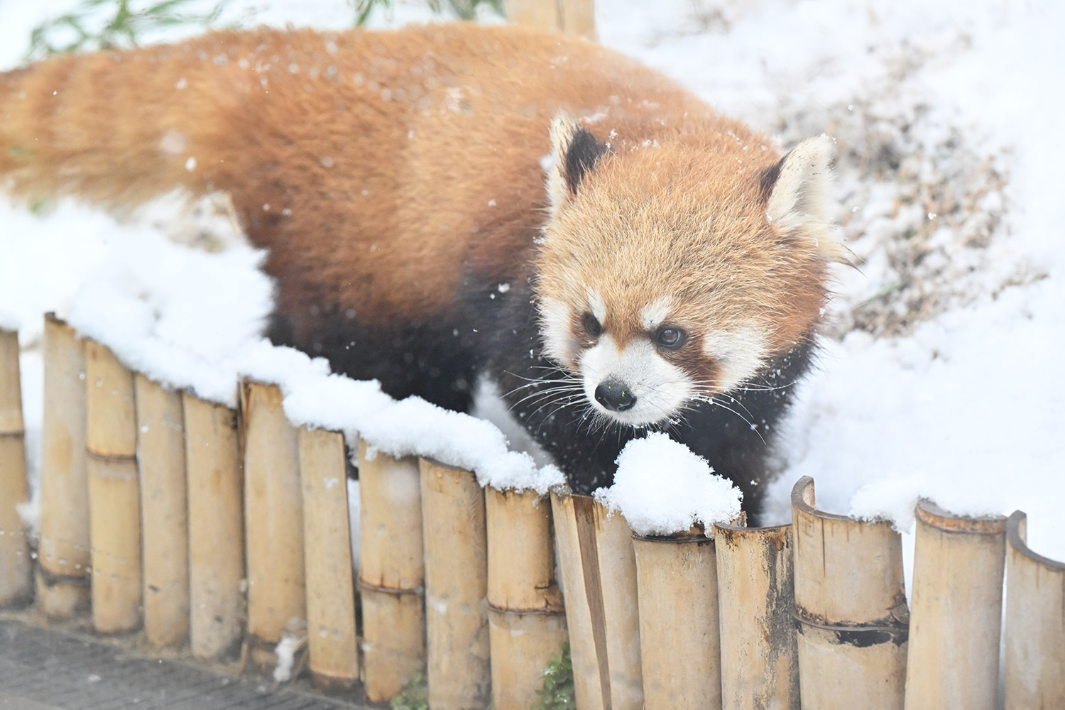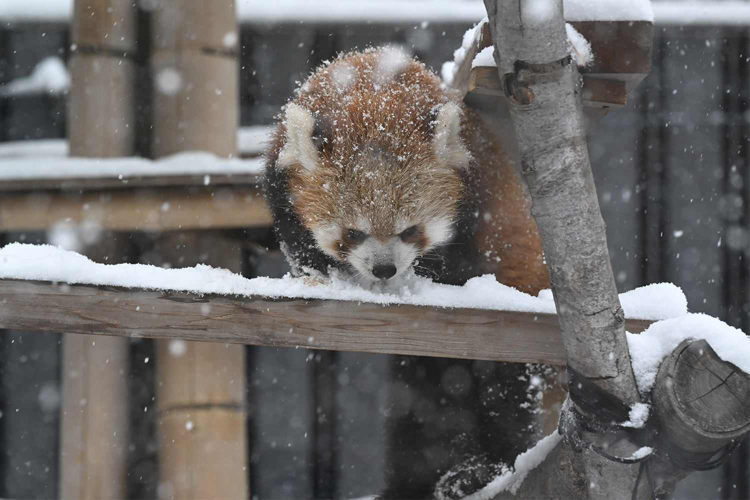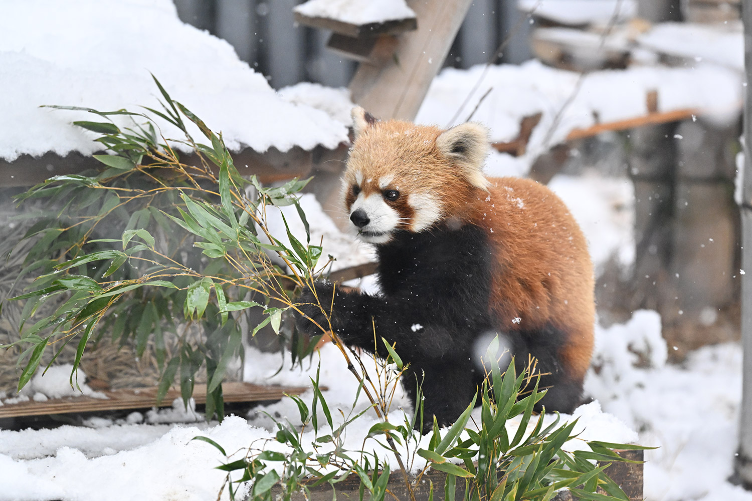 さすがレッサーパンダの生息地に近い環境。雪が似合います。お顔がハッキリくっきり!雪のなか、撮影お疲れさま。交通機関は大丈夫でしたか。