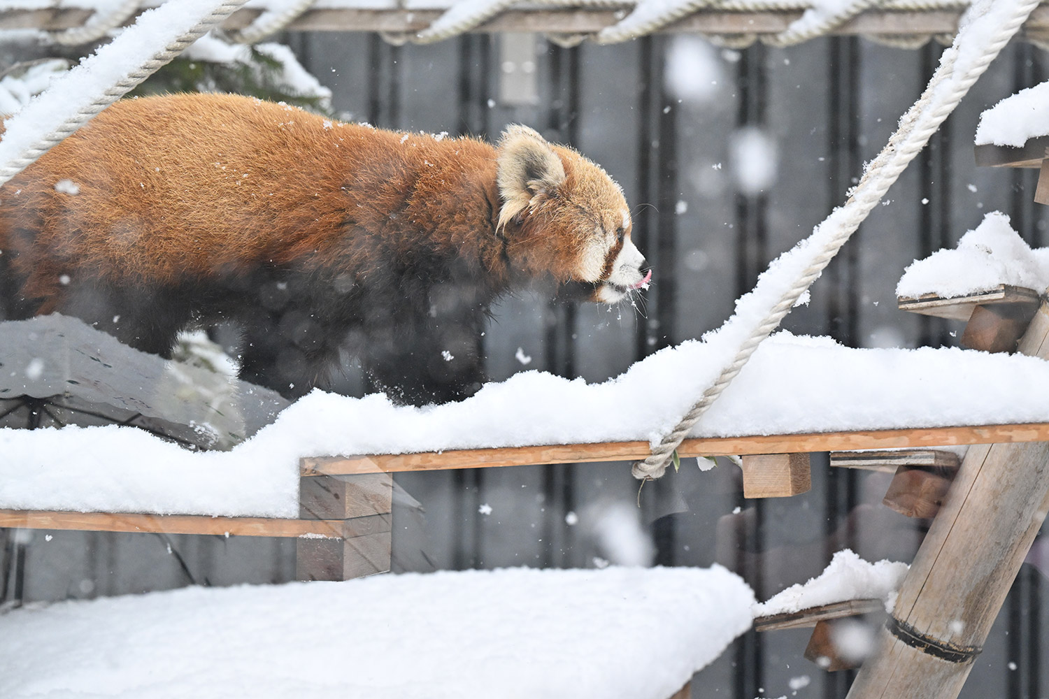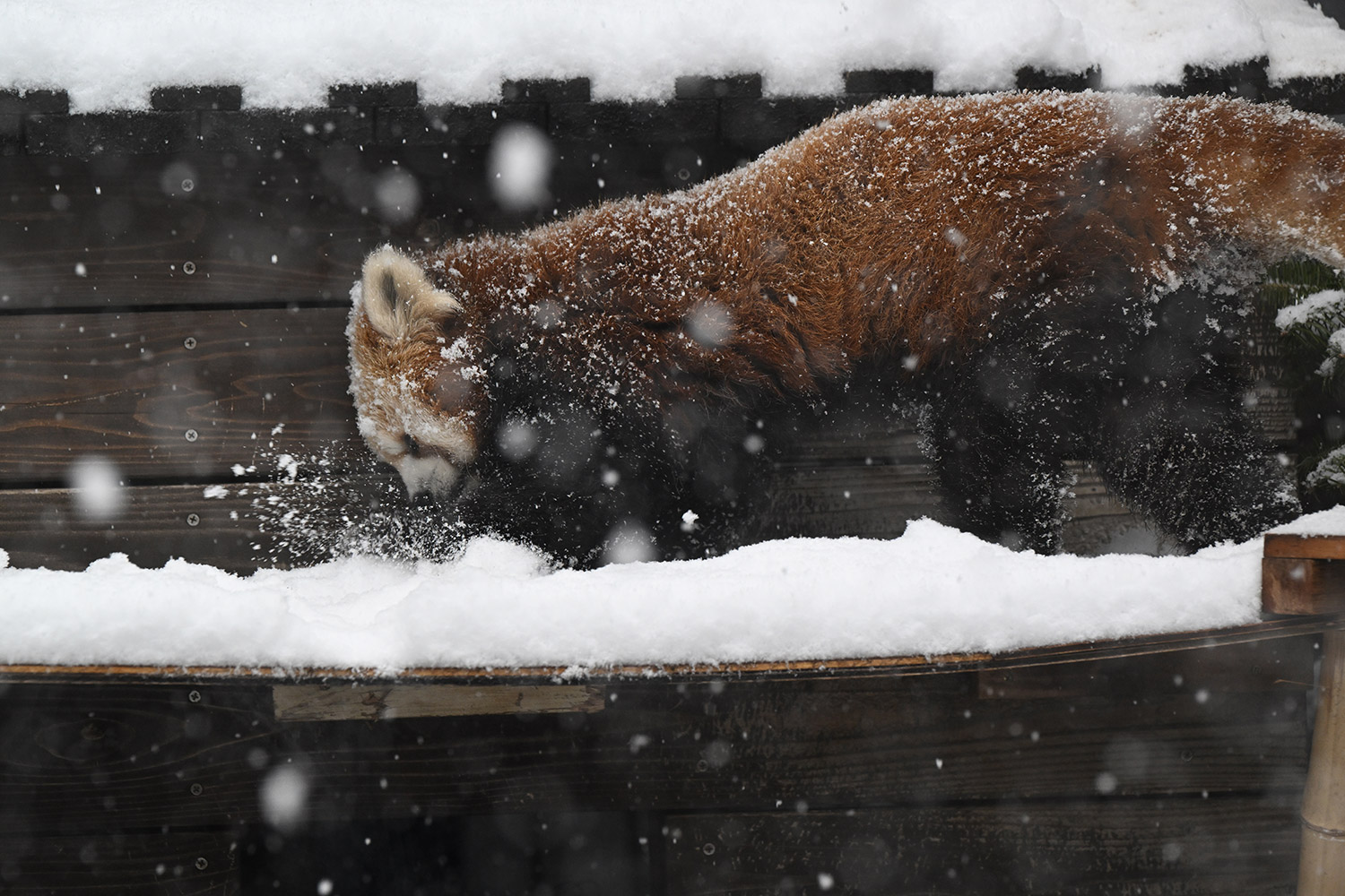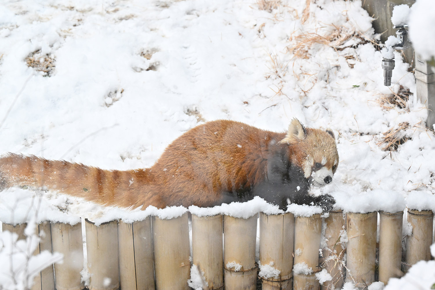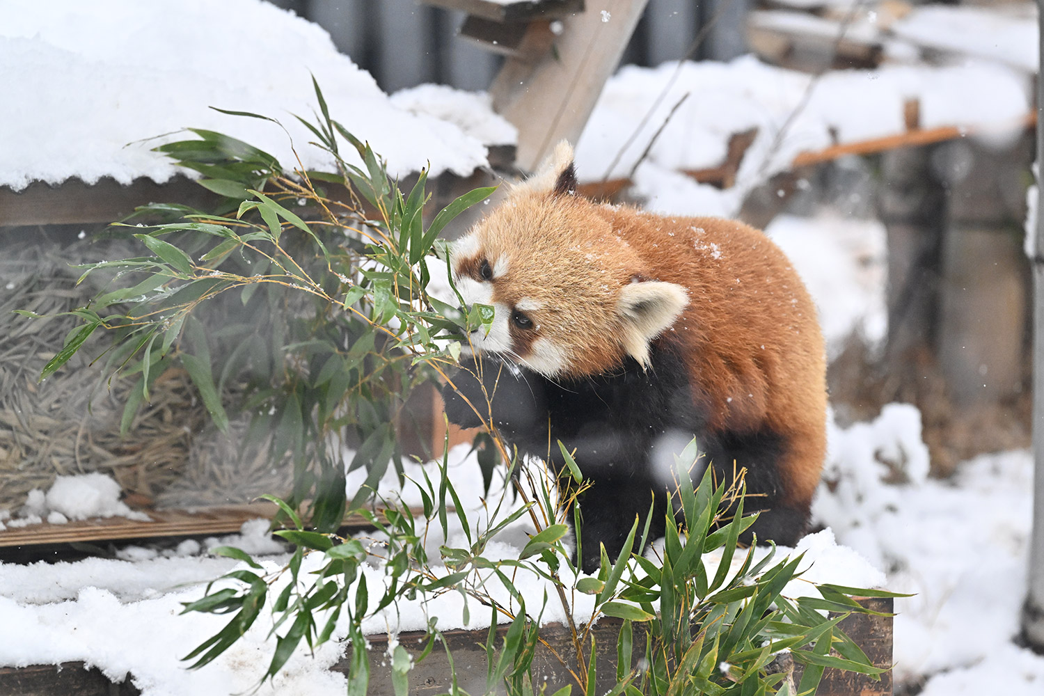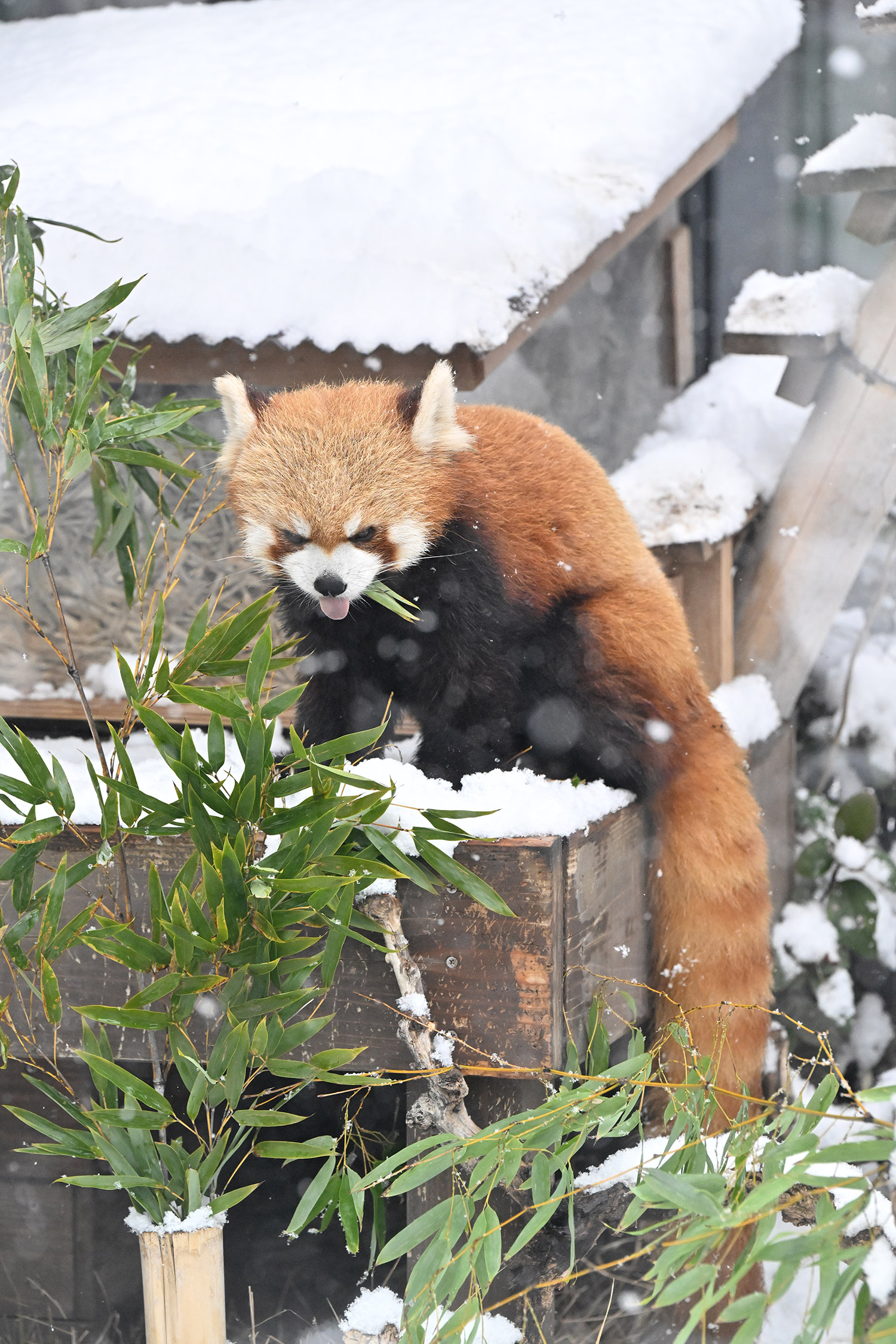 さすがレッサーパンダの生息地に近い環境。雪が似合います。お顔がハッキリくっきり!雪のなか、撮影お疲れさま。交通機関は大丈夫でしたか。