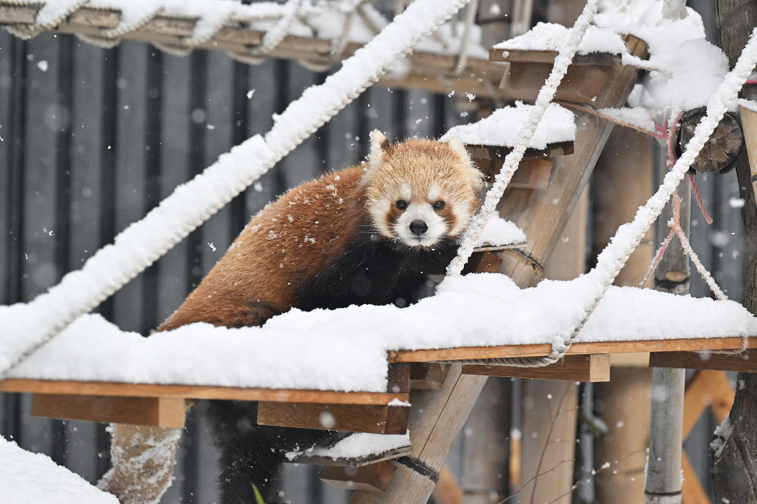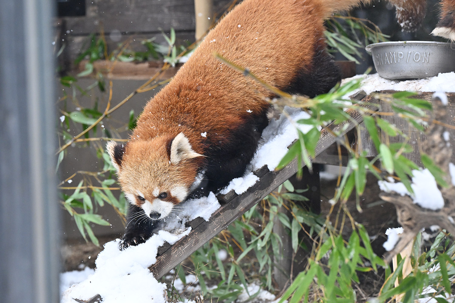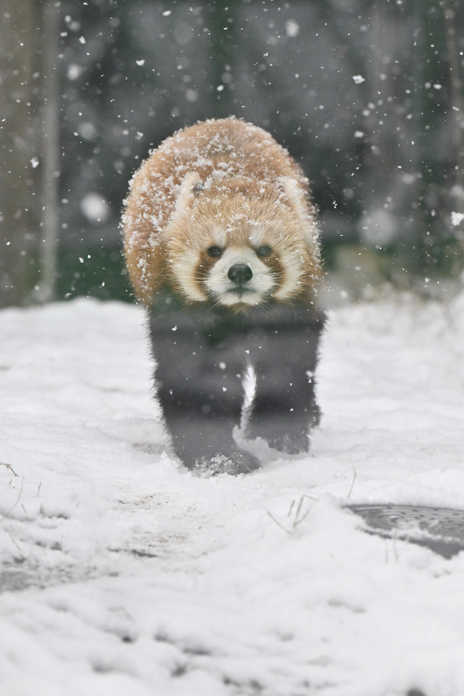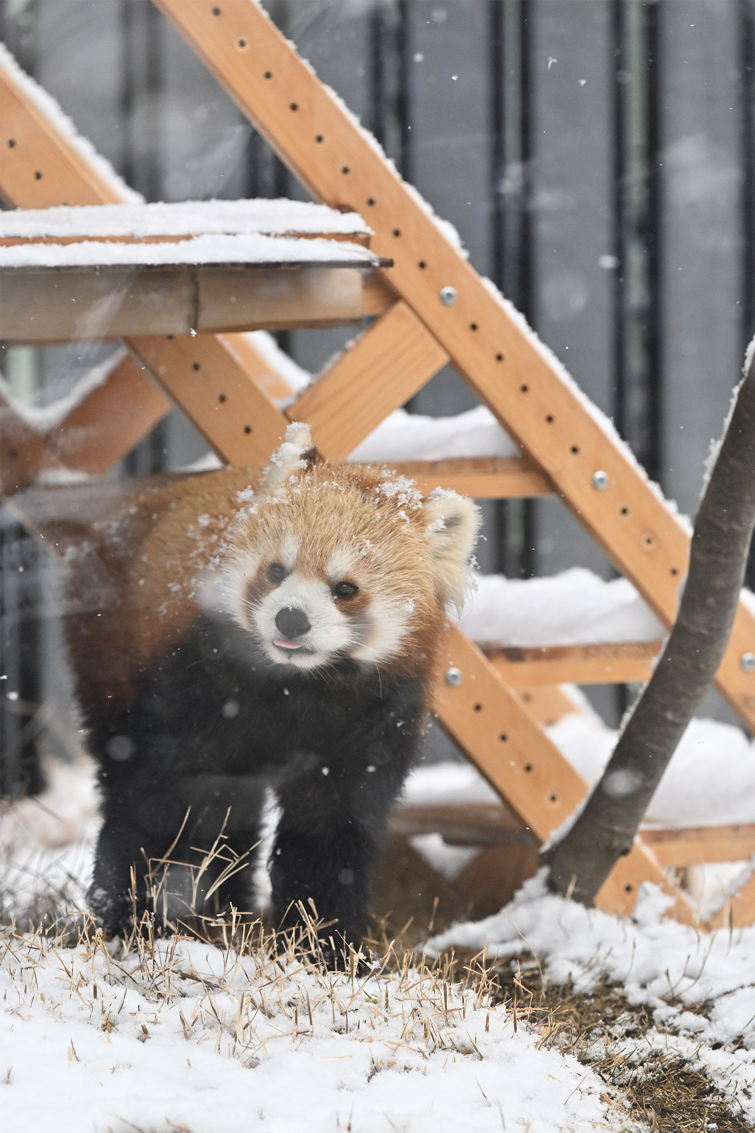 さすがレッサーパンダの生息地に近い環境。雪が似合います。お顔がハッキリくっきり!雪のなか、撮影お疲れさま。交通機関は大丈夫でしたか。