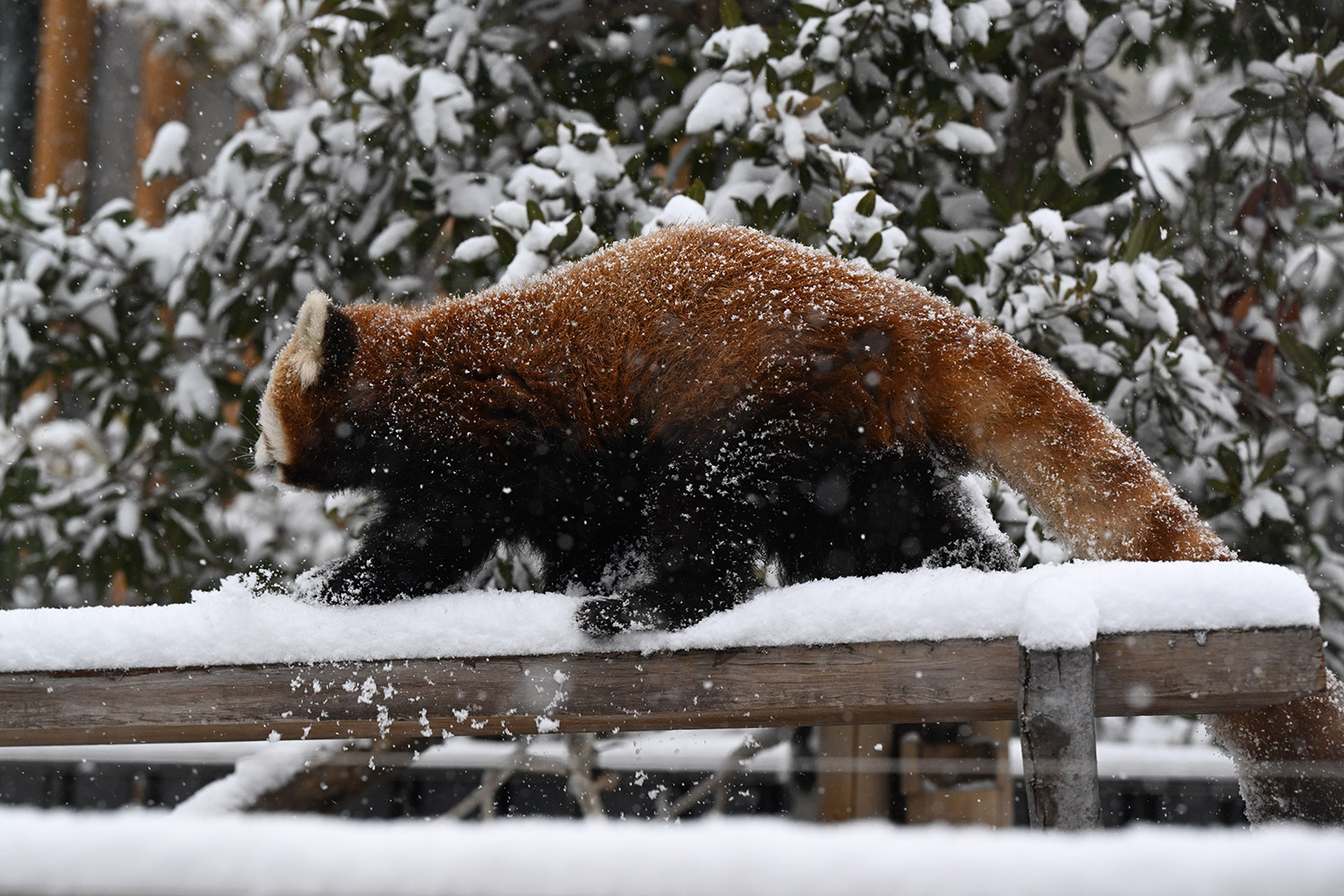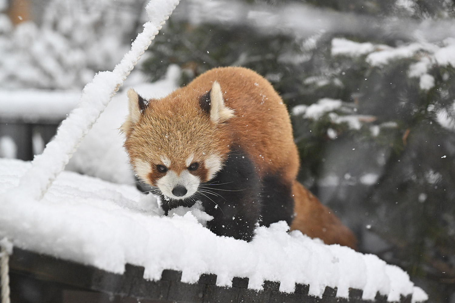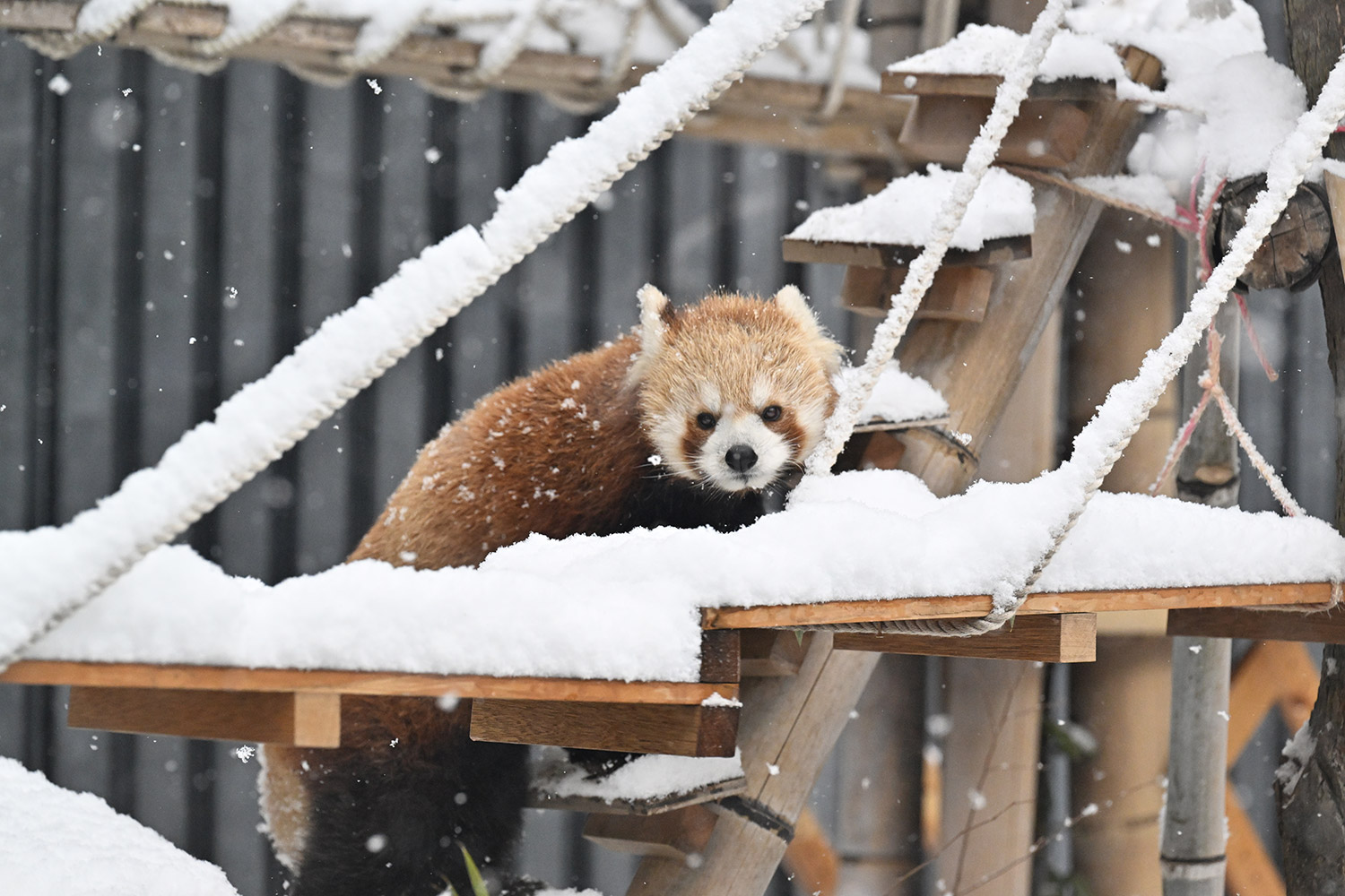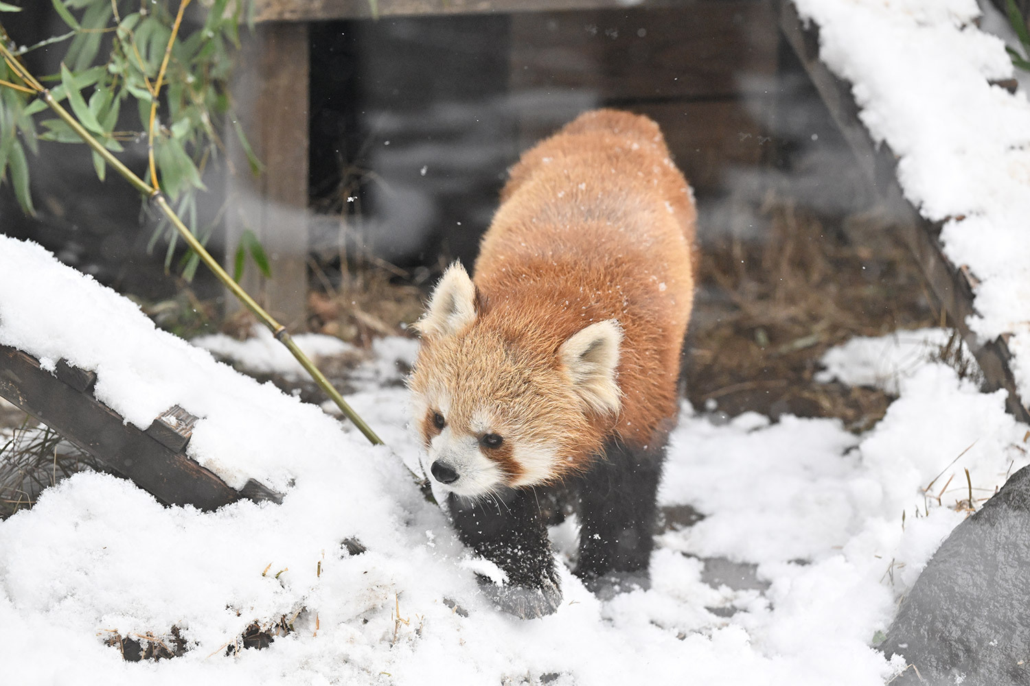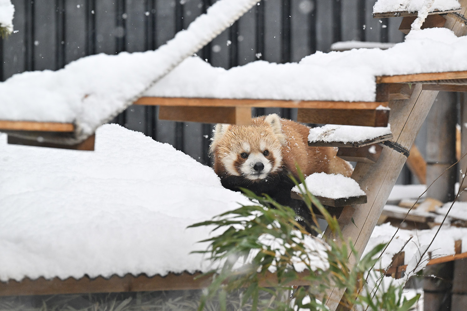 さすがレッサーパンダの生息地に近い環境。雪が似合います。お顔がハッキリくっきり!雪のなか、撮影お疲れさま。交通機関は大丈夫でしたか。