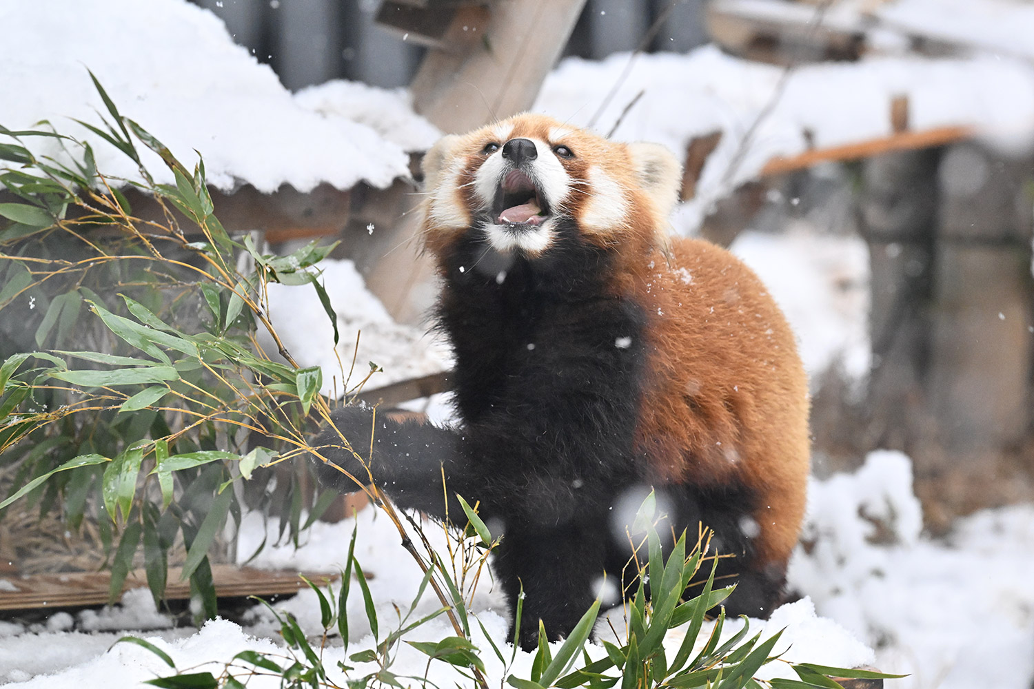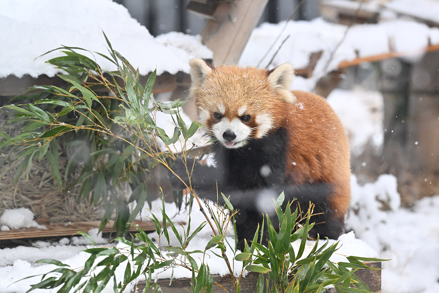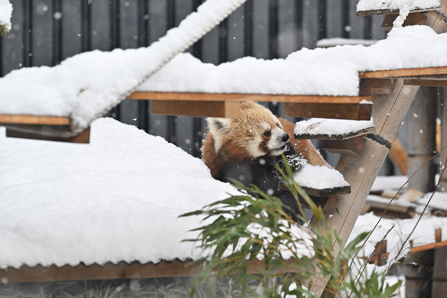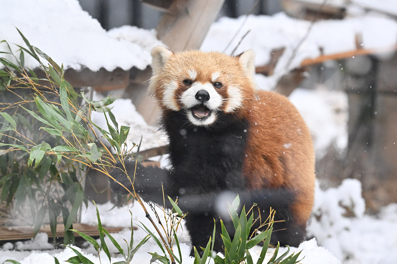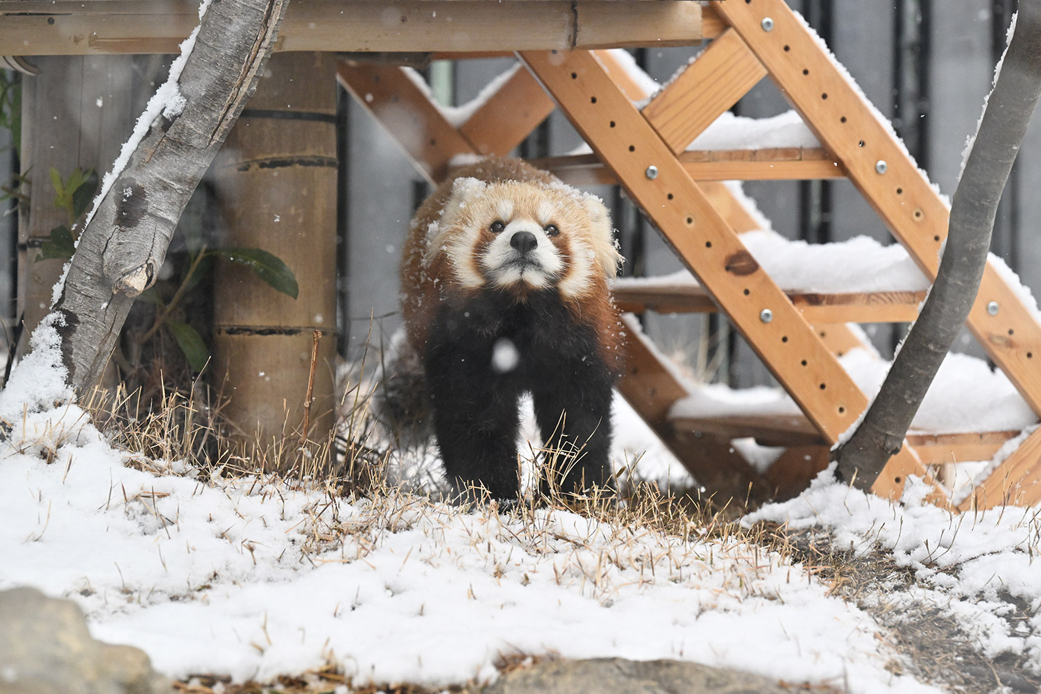 さすがレッサーパンダの生息地に近い環境。雪が似合います。お顔がハッキリくっきり!雪のなか、撮影お疲れさま。交通機関は大丈夫でしたか。