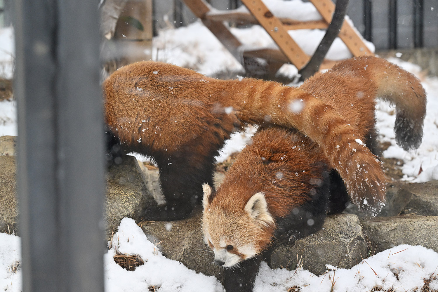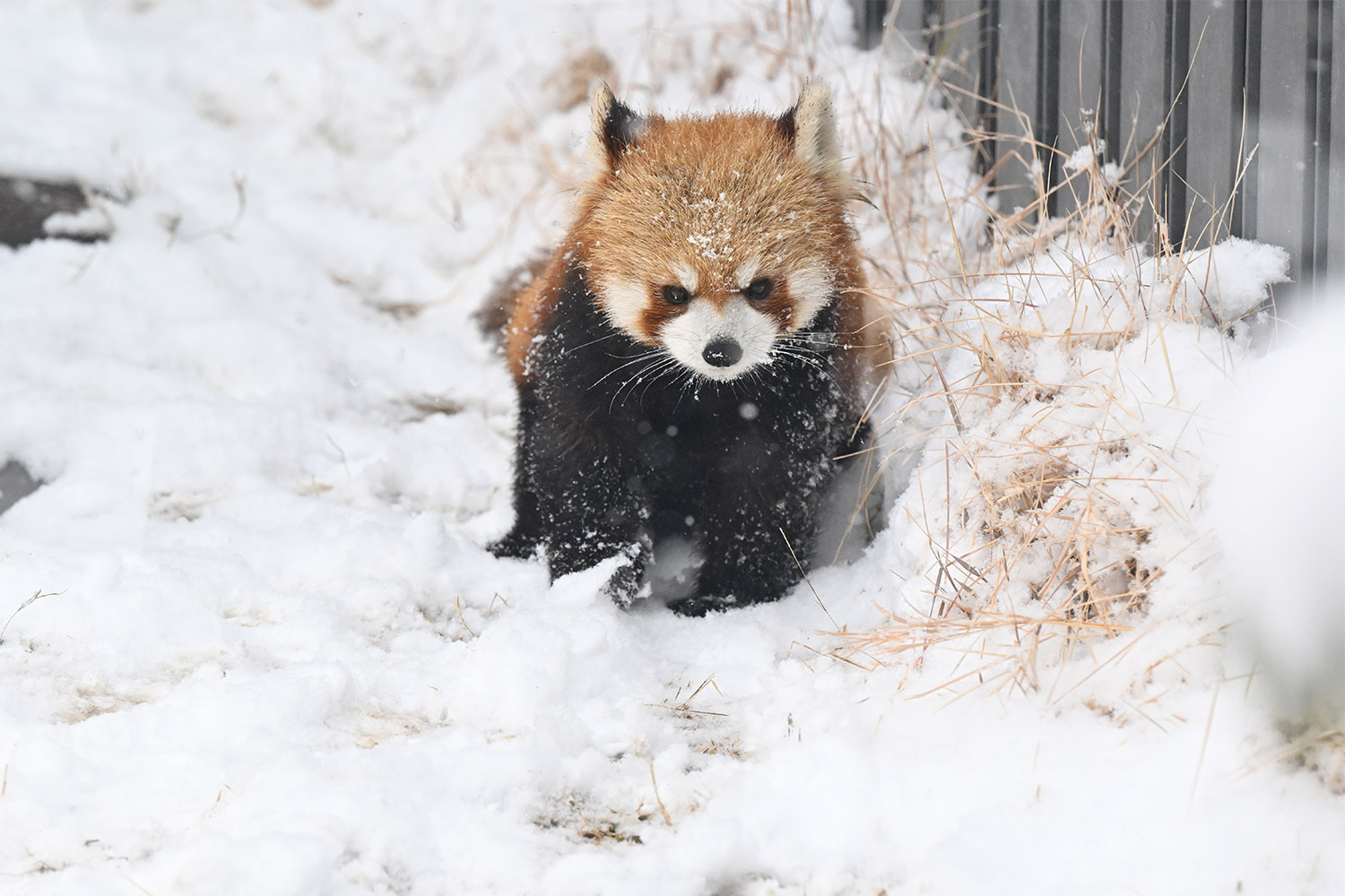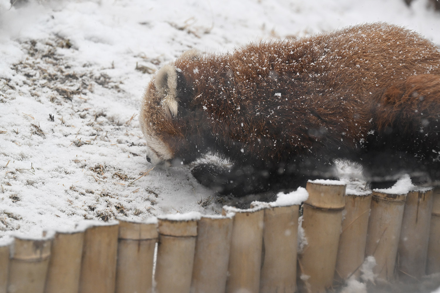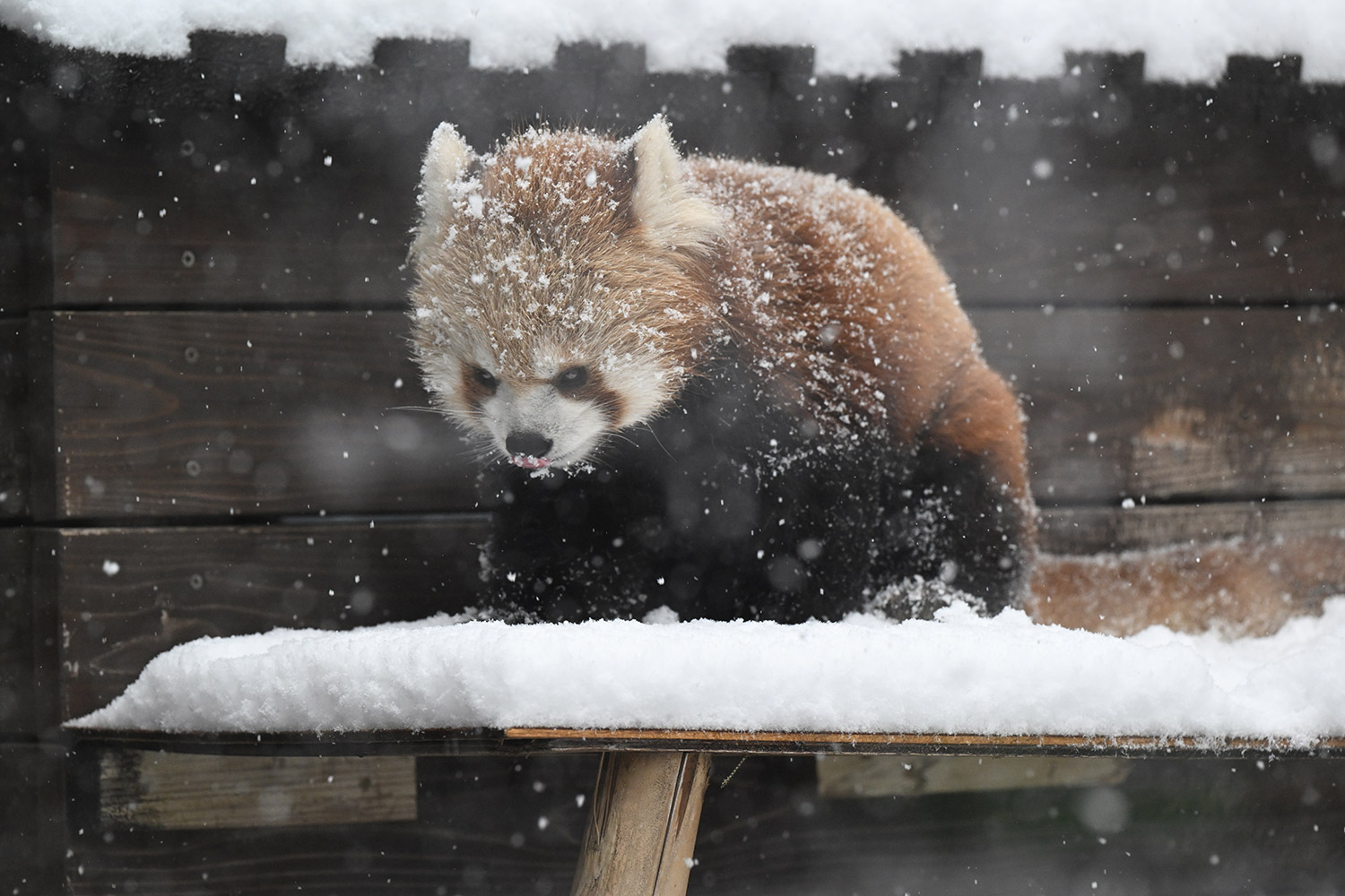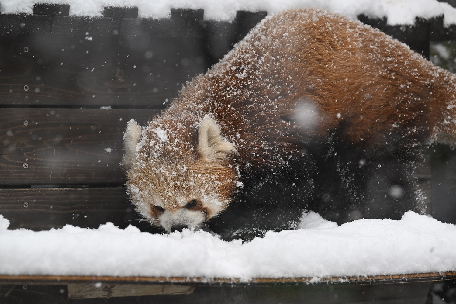 さすがレッサーパンダの生息地に近い環境。雪が似合います。お顔がハッキリくっきり!雪のなか、撮影お疲れさま。交通機関は大丈夫でしたか。