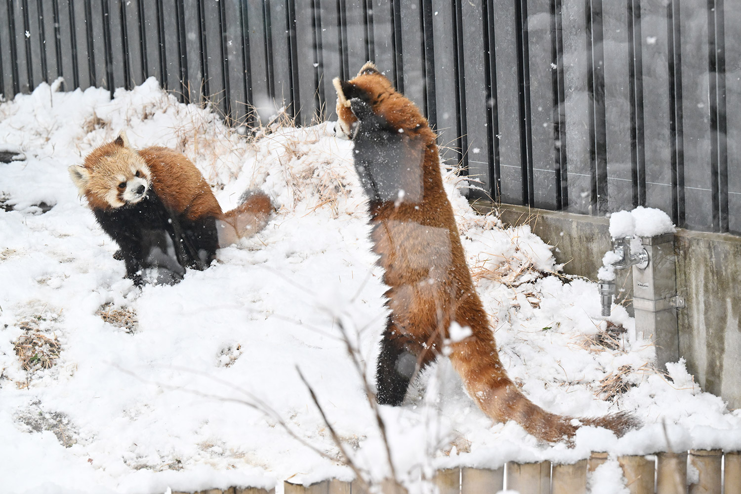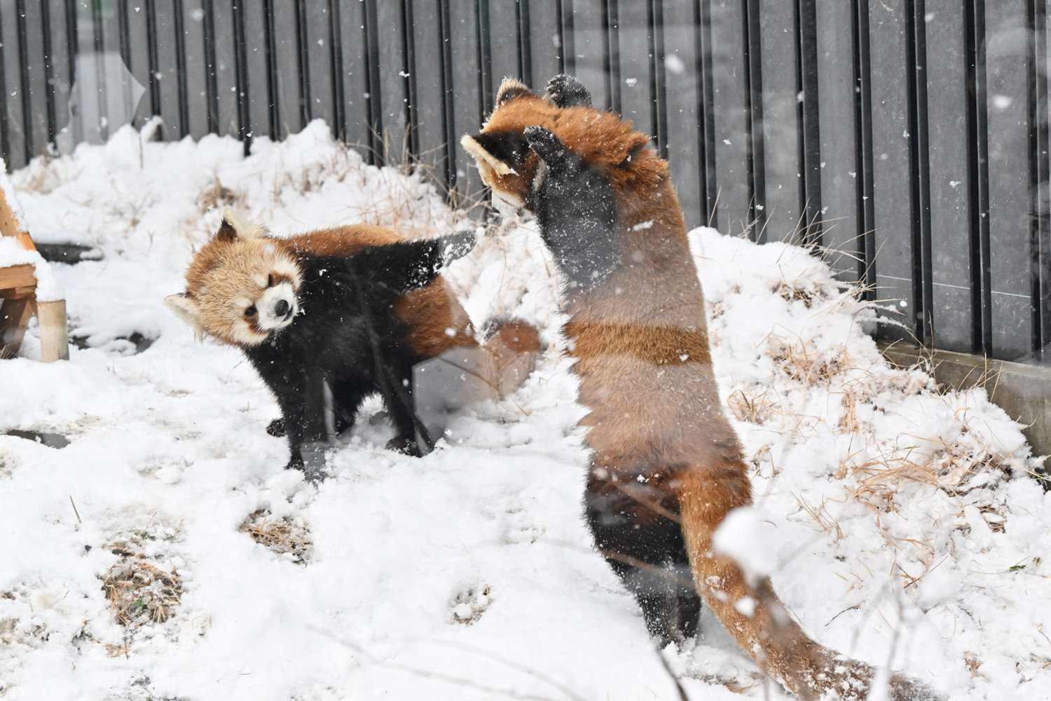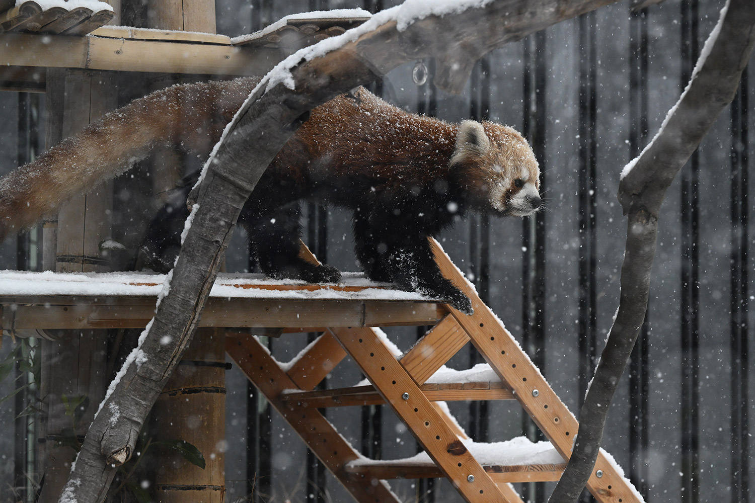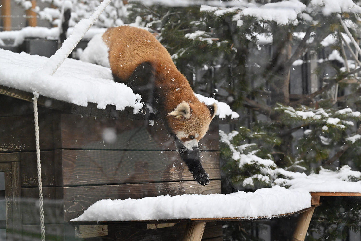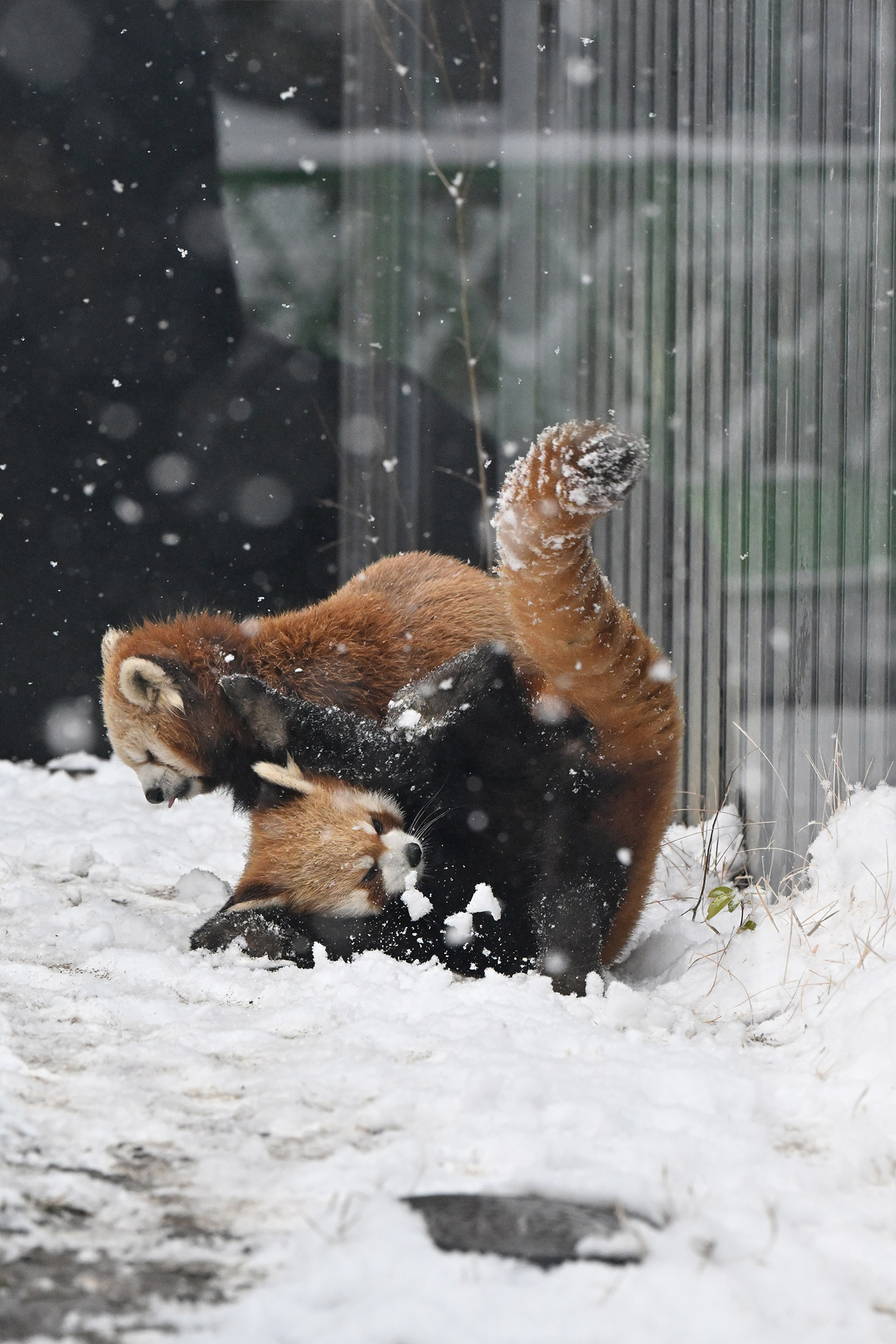 さすがレッサーパンダの生息地に近い環境。雪が似合います。お顔がハッキリくっきり!雪のなか、撮影お疲れさま。交通機関は大丈夫でしたか。