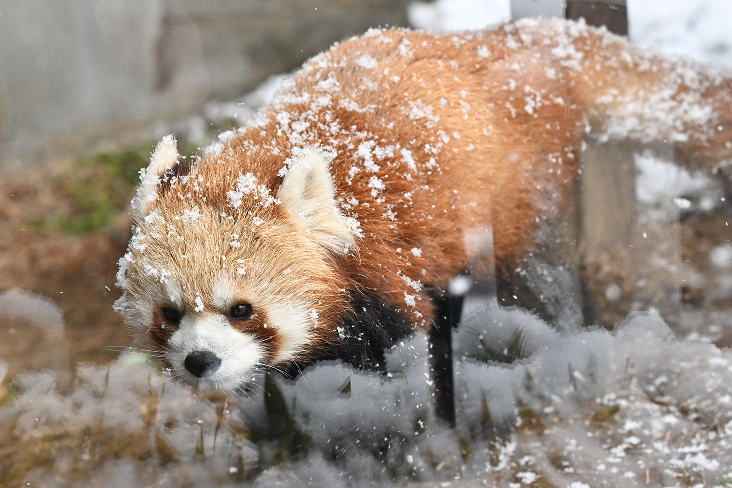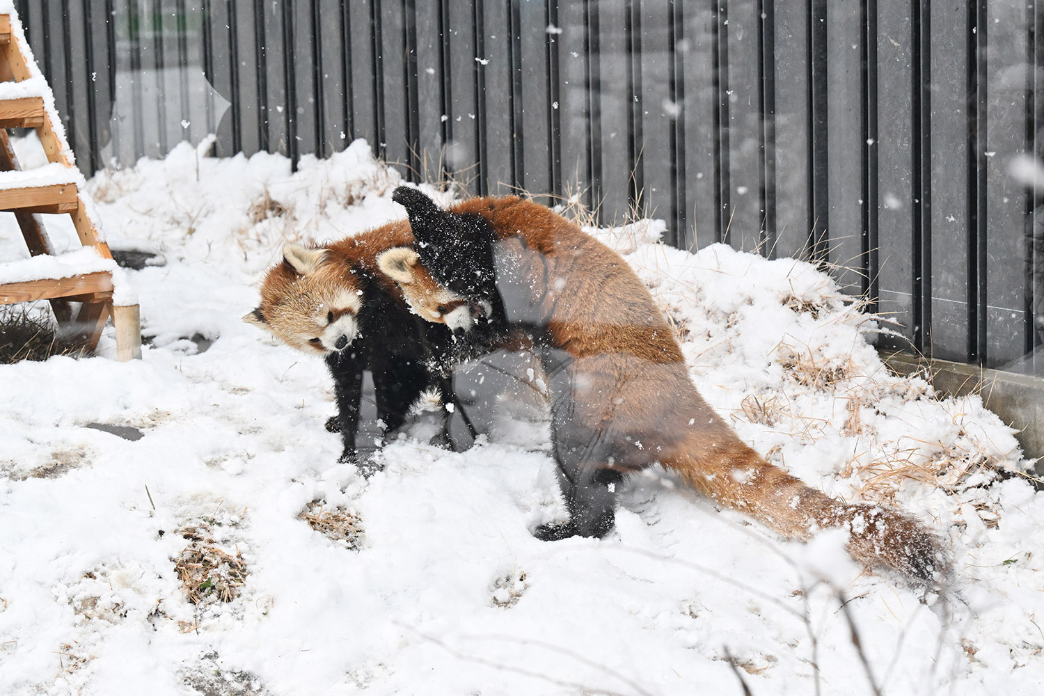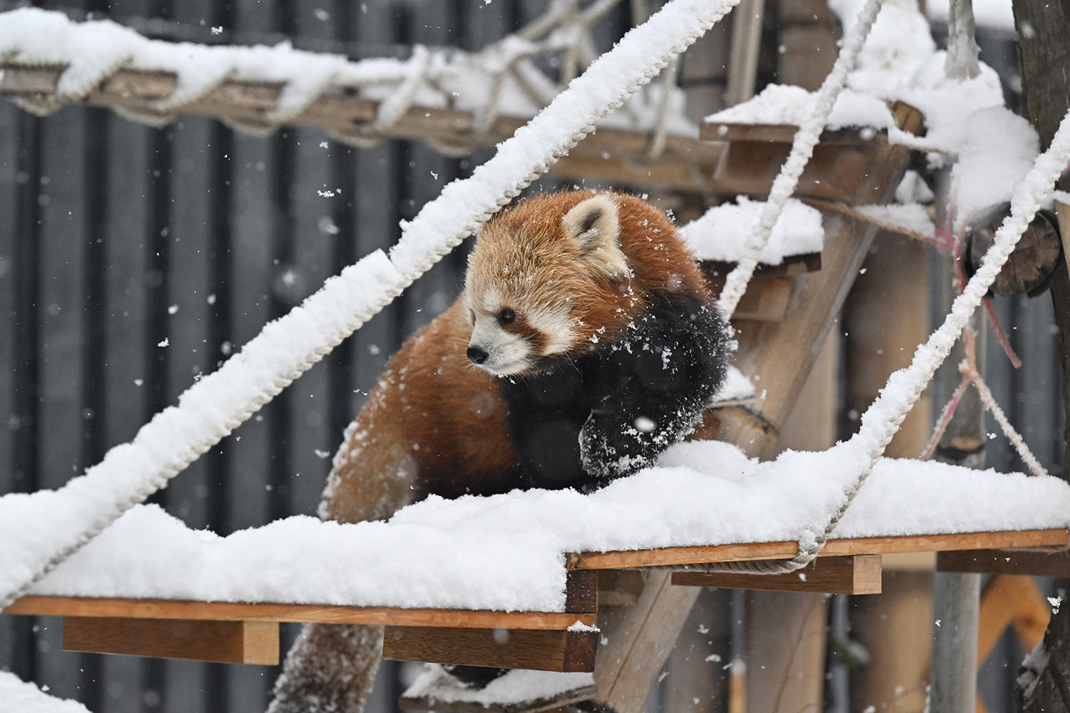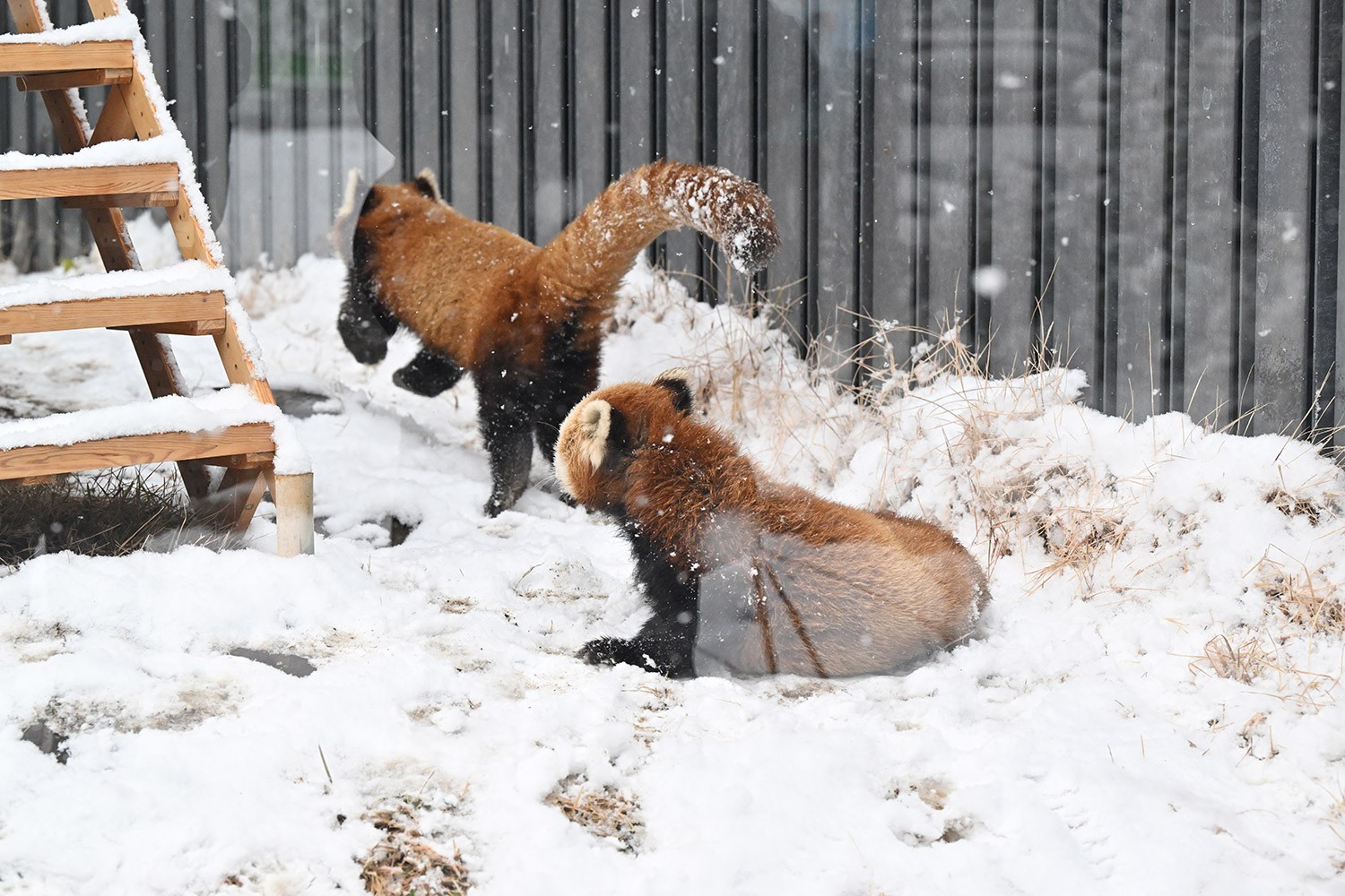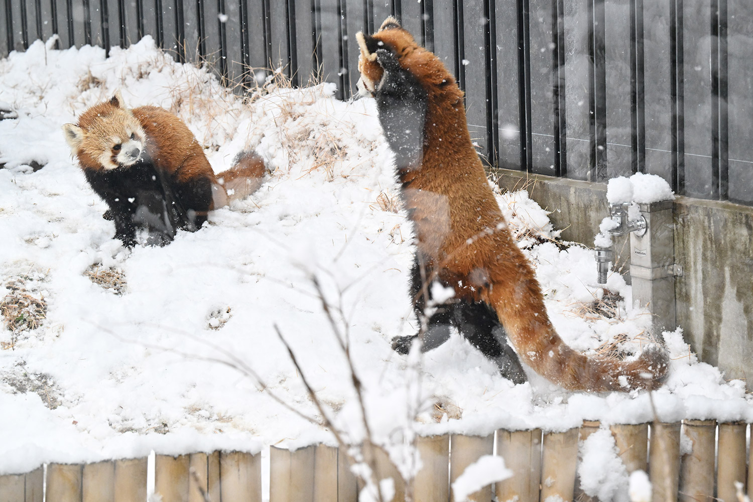 さすがレッサーパンダの生息地に近い環境。雪が似合います。お顔がハッキリくっきり!雪のなか、撮影お疲れさま。交通機関は大丈夫でしたか。