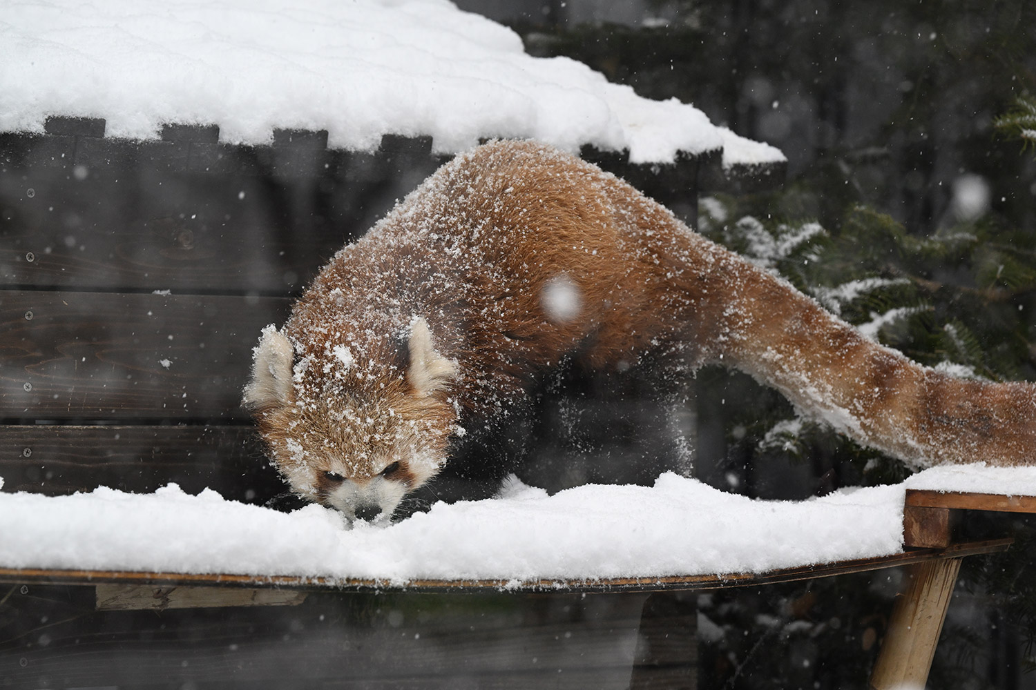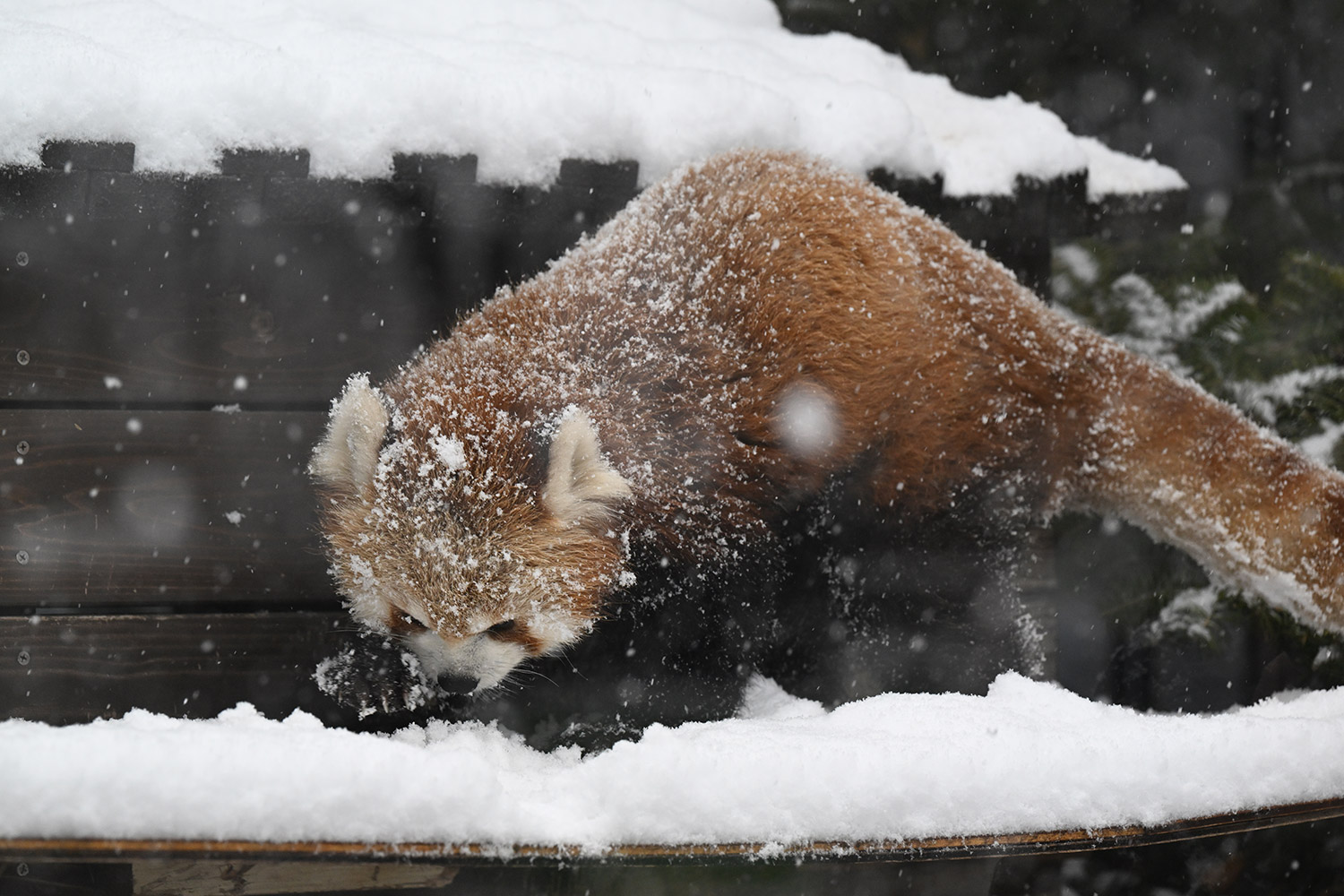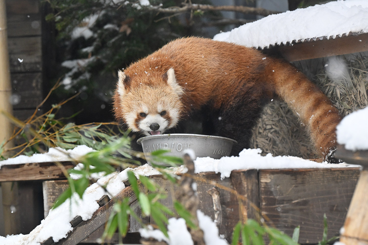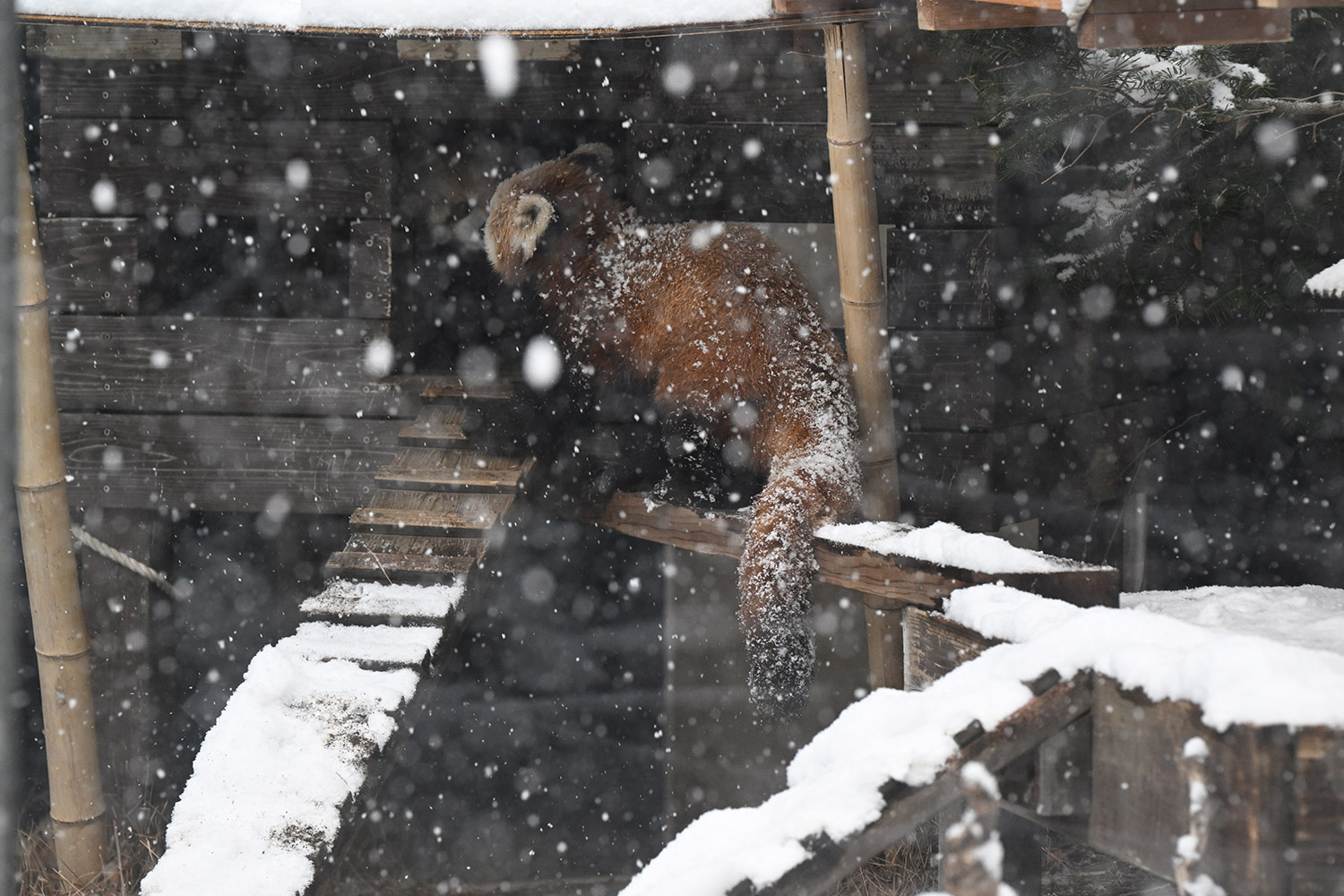 今日は、極寒のなか、雪のレッサーパンダさん、ありがとうございます。