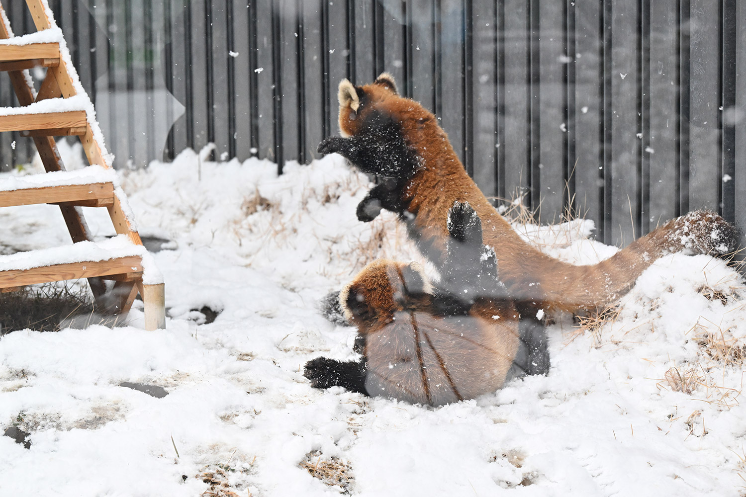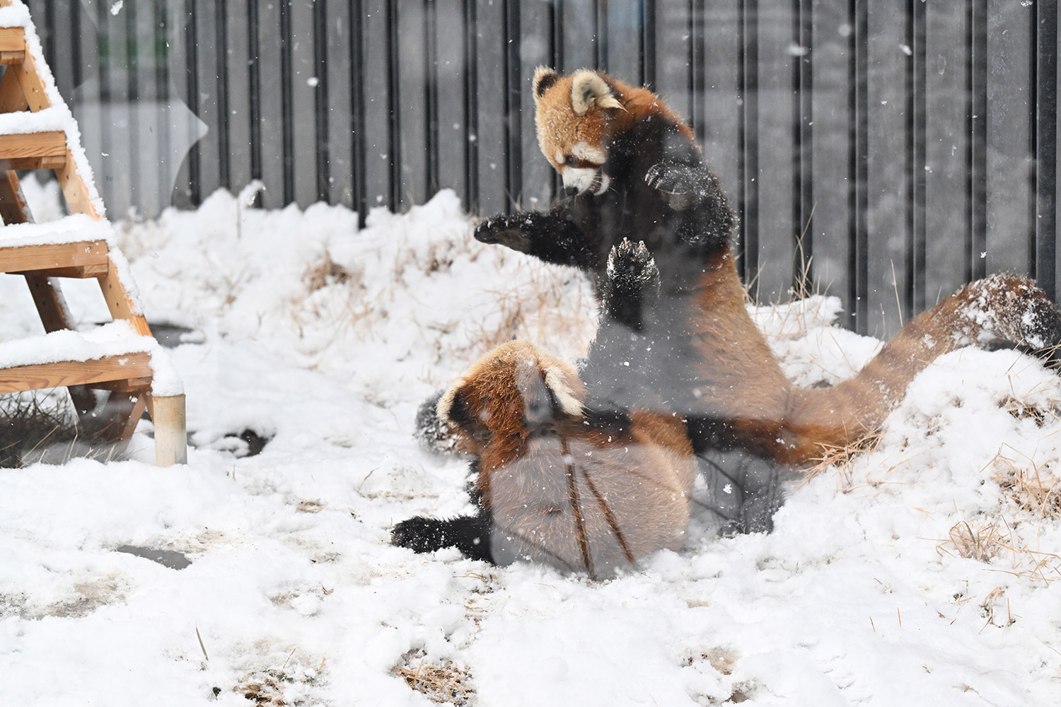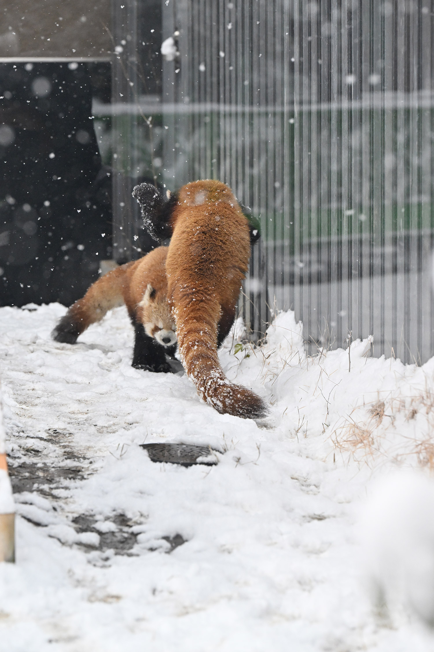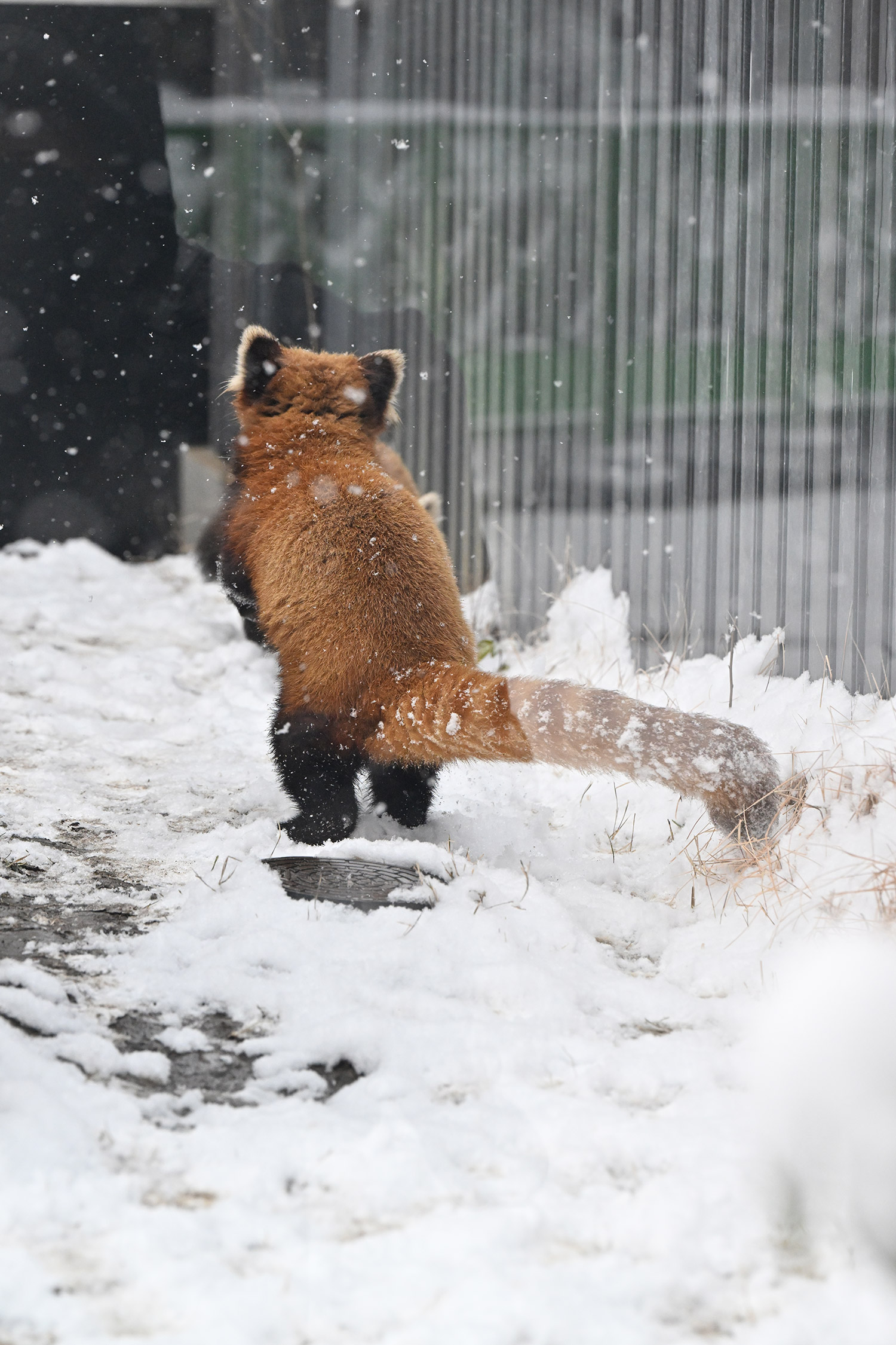 昨日からの雪⛄️は長く降りかなり積もりましたね。本当にシャオレイに遊ばせてあげたかったな~😓レッサーパンダも雪⛄️はへっちゃらなんですね。