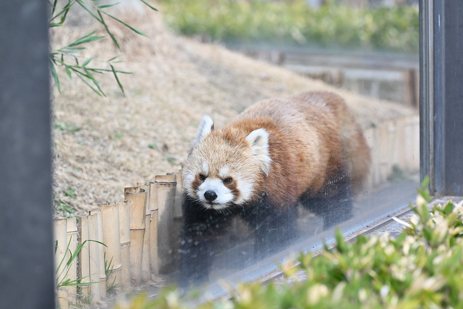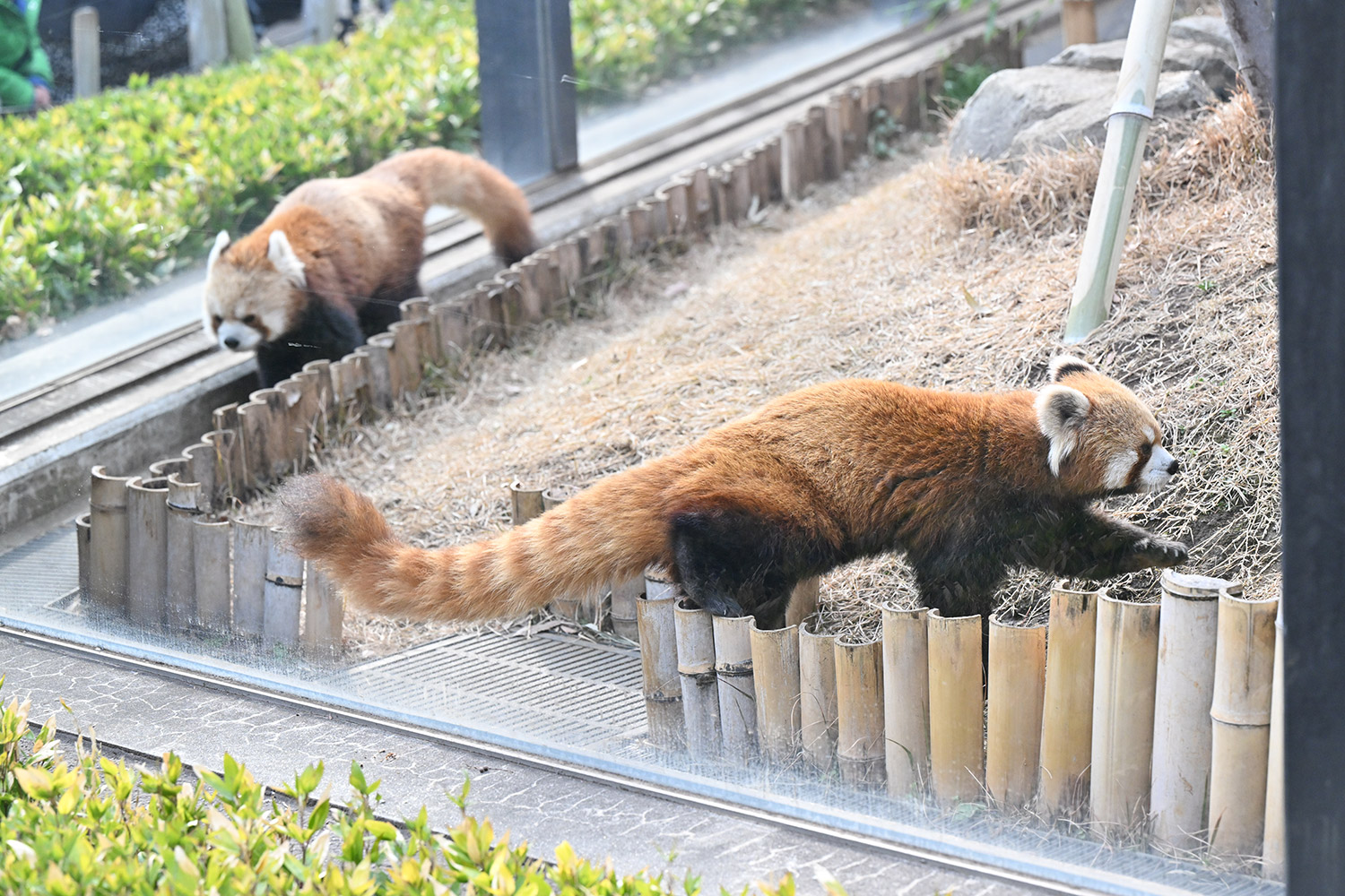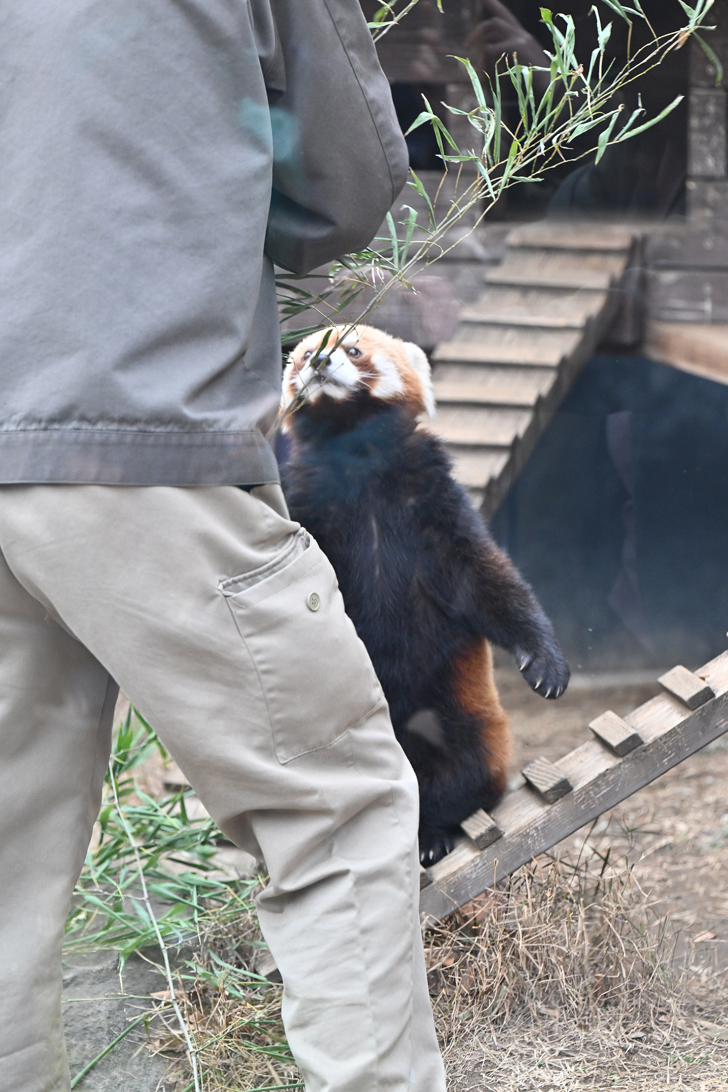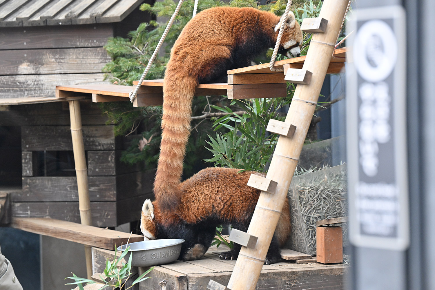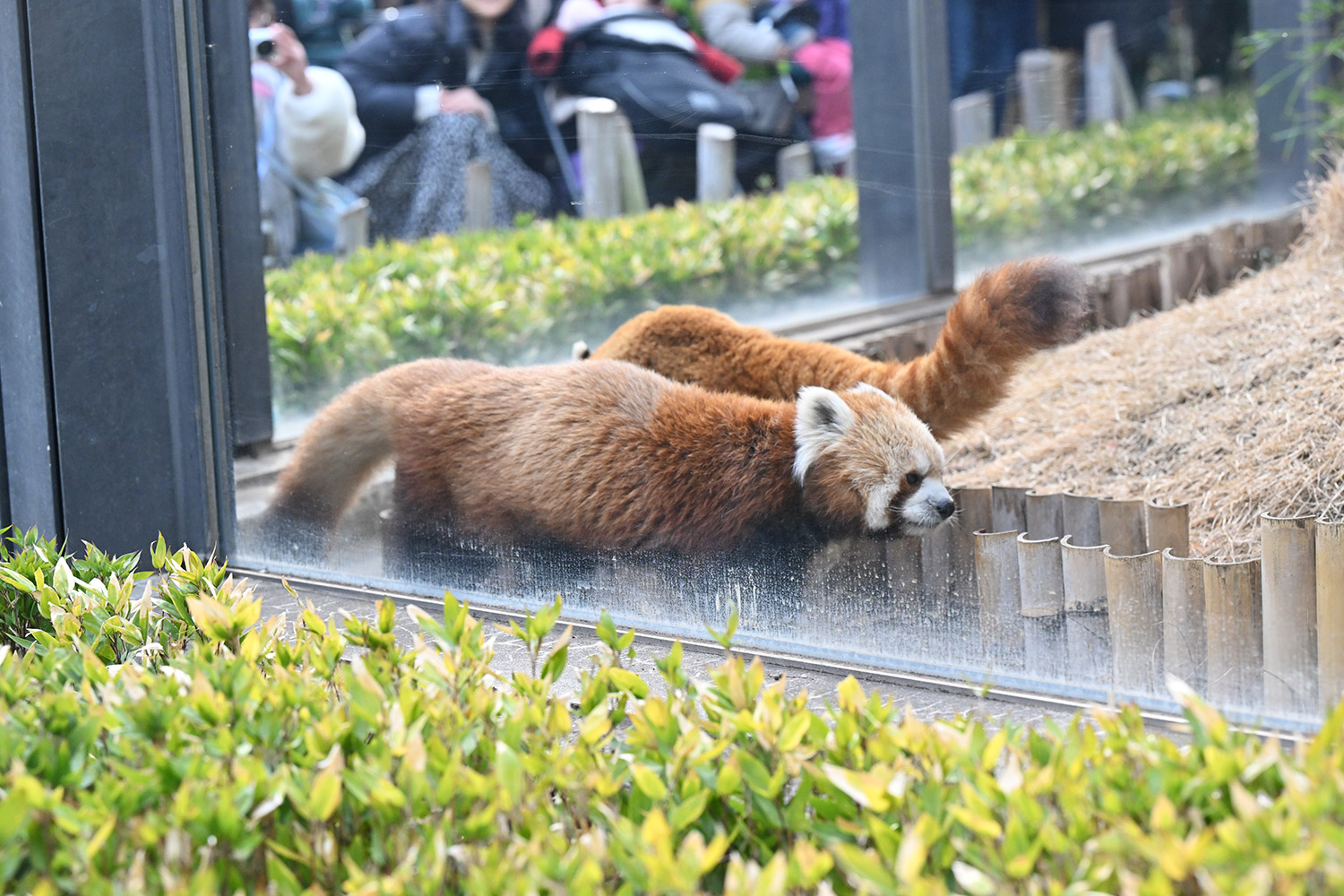 今日のパンダは14:00からです。今日もぽかぽか陽気で土曜日のレッサーパンダ舎は混雑していました。