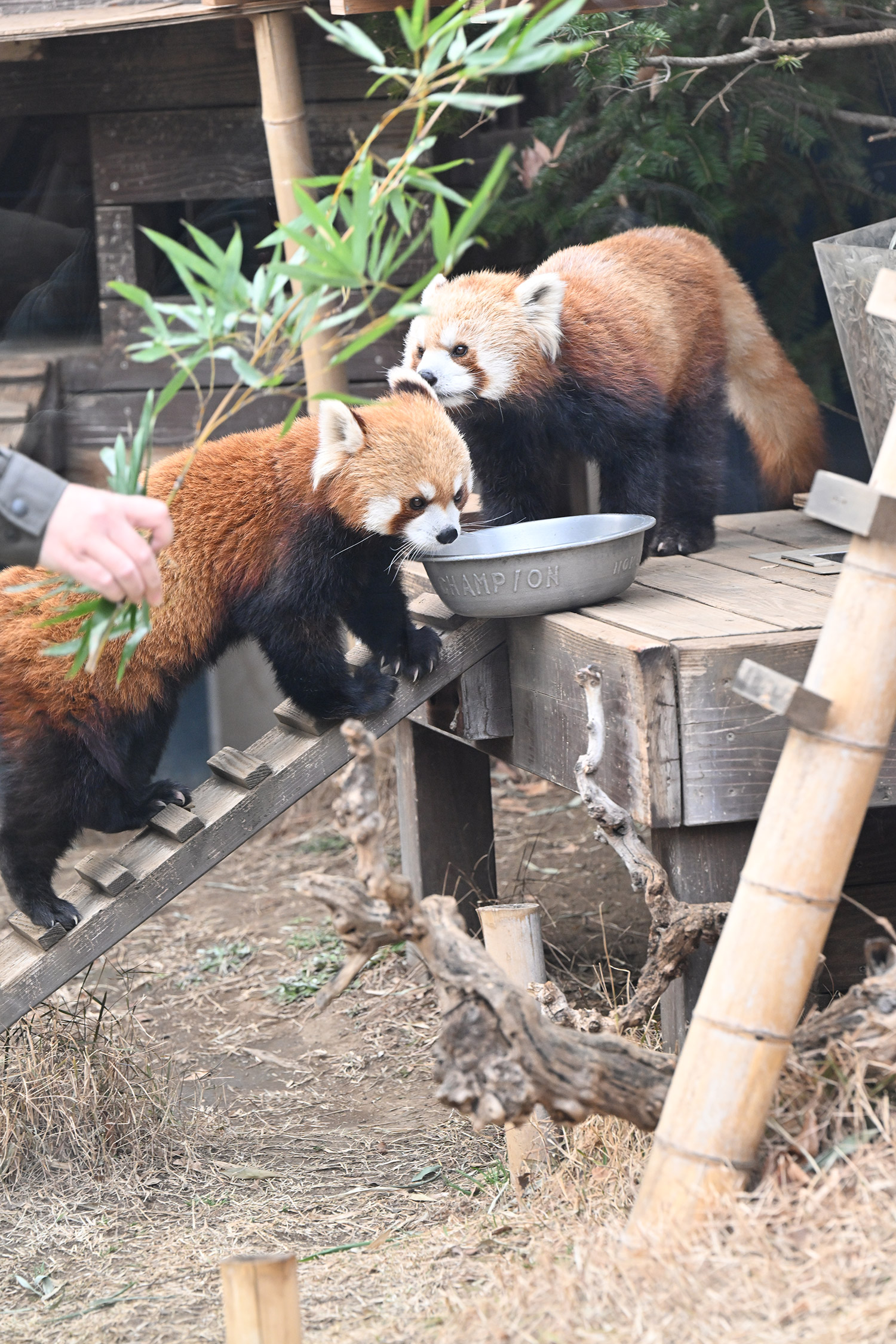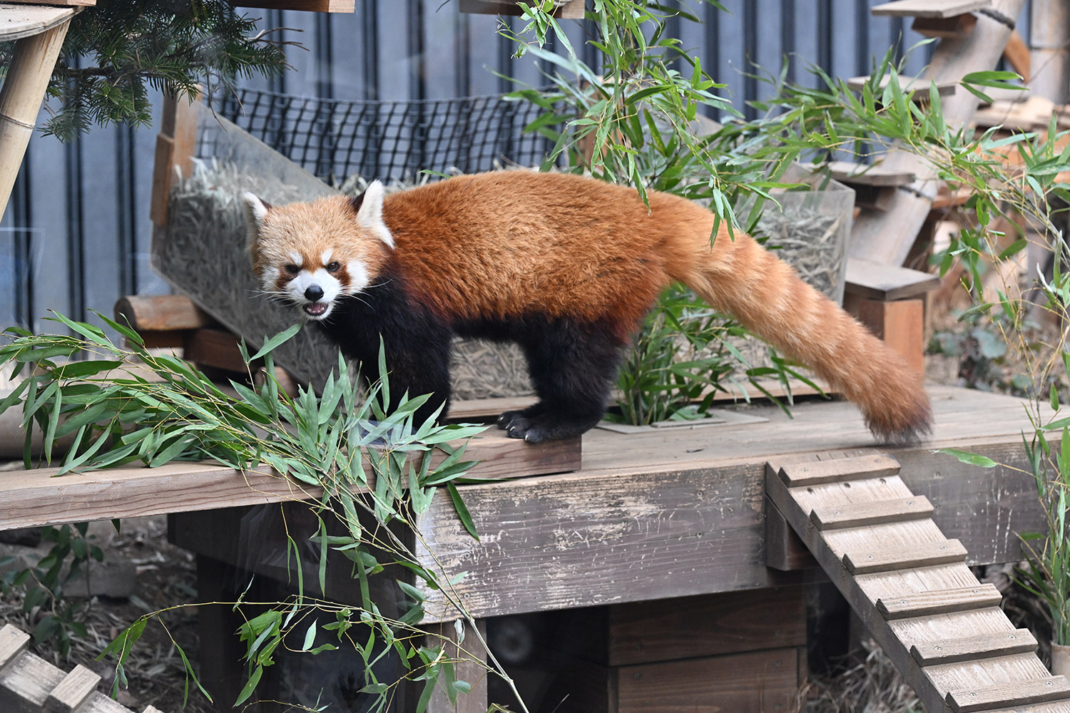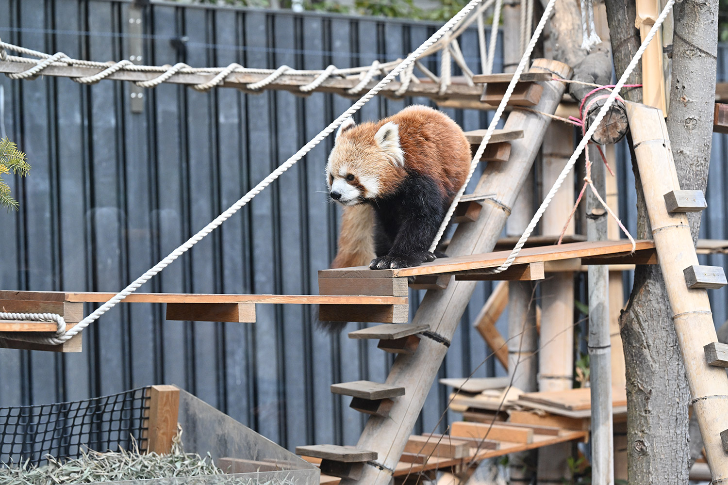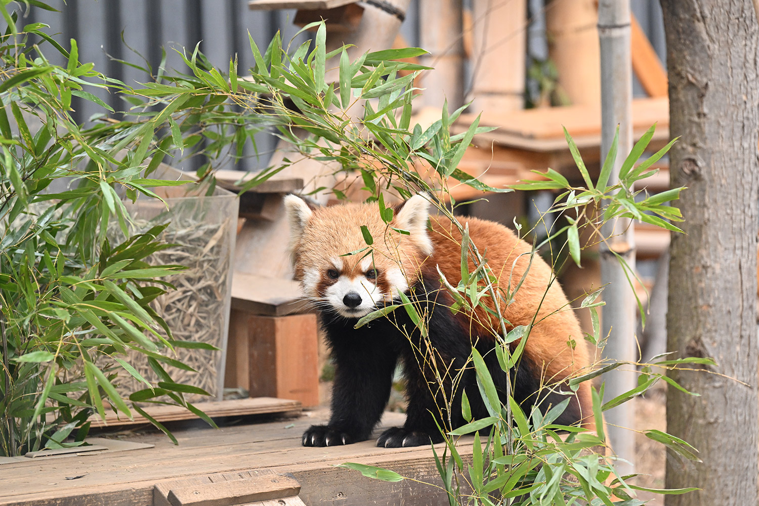 今日のパンダは14:00からです。今日もぽかぽか陽気で土曜日のレッサーパンダ舎は混雑していました。
