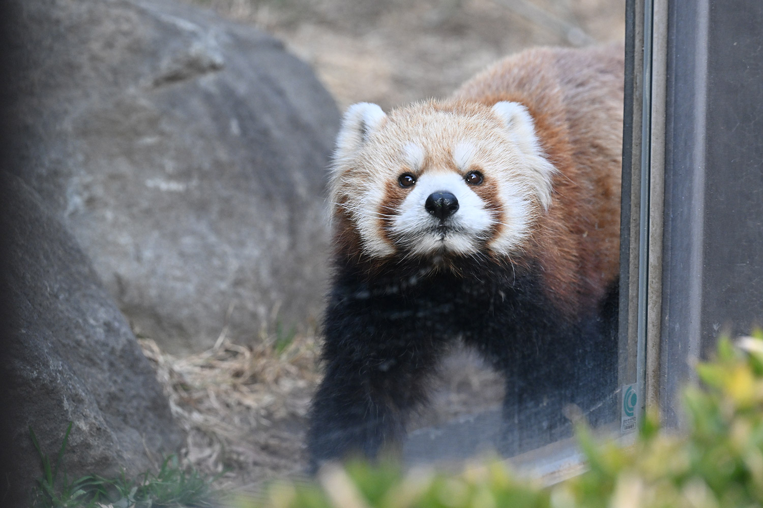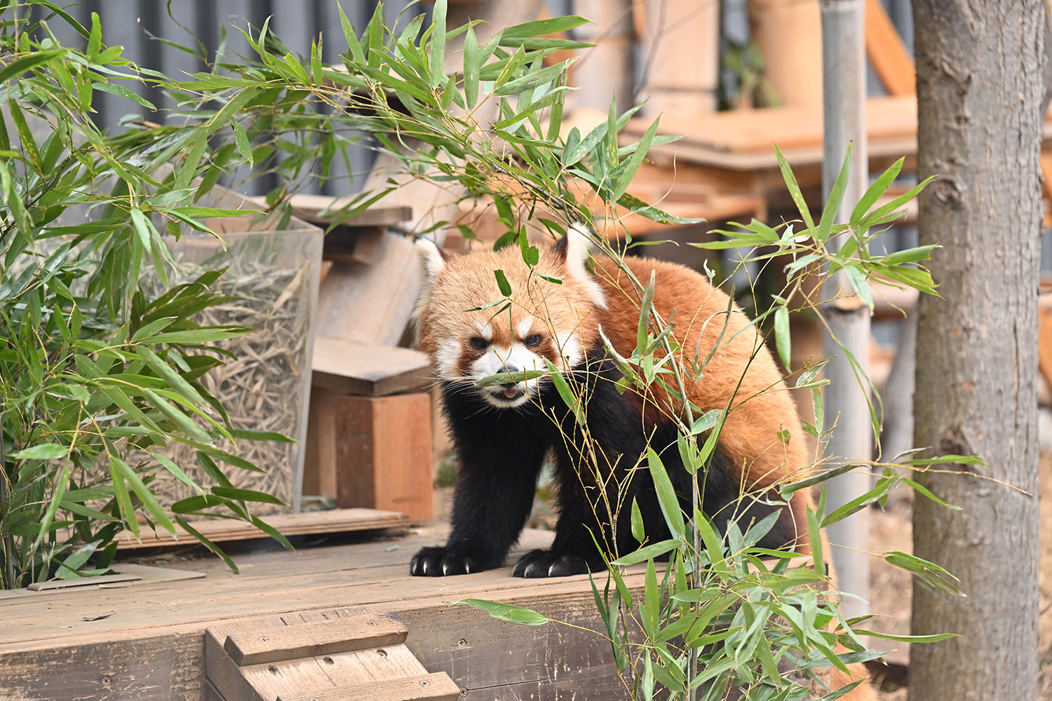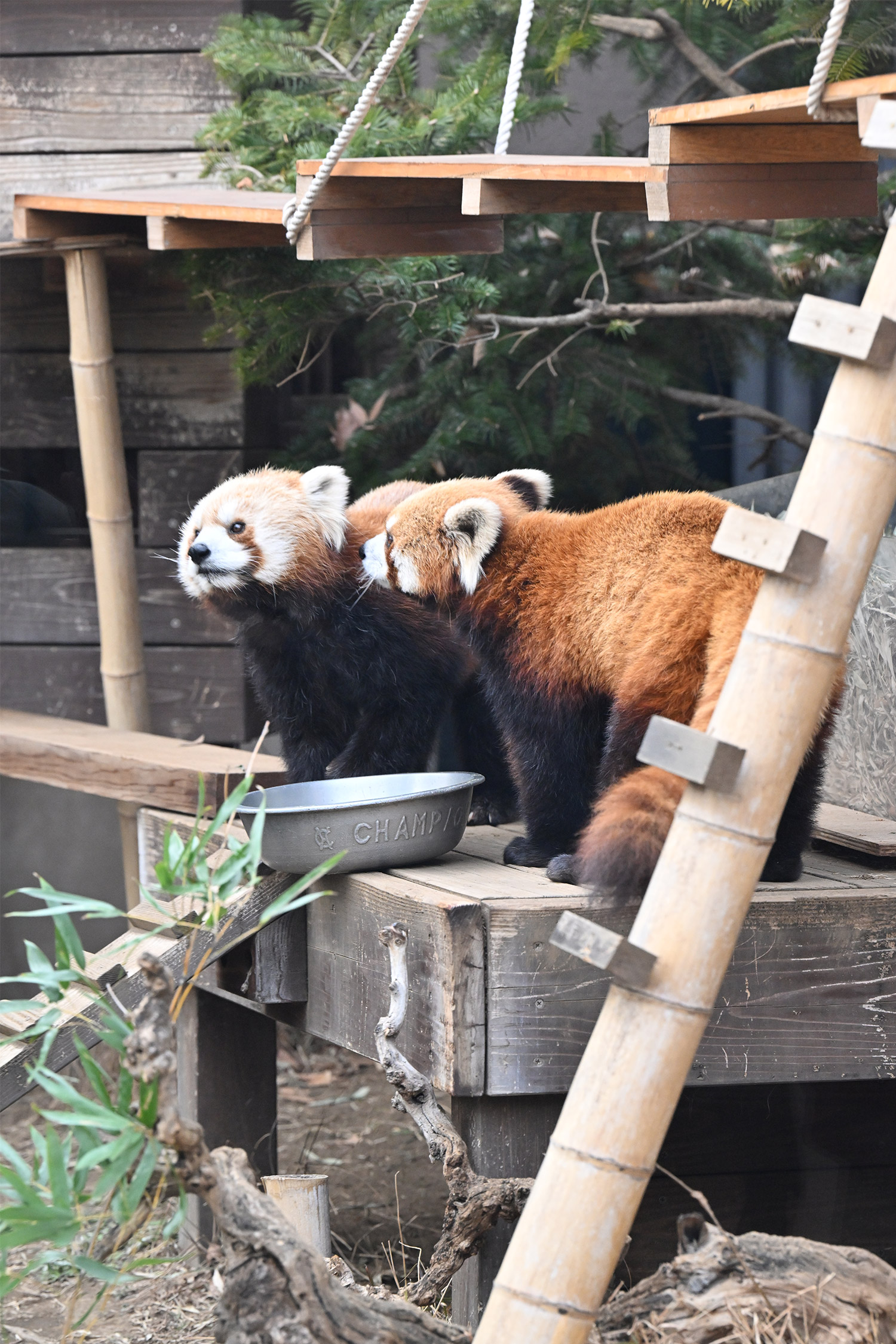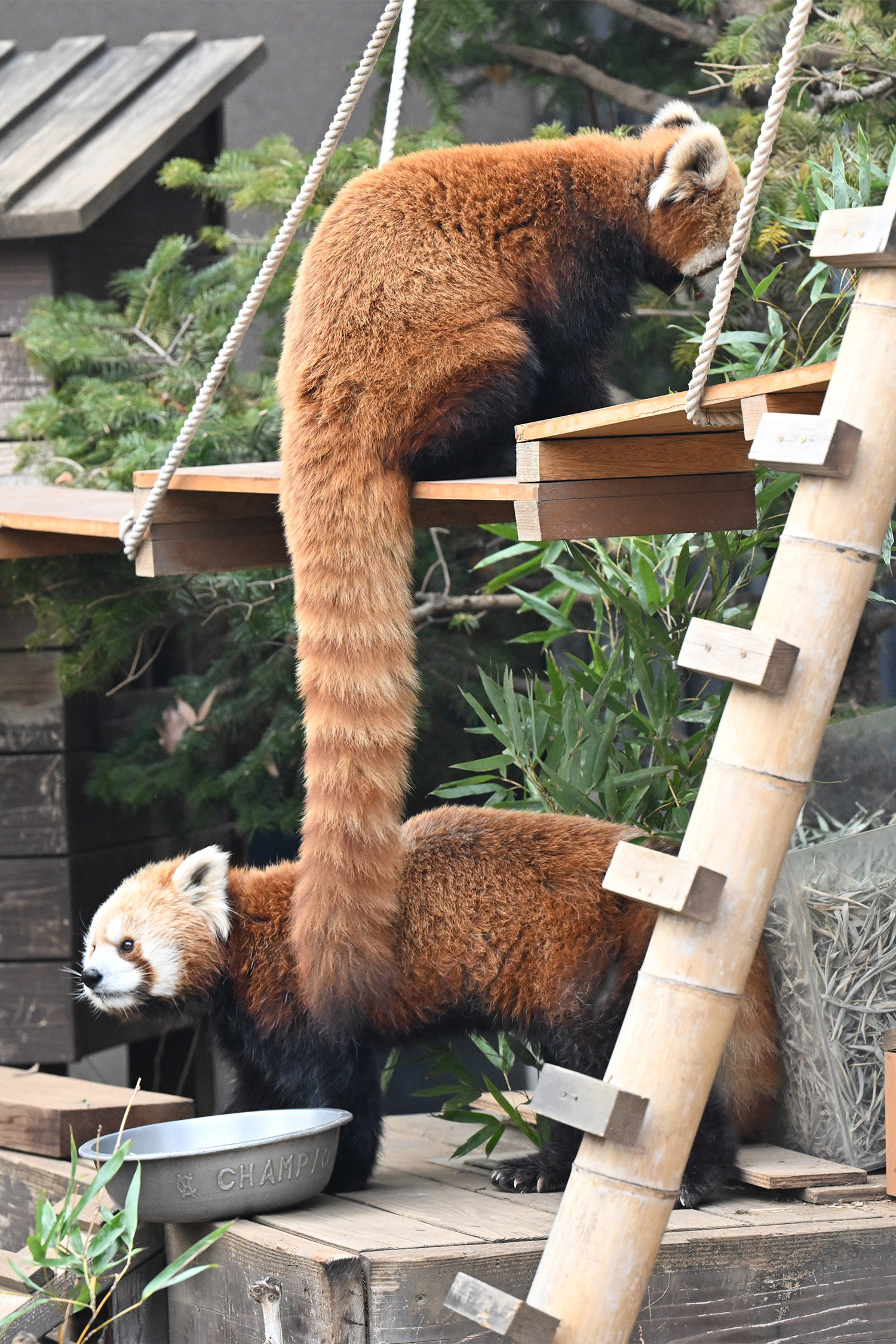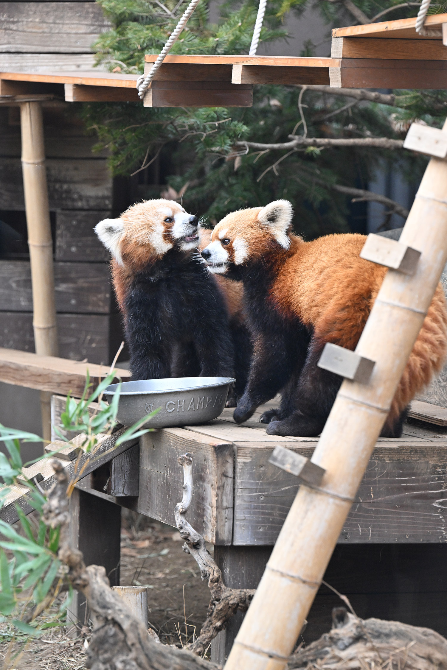 今日のパンダは14:00からです。今日もぽかぽか陽気で土曜日のレッサーパンダ舎は混雑していました。