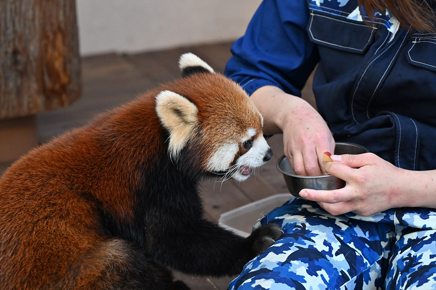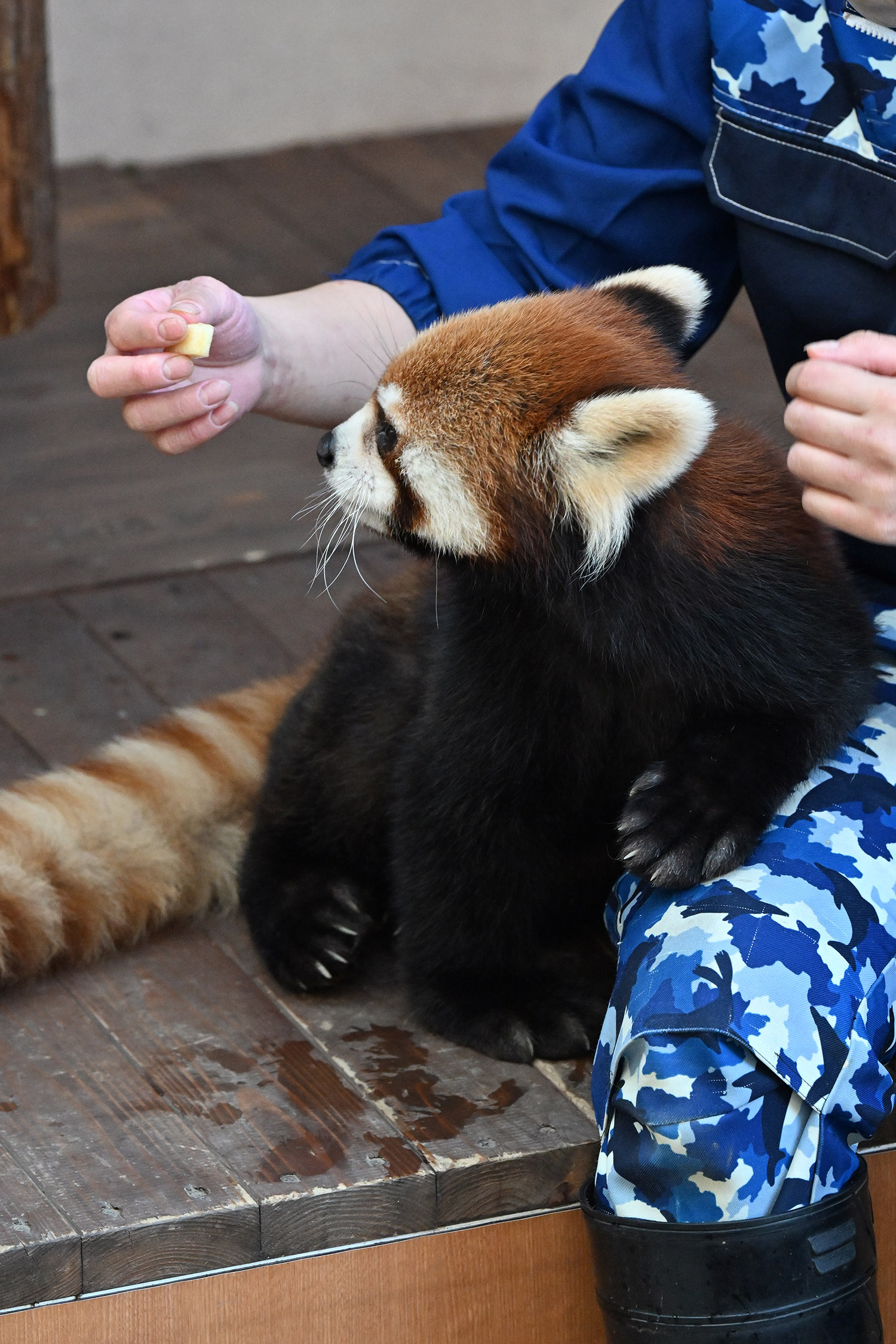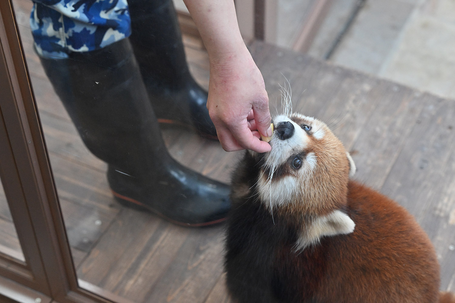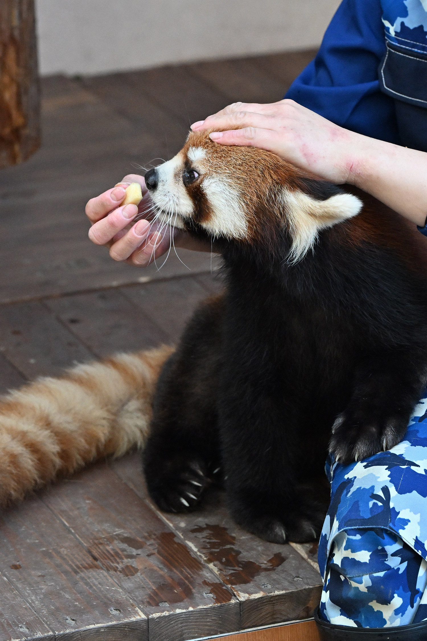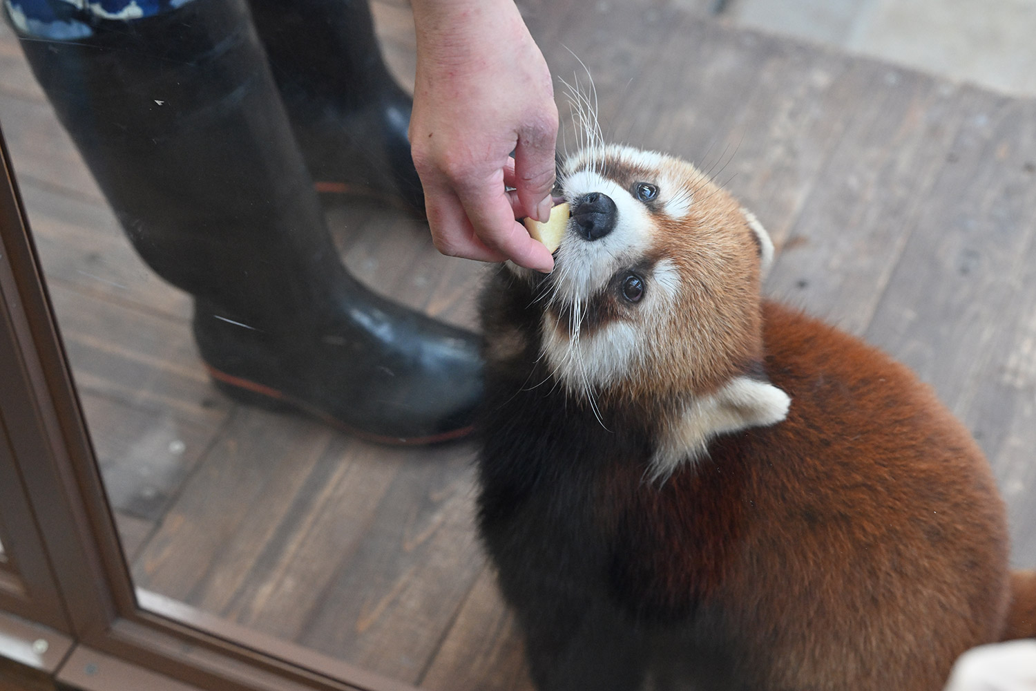 今日は暑い位でしたね💦 八景島まで行かれたのですね! レッサーパンダがいるなんて知りませんでした😅 こちらでも飼育員さんからリンゴを手渡ししているのですね🍎 しかも結構スキンシップしながらで可愛いですね! 私もナデナデしてみたいです😆