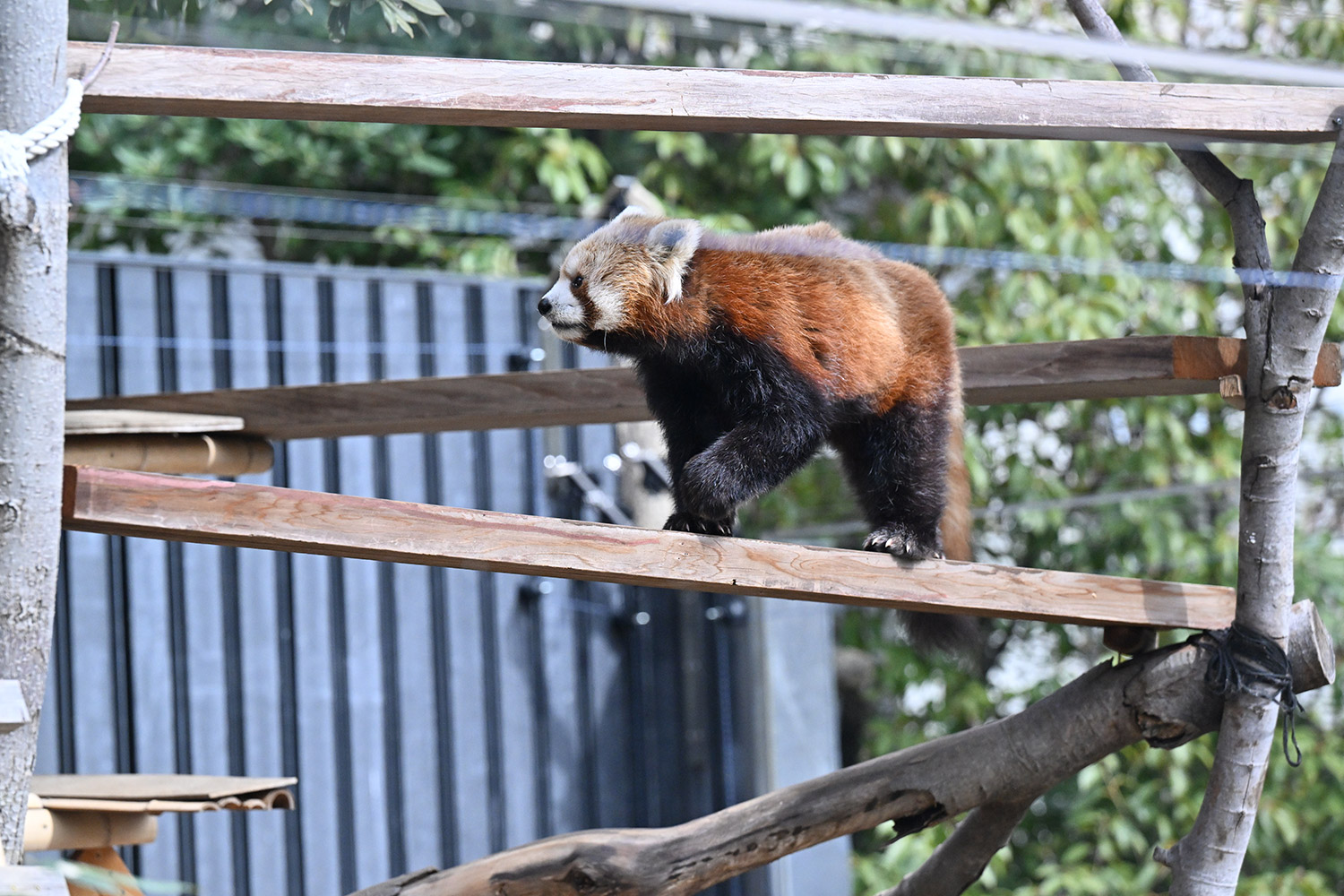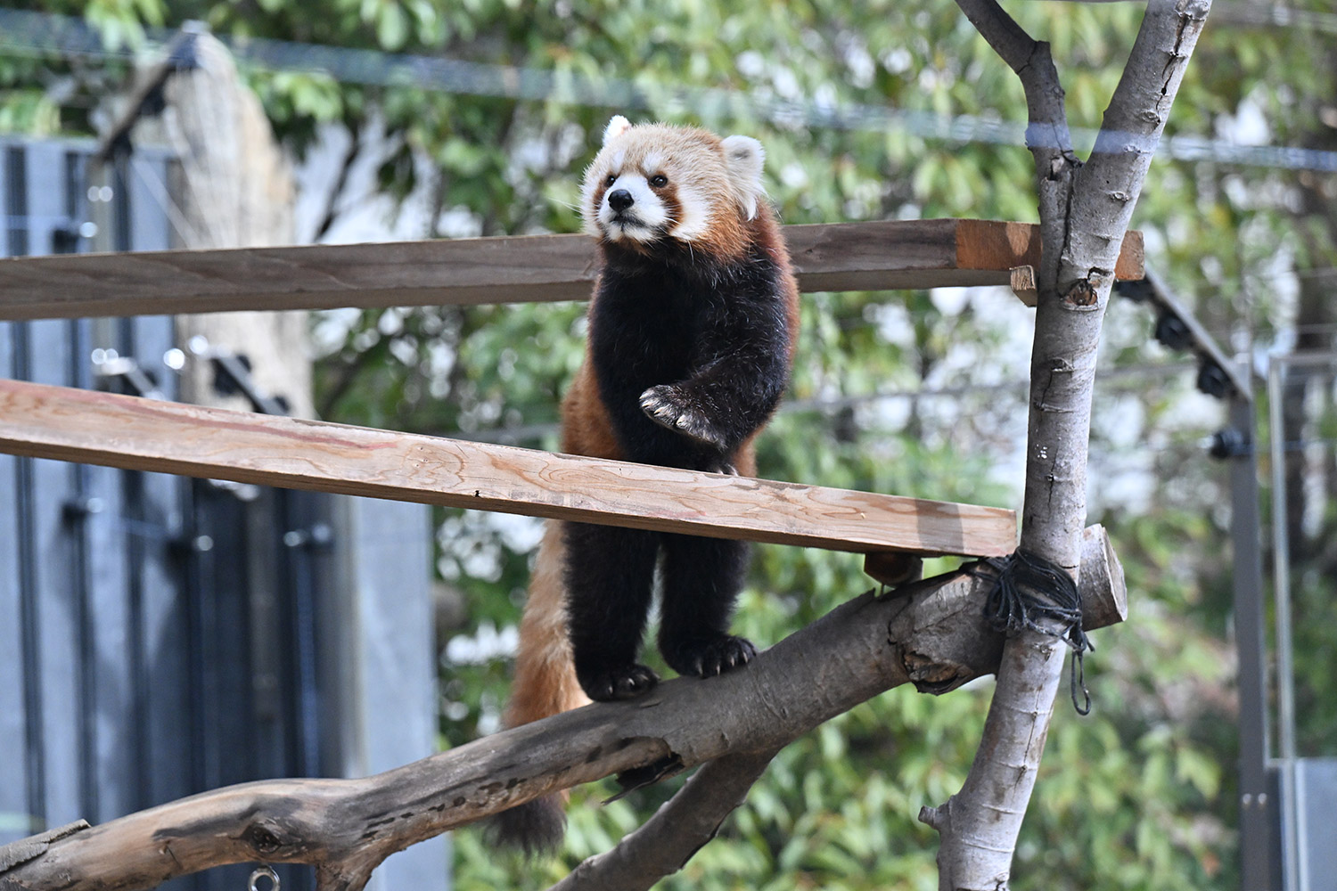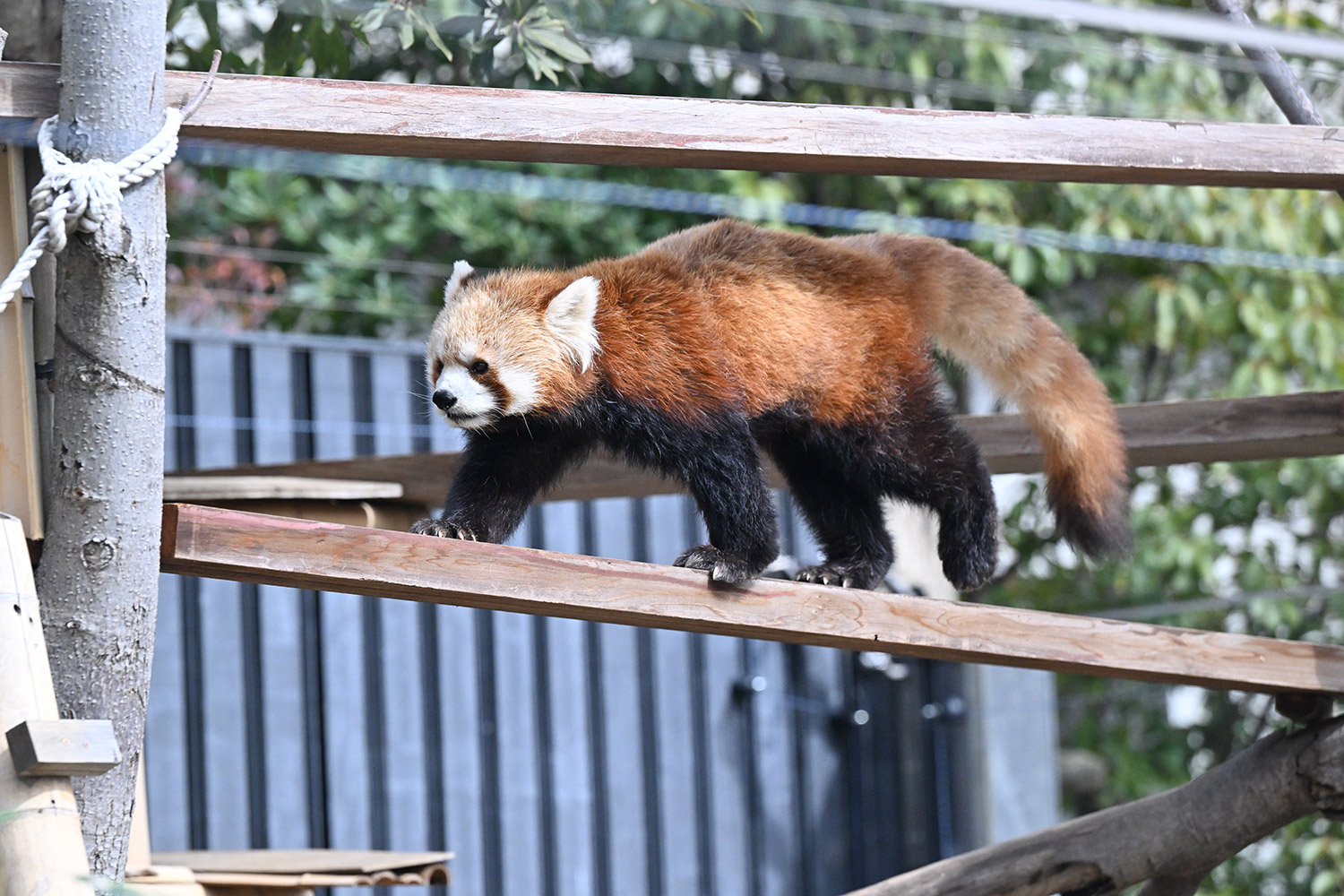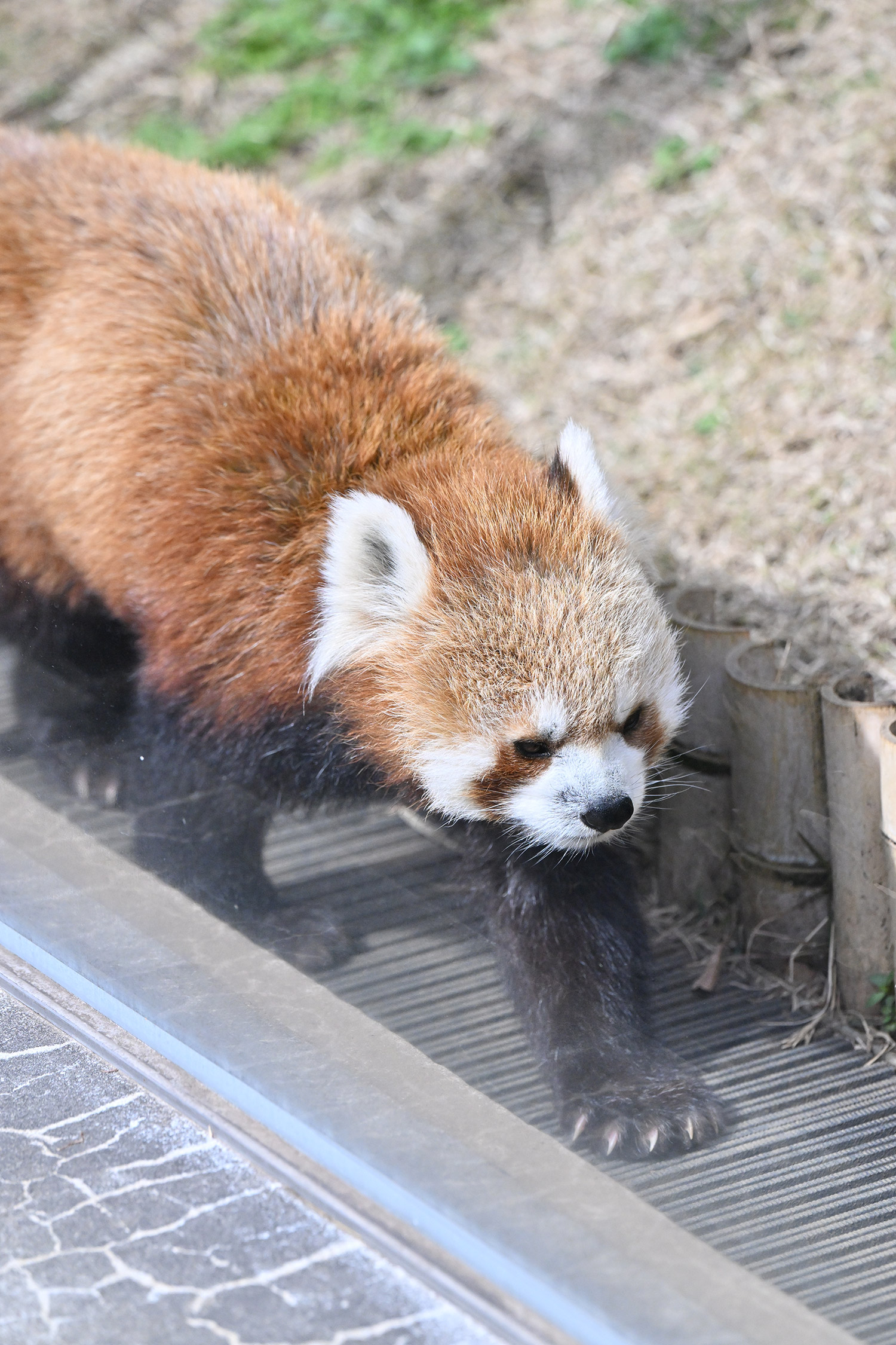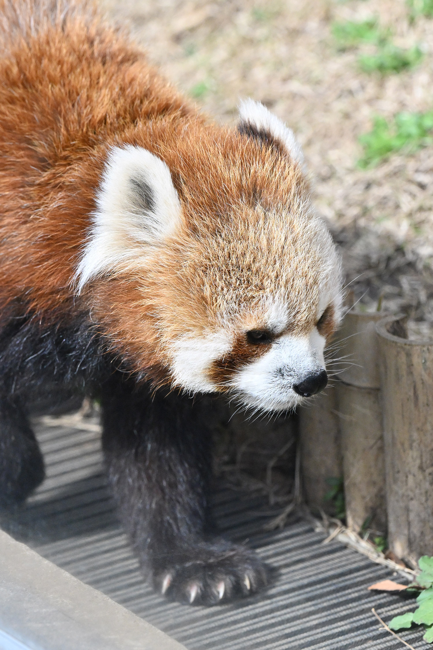 中国の四川の基地や大連で見たレッサーパンダは、広いところで、何十頭もが走り回っており、個体の名前はなかったような? 二頭だけで、ゆっくり観られるのはありがたい。